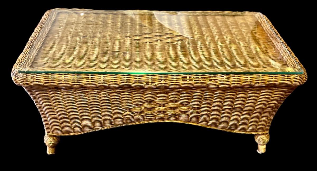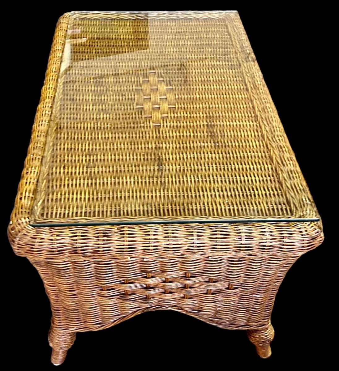 Henry Link authentic Wicker Coffee Table with Glass Top