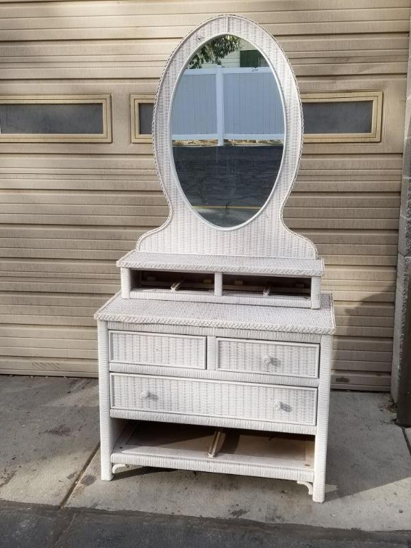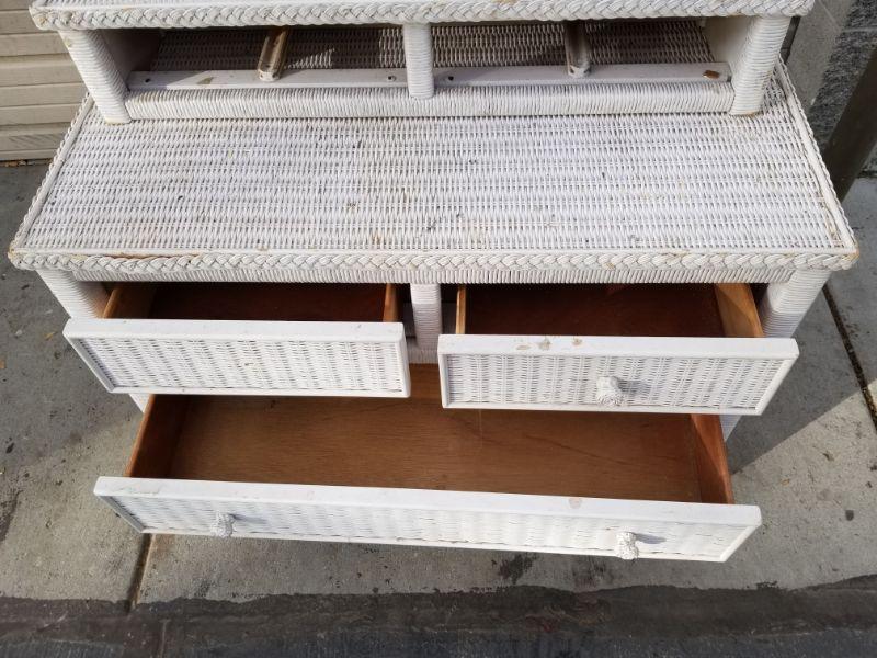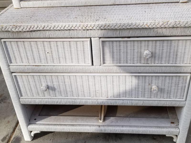Wicker Dresser with Vanity Top, White, Missing 3 Drawers