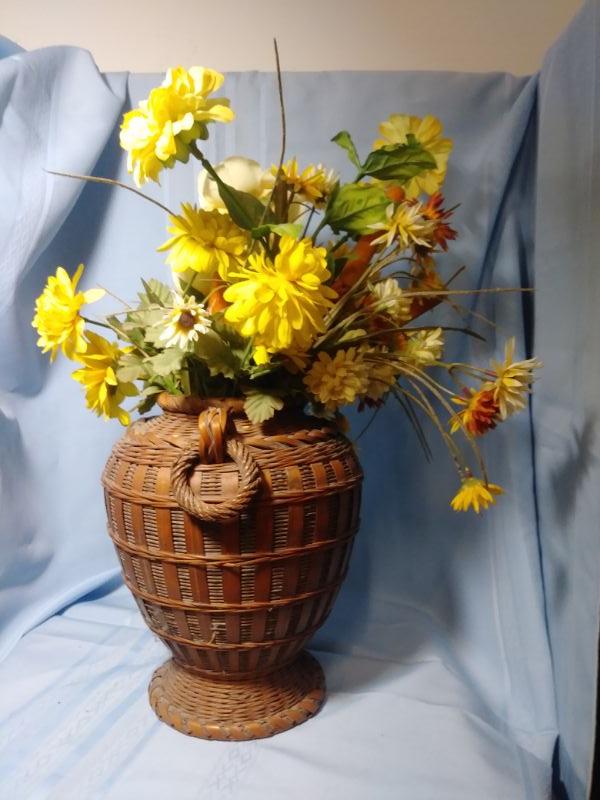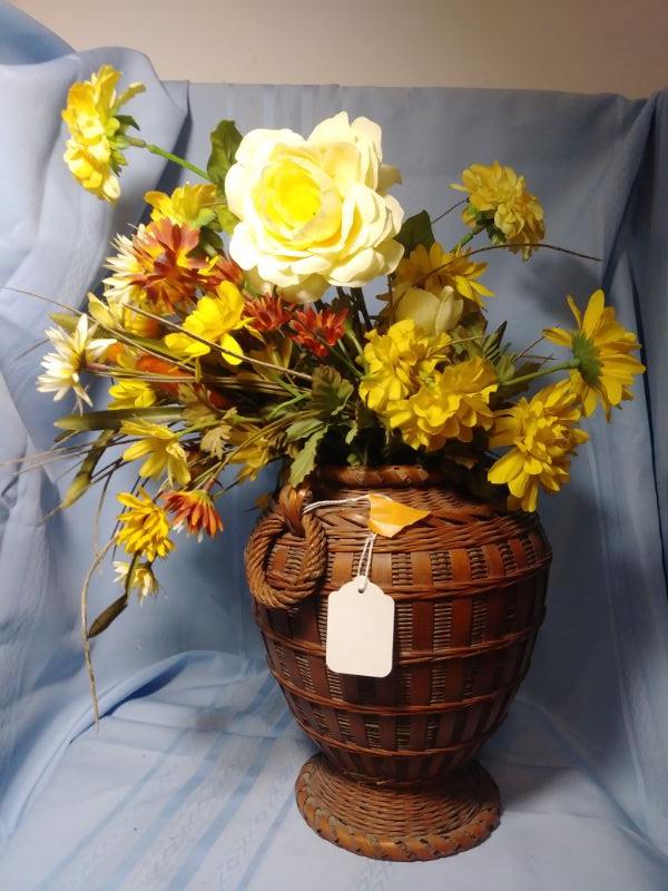 Wicker Flower Vase with Fake Flowers (Basket is 9"W x 10"H)