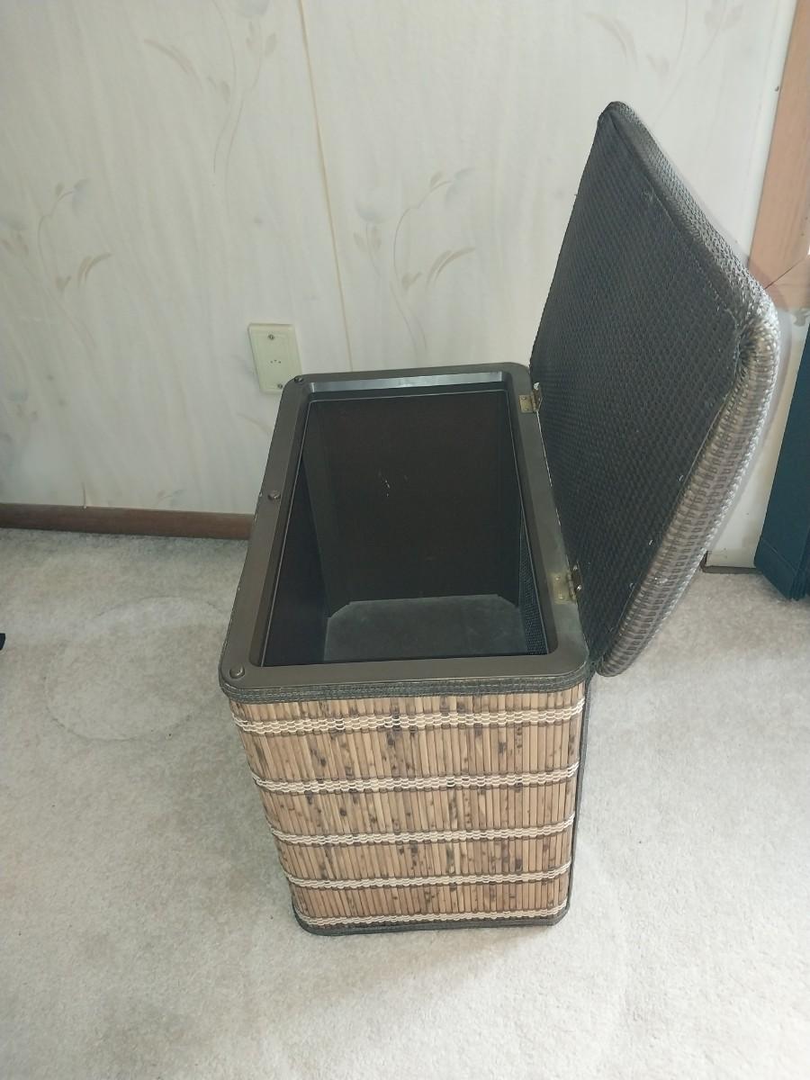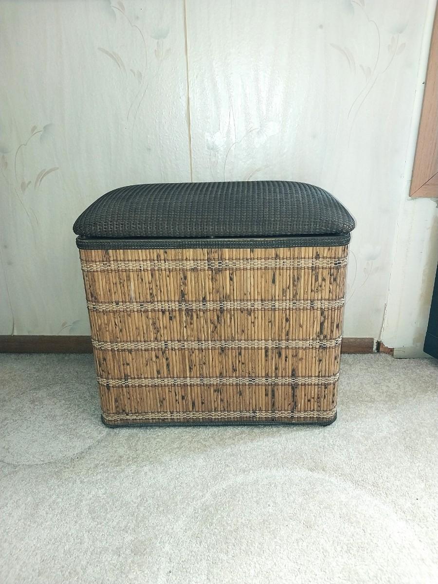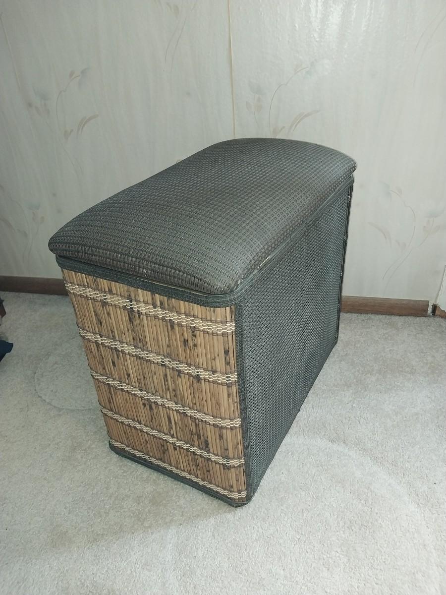 WICKER HAMPER WITH UPHOLSTERED TOP