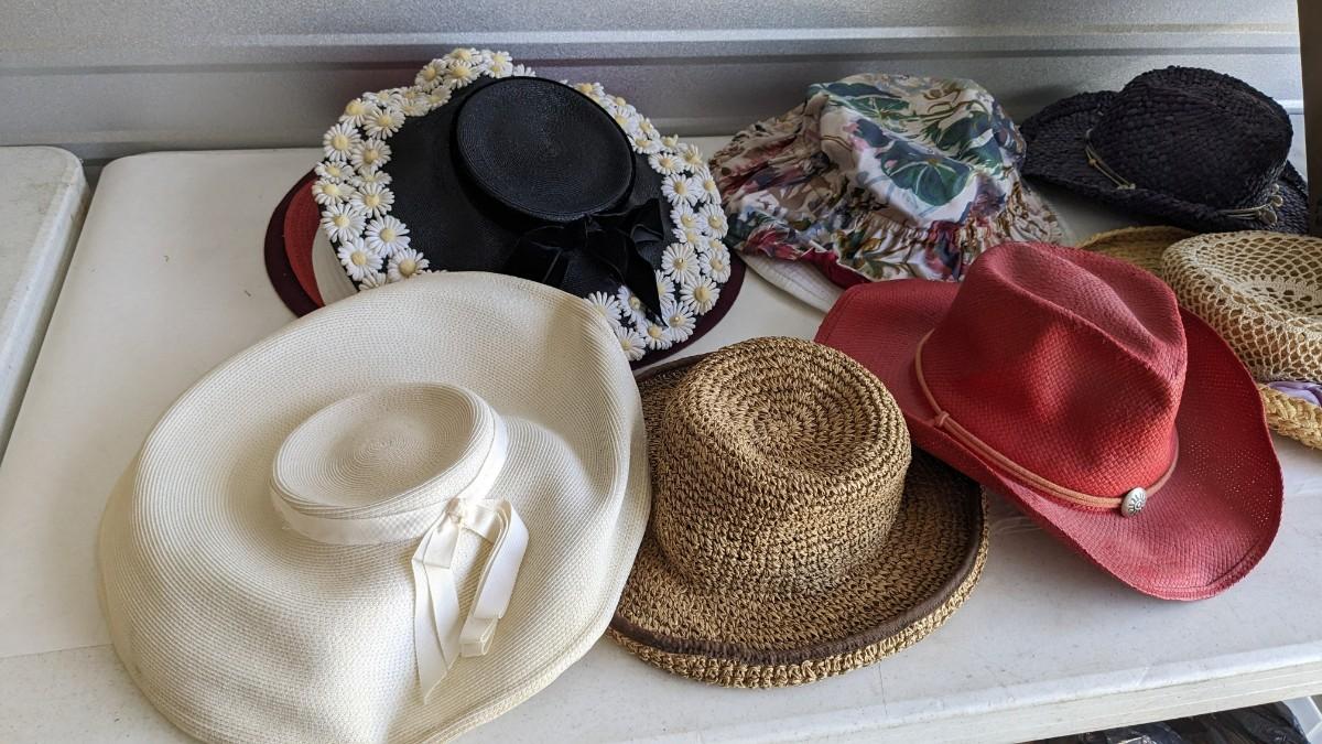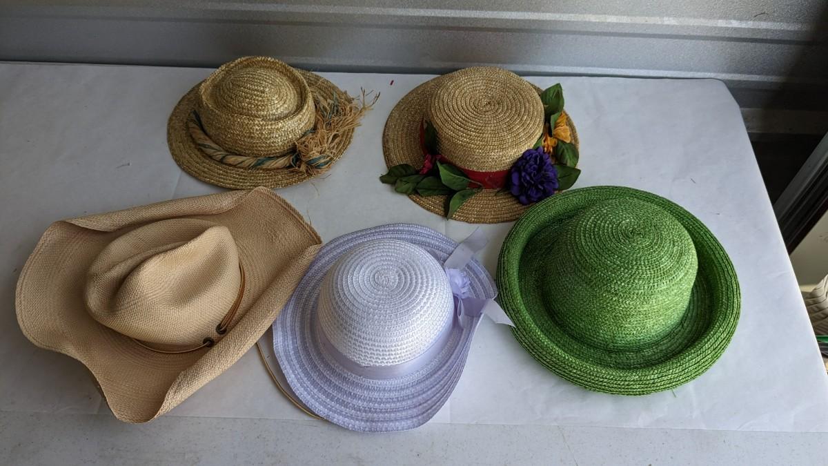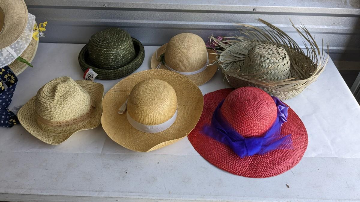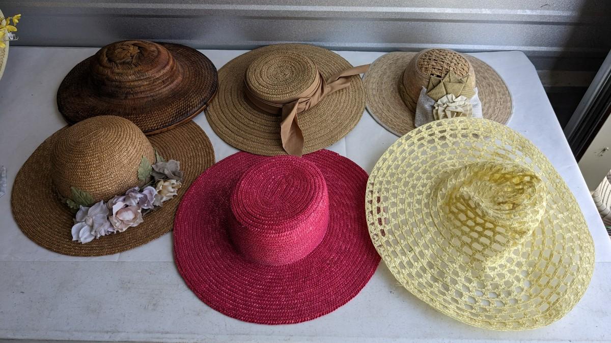 a great assortment of vintage and contemporary wicker and floppy hats. Some are felt. All are in wearable condition. No shipping 2616