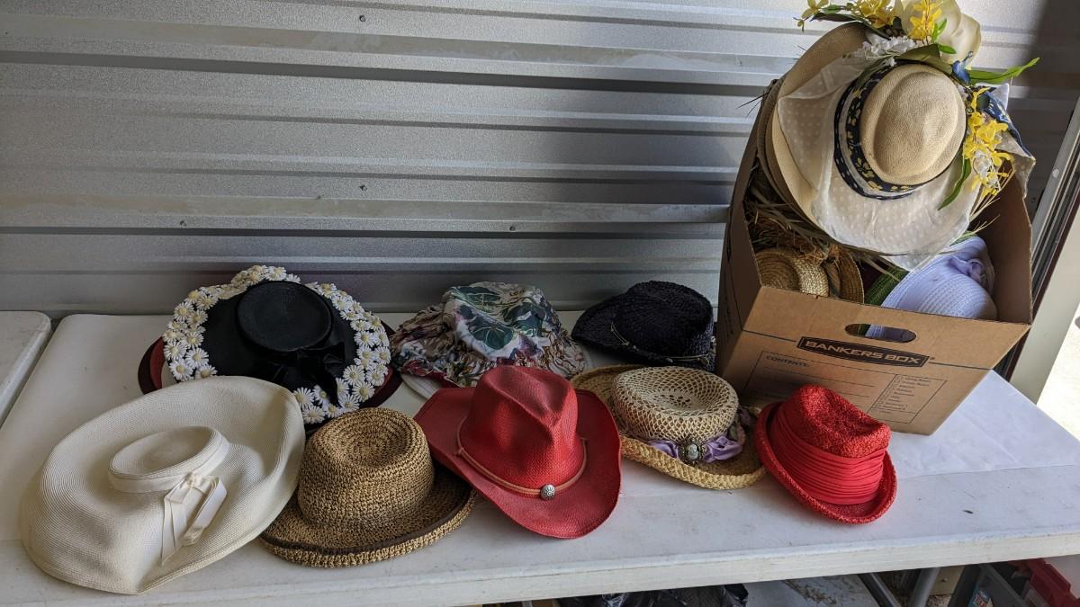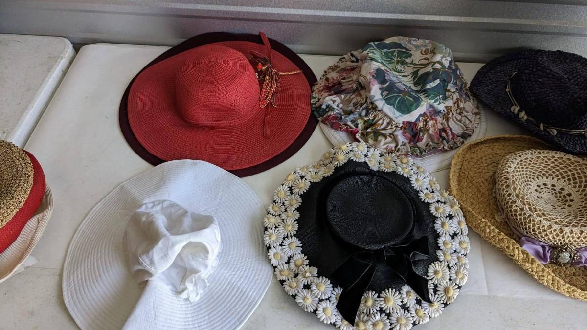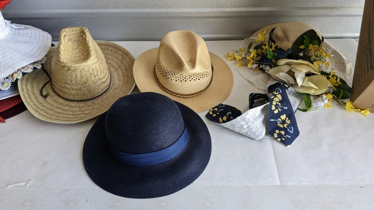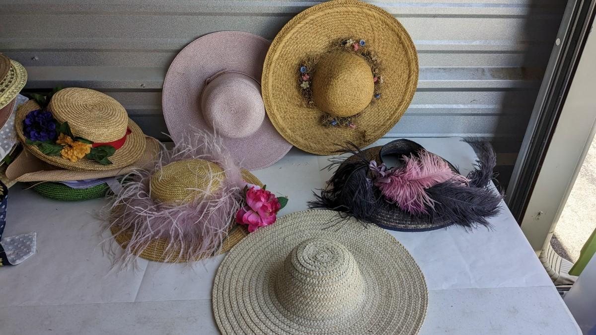 a great assortment of vintage and contemporary wicker and floppy hats. Some are felt. All are in wearable condition. No shipping 2616