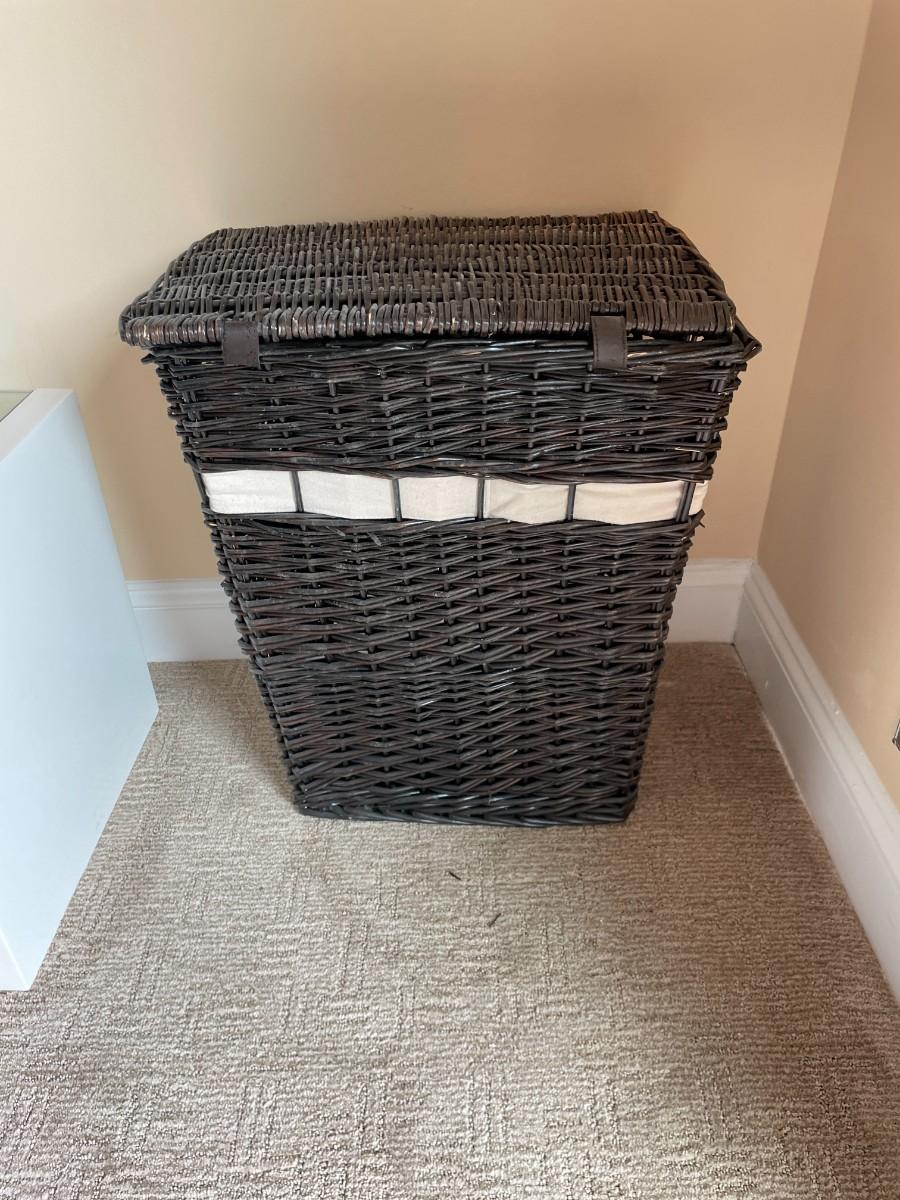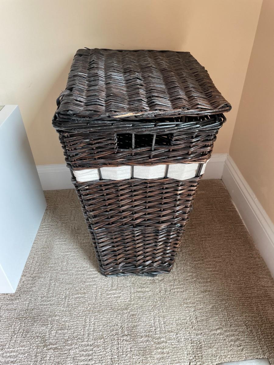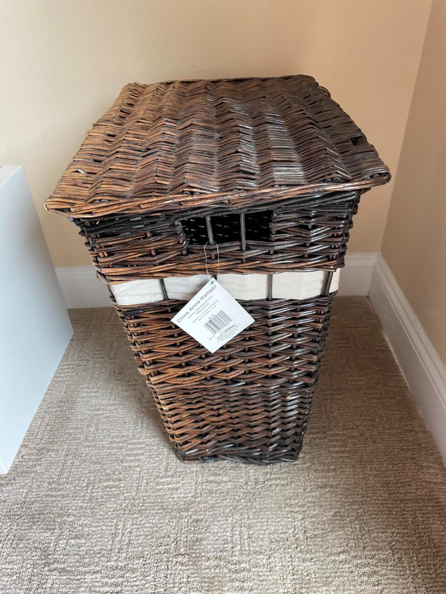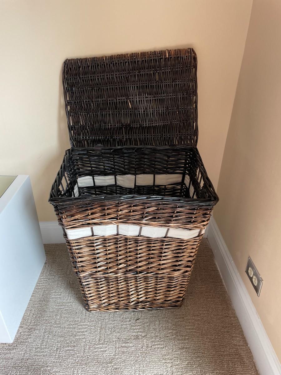 Lined laundry basket. 19 1/2L x 15W x 24H