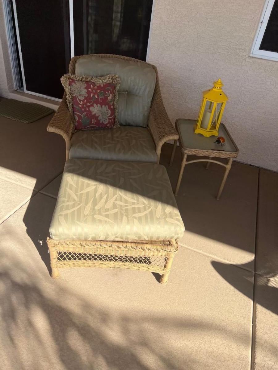 Beautiful Brown Jordan All-Weather Wicker Patio Chair with matching side table