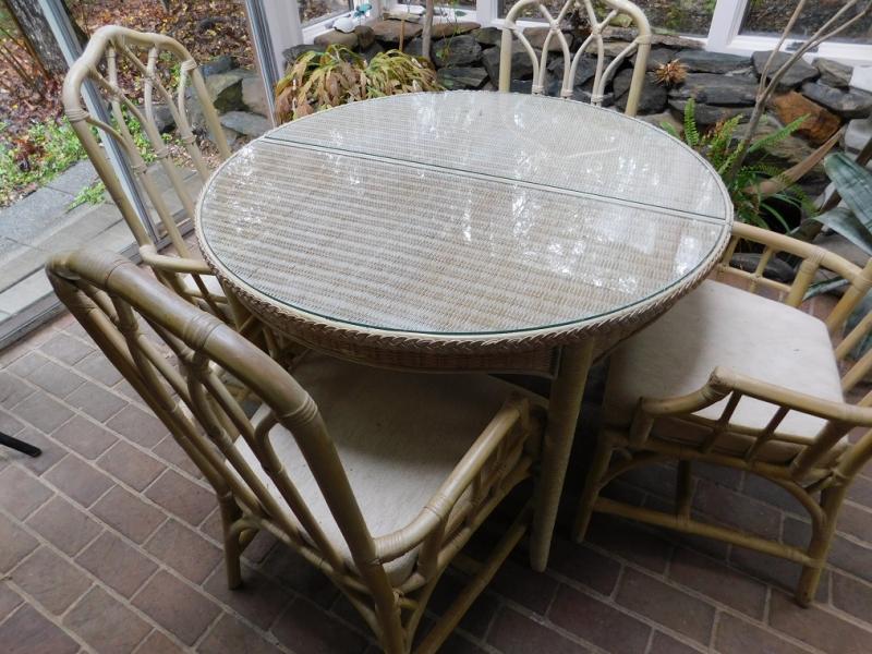 Wicker Patio Table and Four Chairs with Leaf Insert by Henry Link