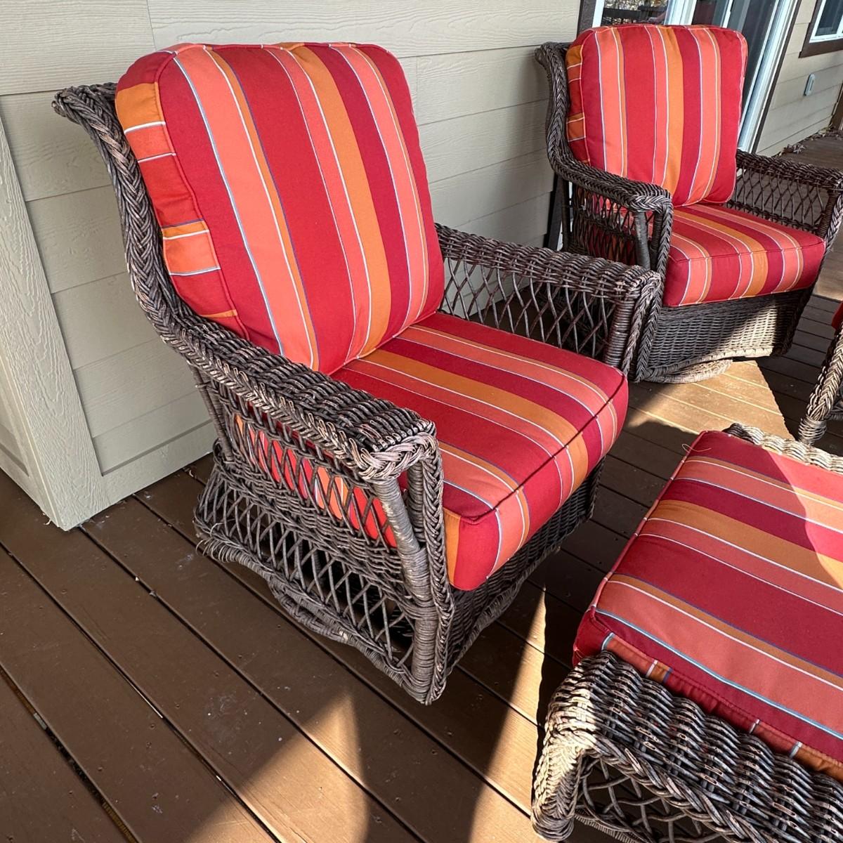 Wicker Porch Swivel Glider Chair with Ottoman and Orange Cushions #1
