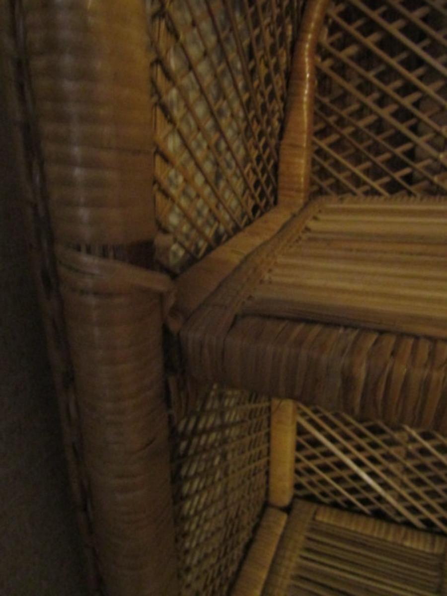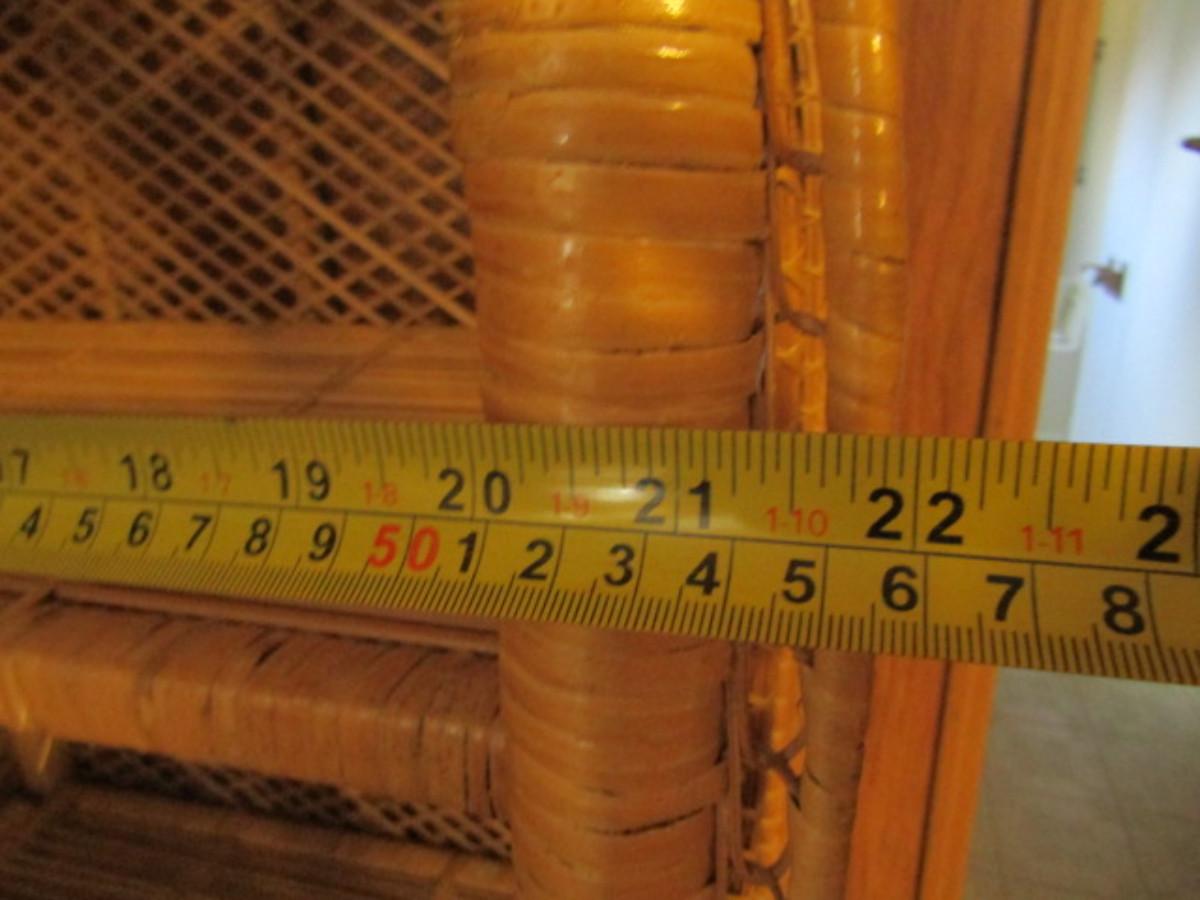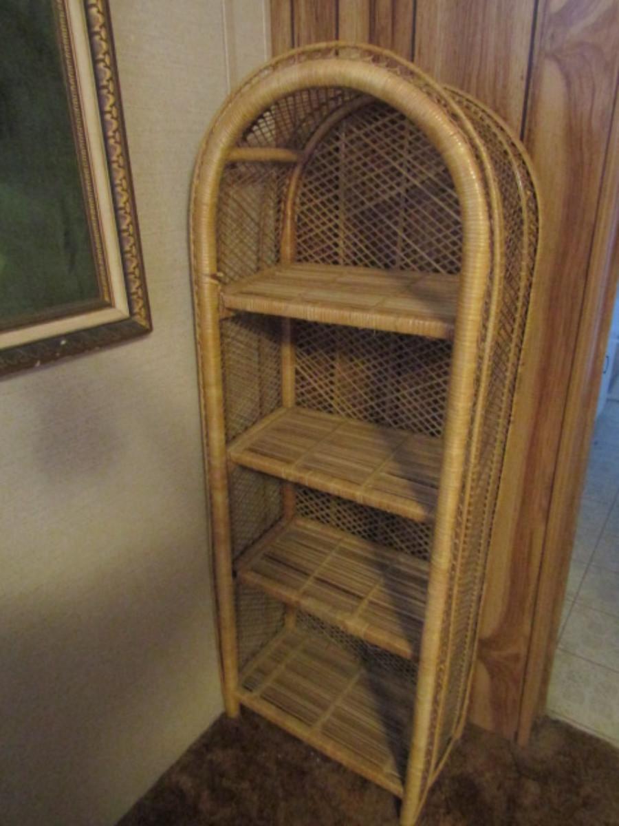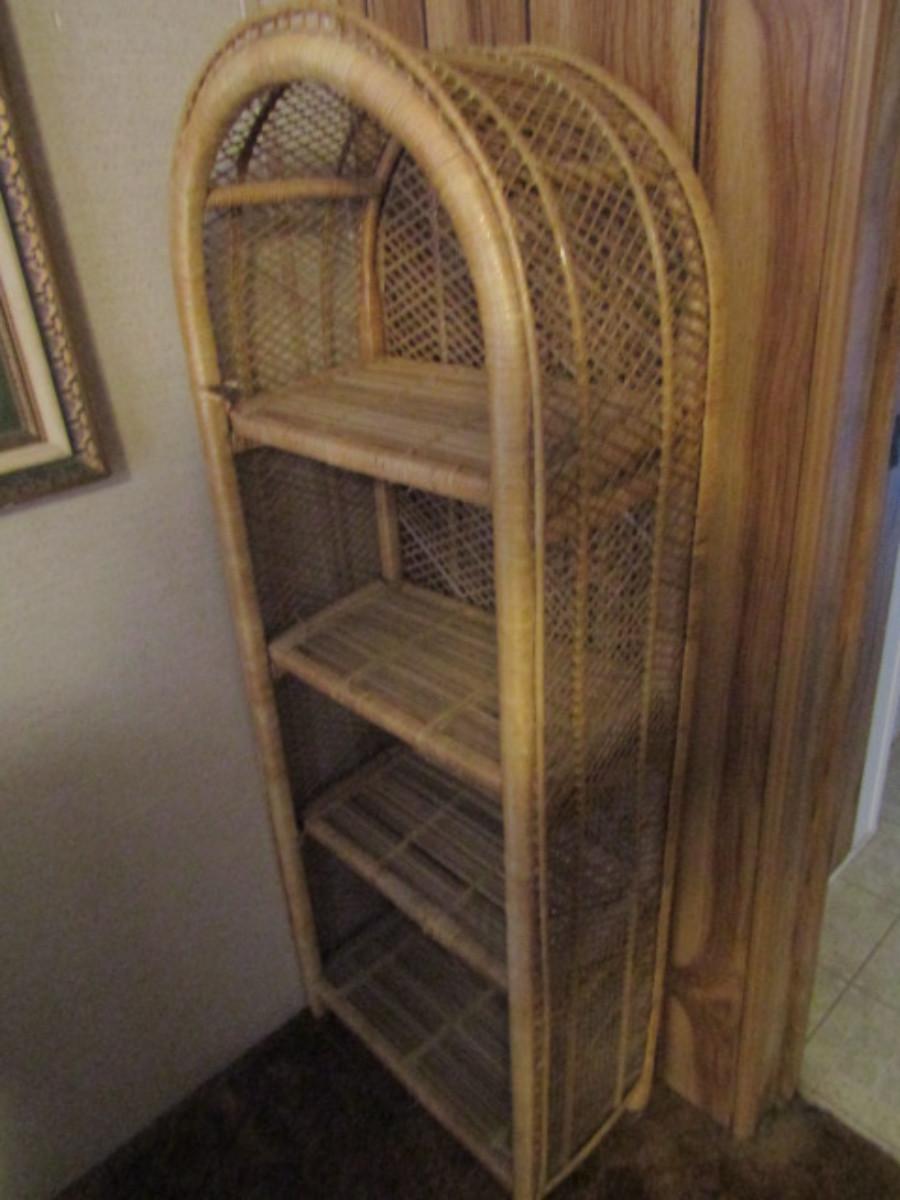 Wicker Rattan Arched Shelf- Approx 56" Tall. Please see all pictures- there is an area of unraveling on one side.