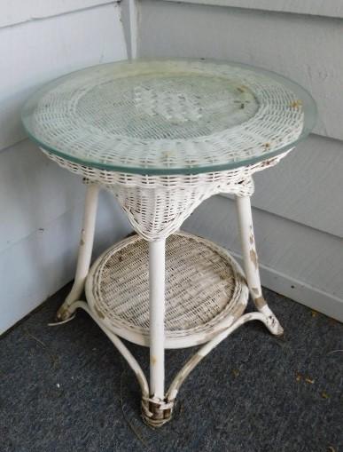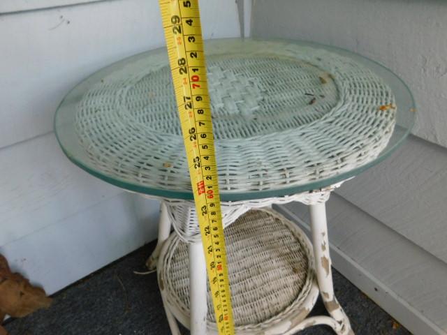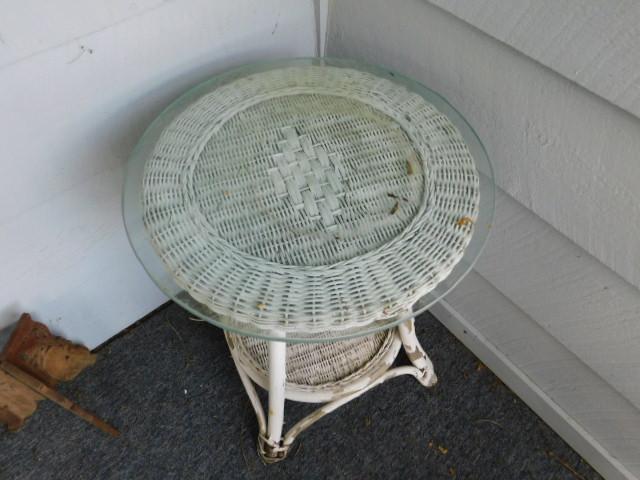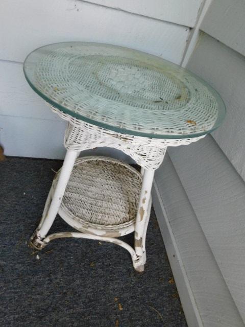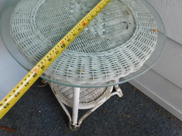Wicker Rattan Patio Side Table with Glass Top 20"x24" paint is chipping will need cleaning