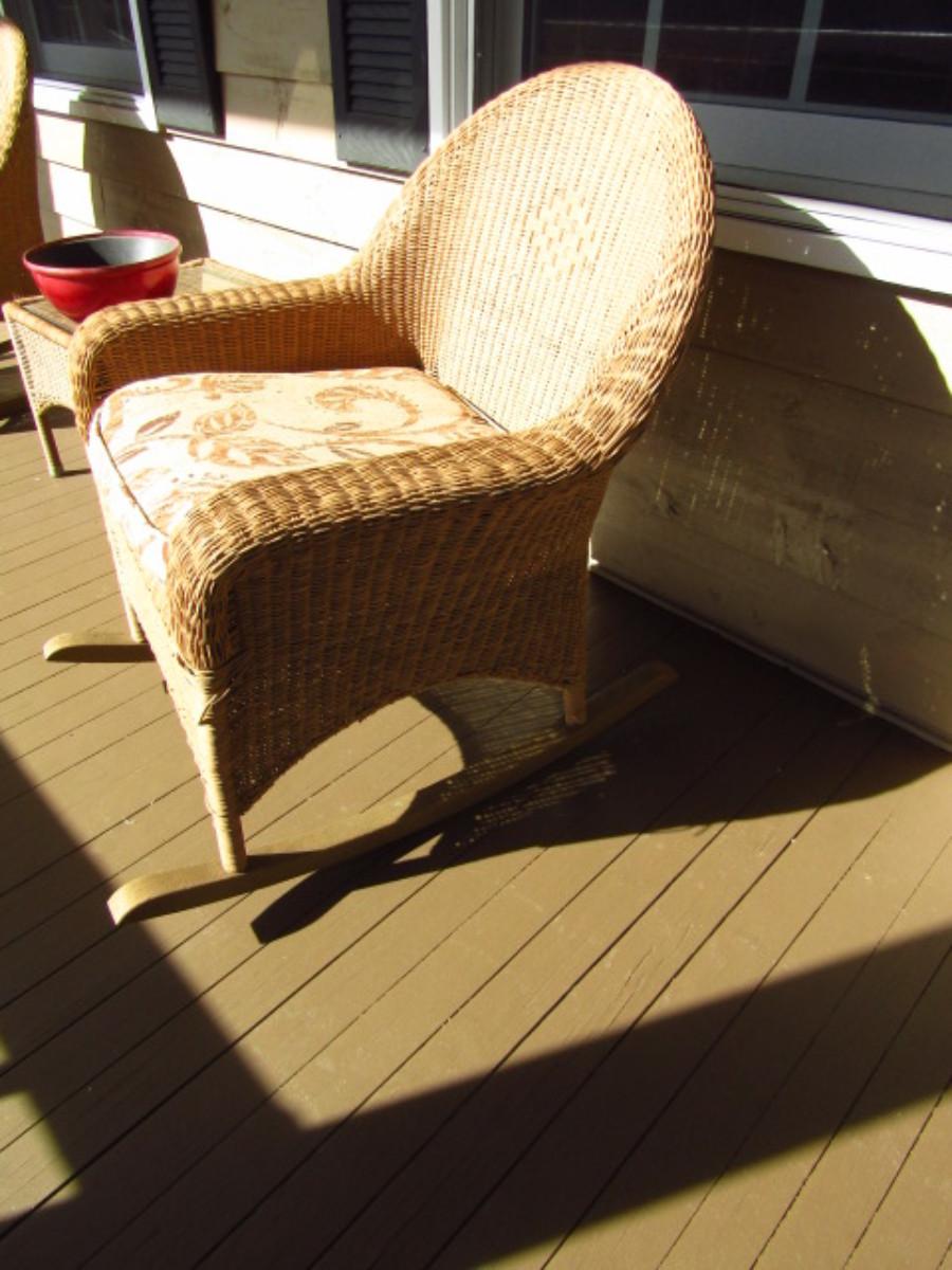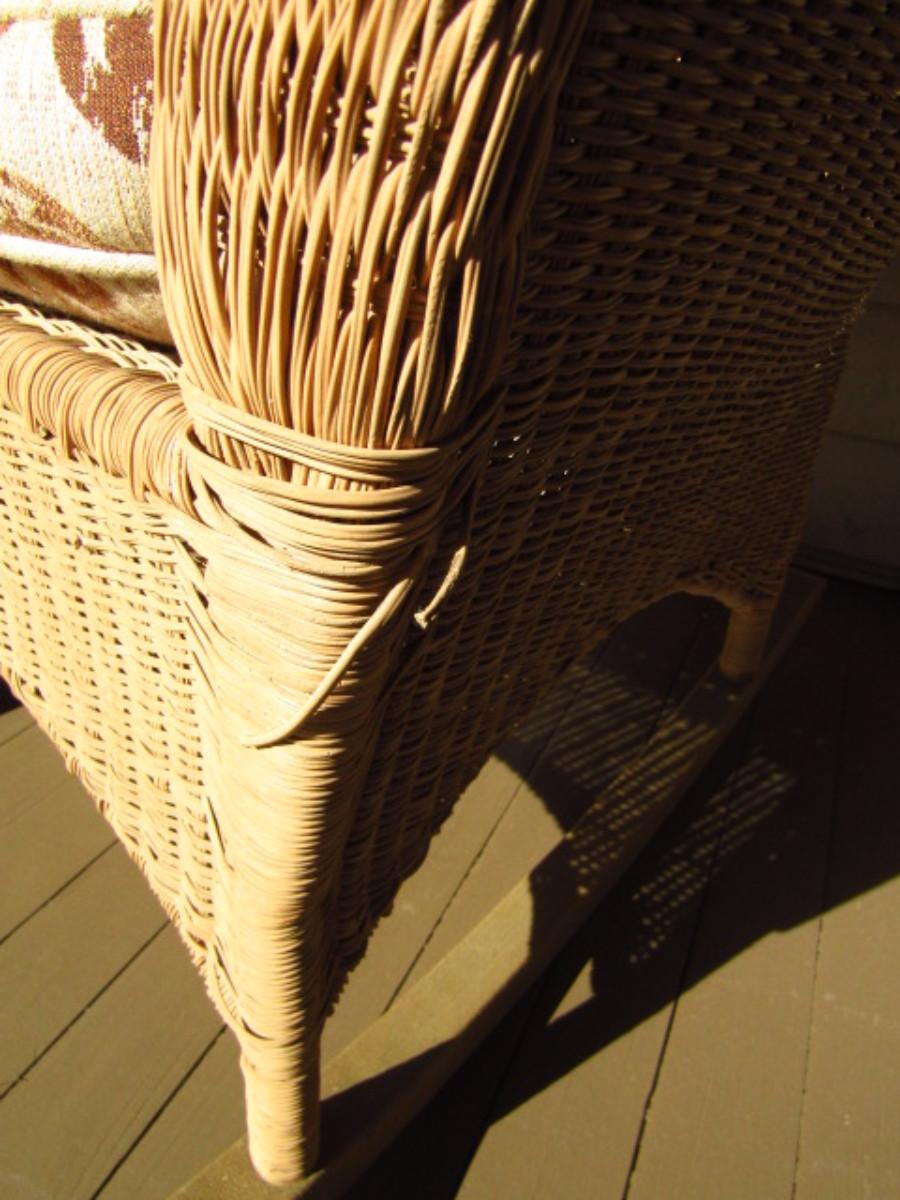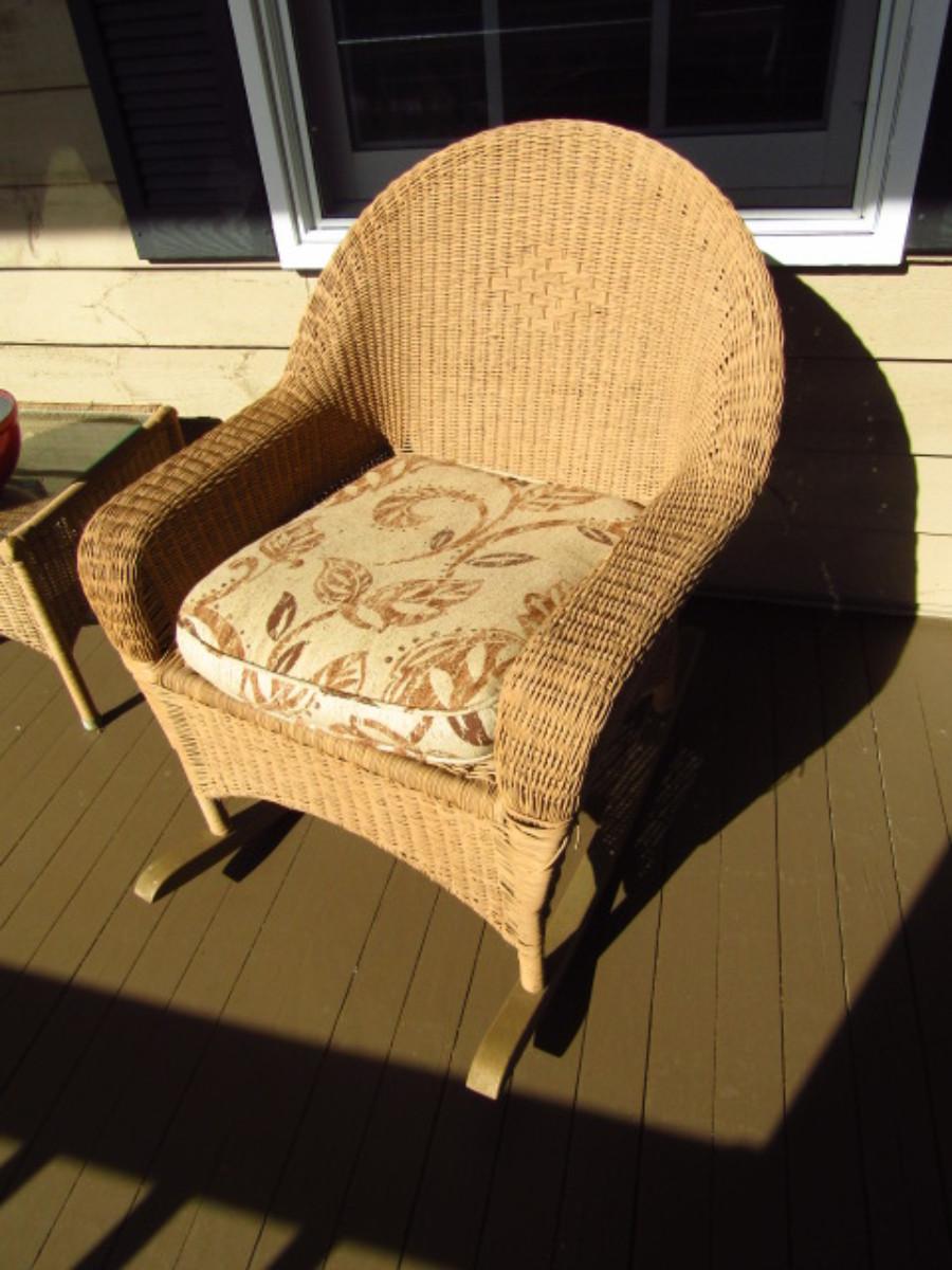 Wicker Rocking Chair with Cushion for Outdoor/Patio- Choice #1 of 4. Please see all pictures- some damage/unwinding.