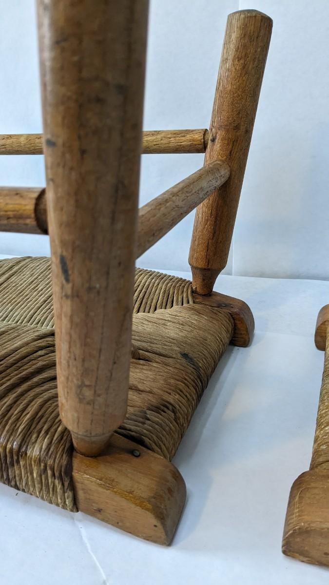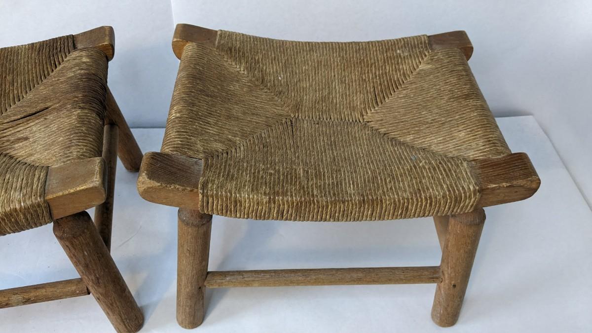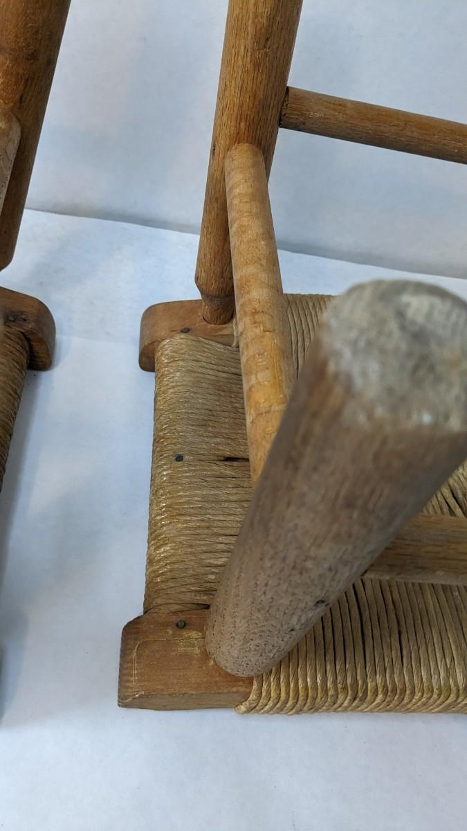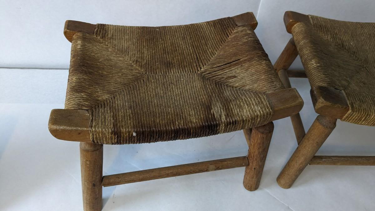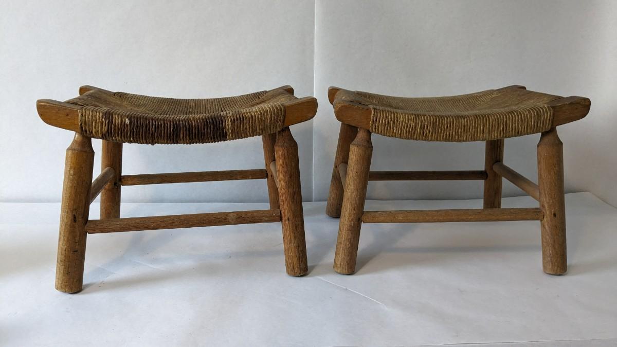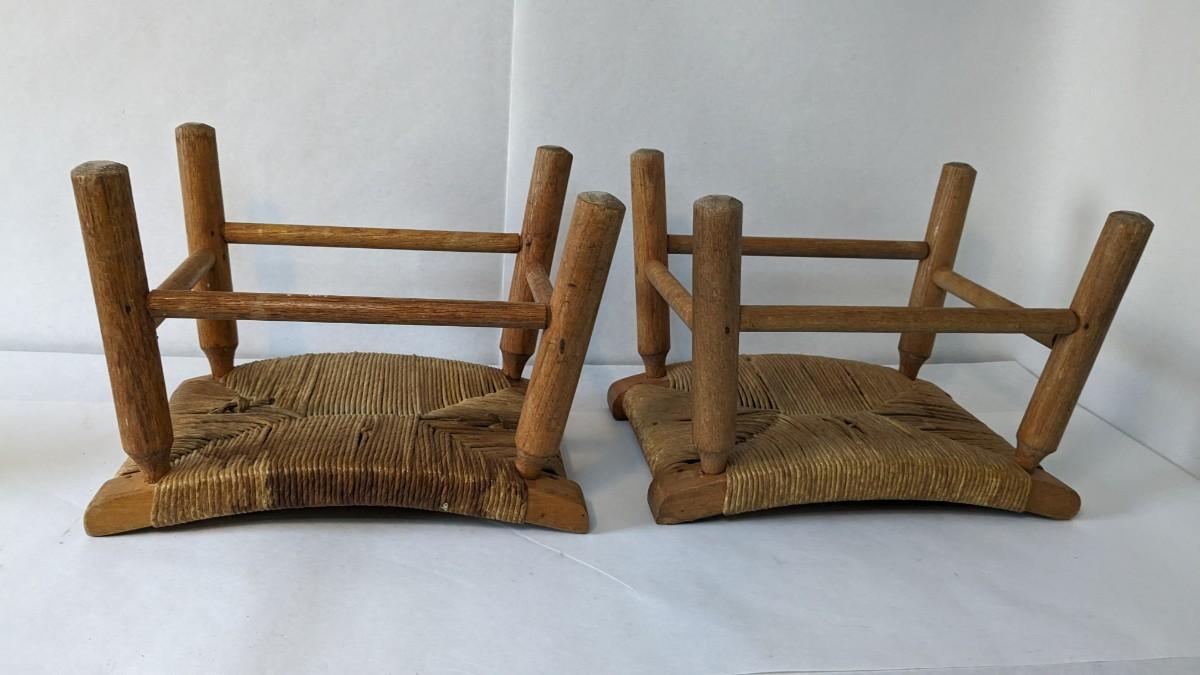 2 incredibly well kept wicker bottom/ wood frame milking stools. 16.25"x11"x12". Some discoloration and wear present, in overall excellent condition for age.