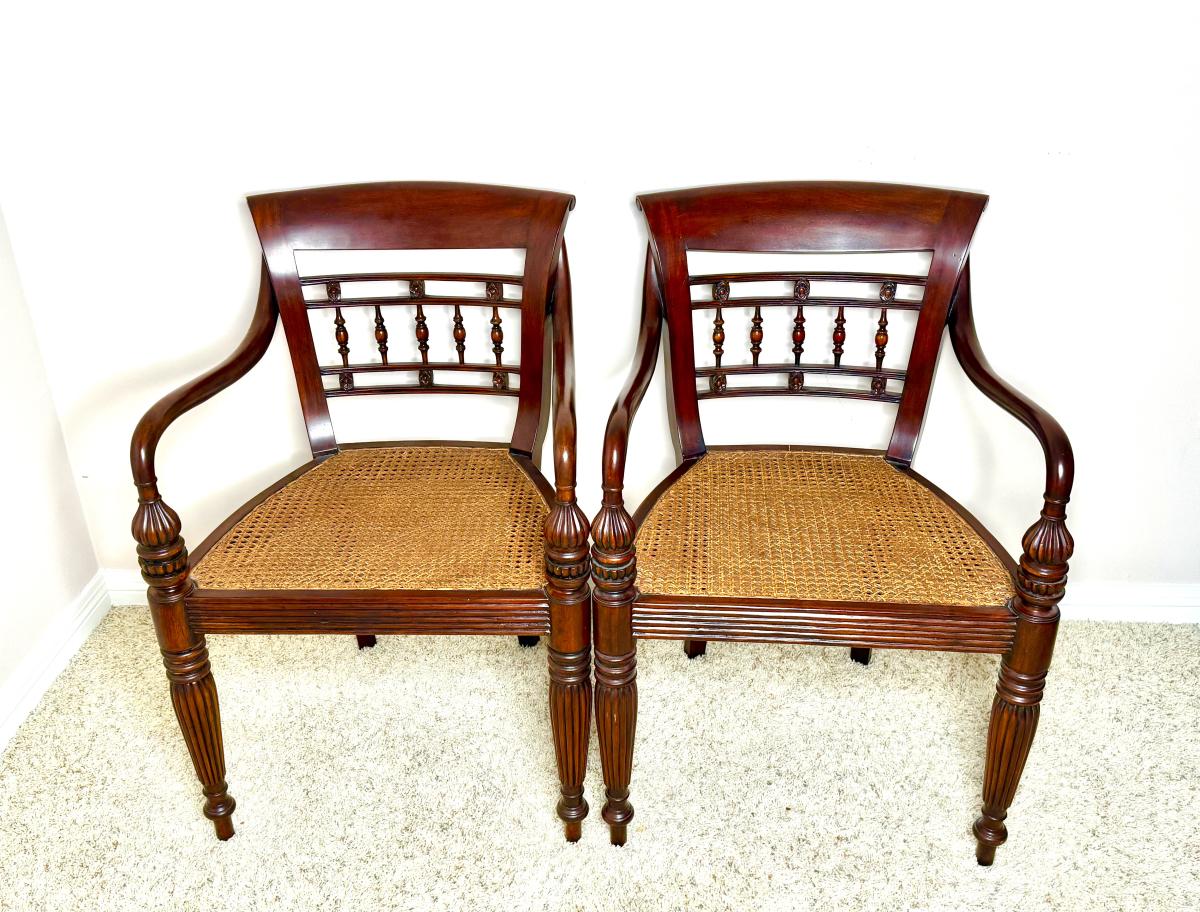Set of 2 Antique Cane Seat Solid Wood Armchairs