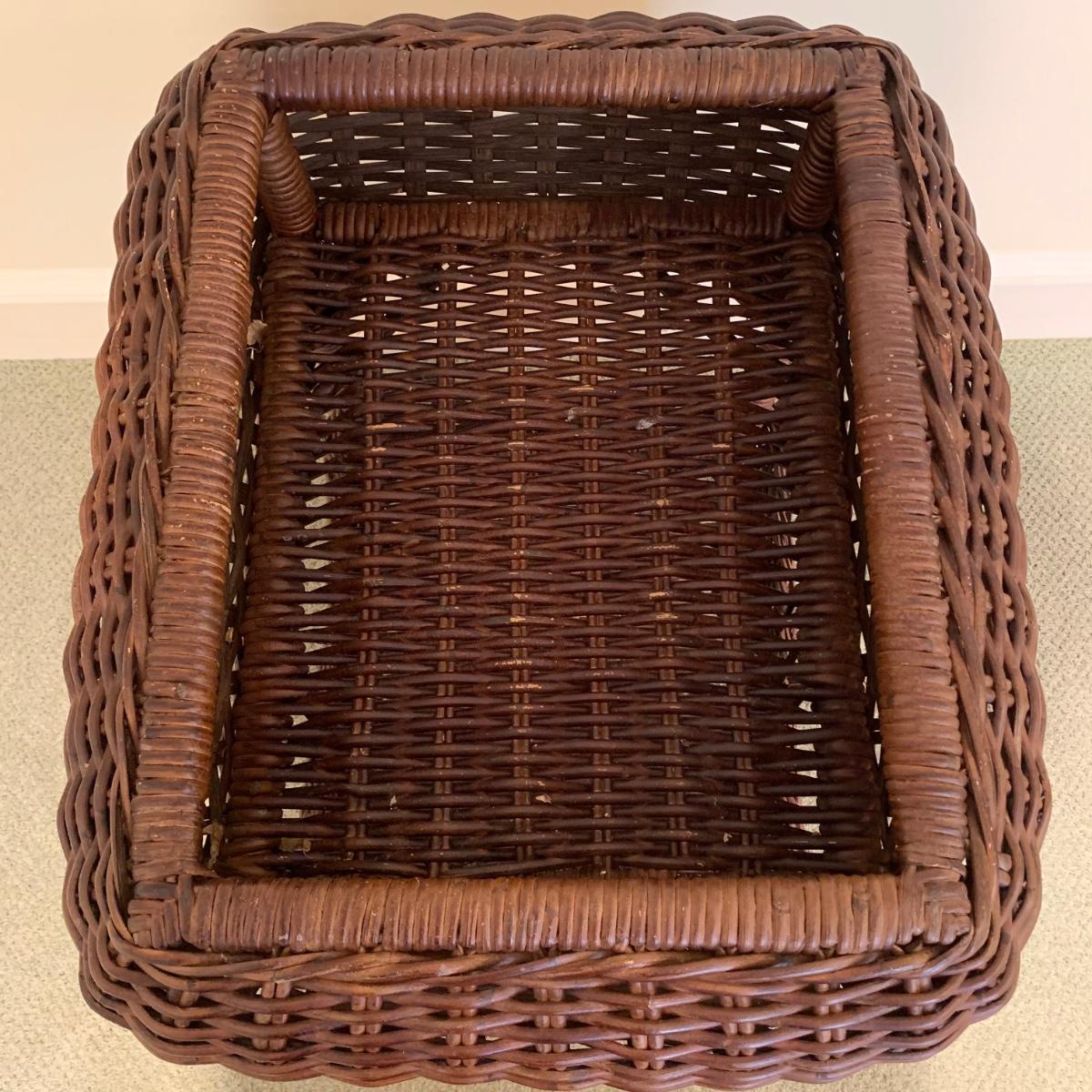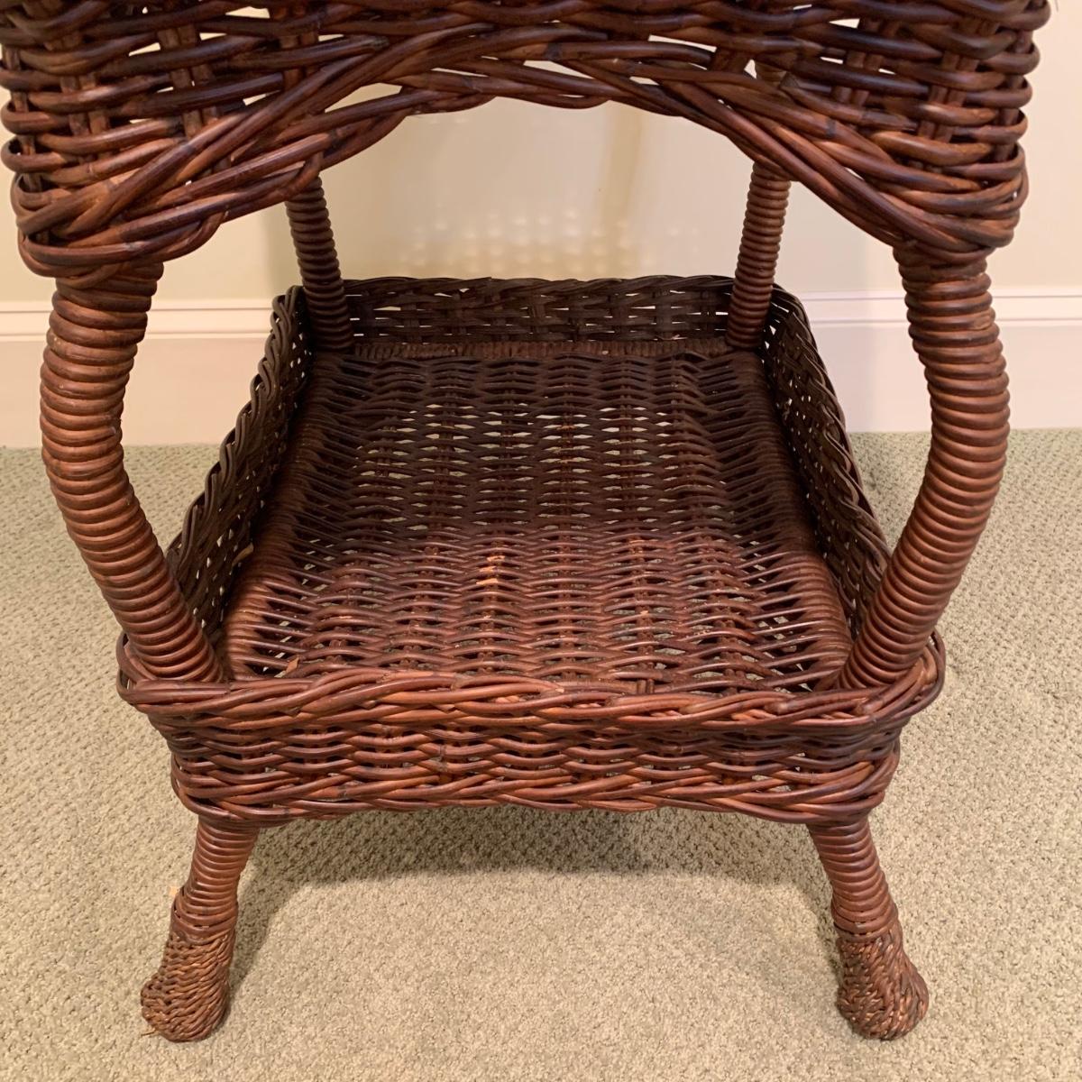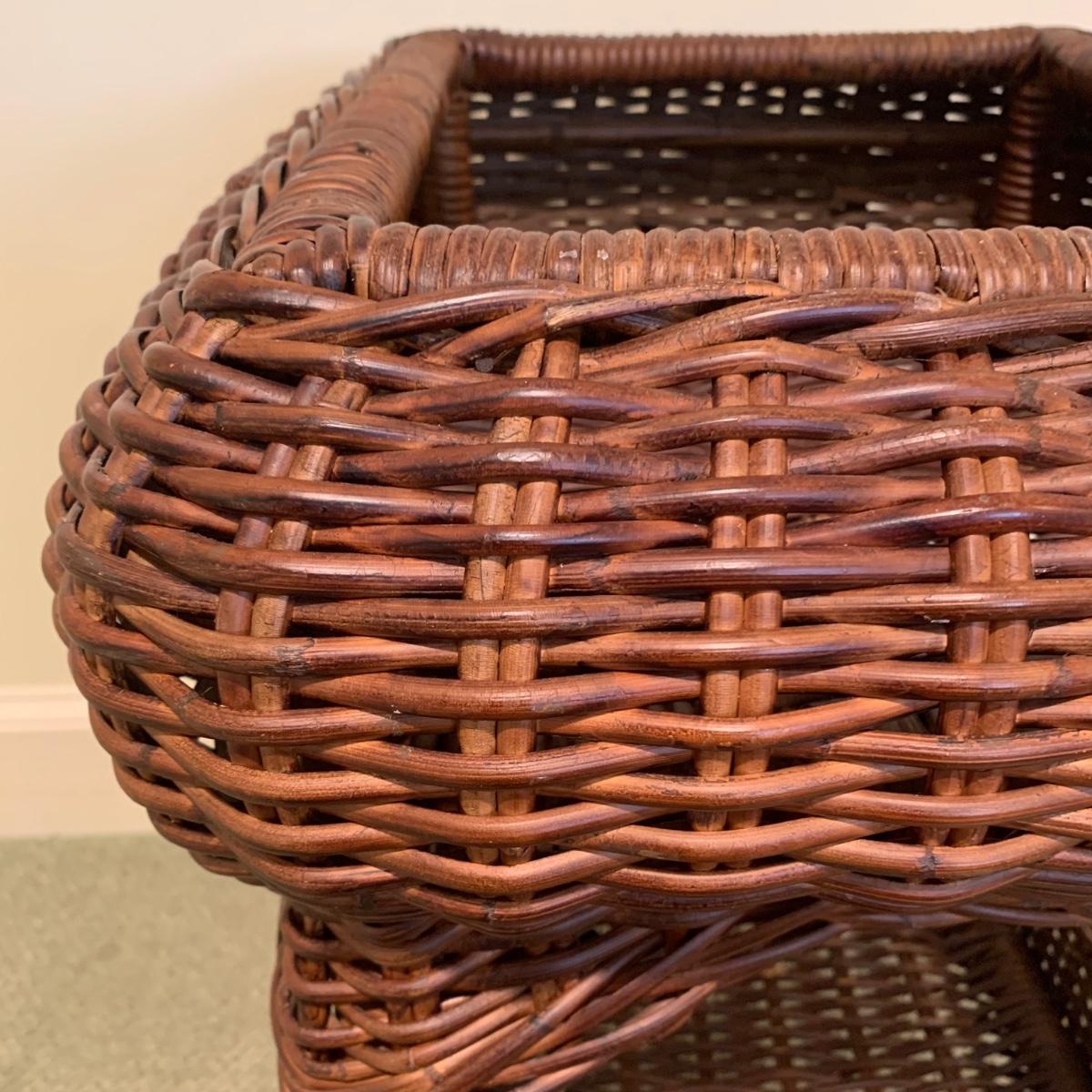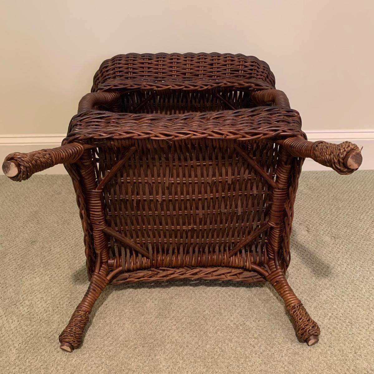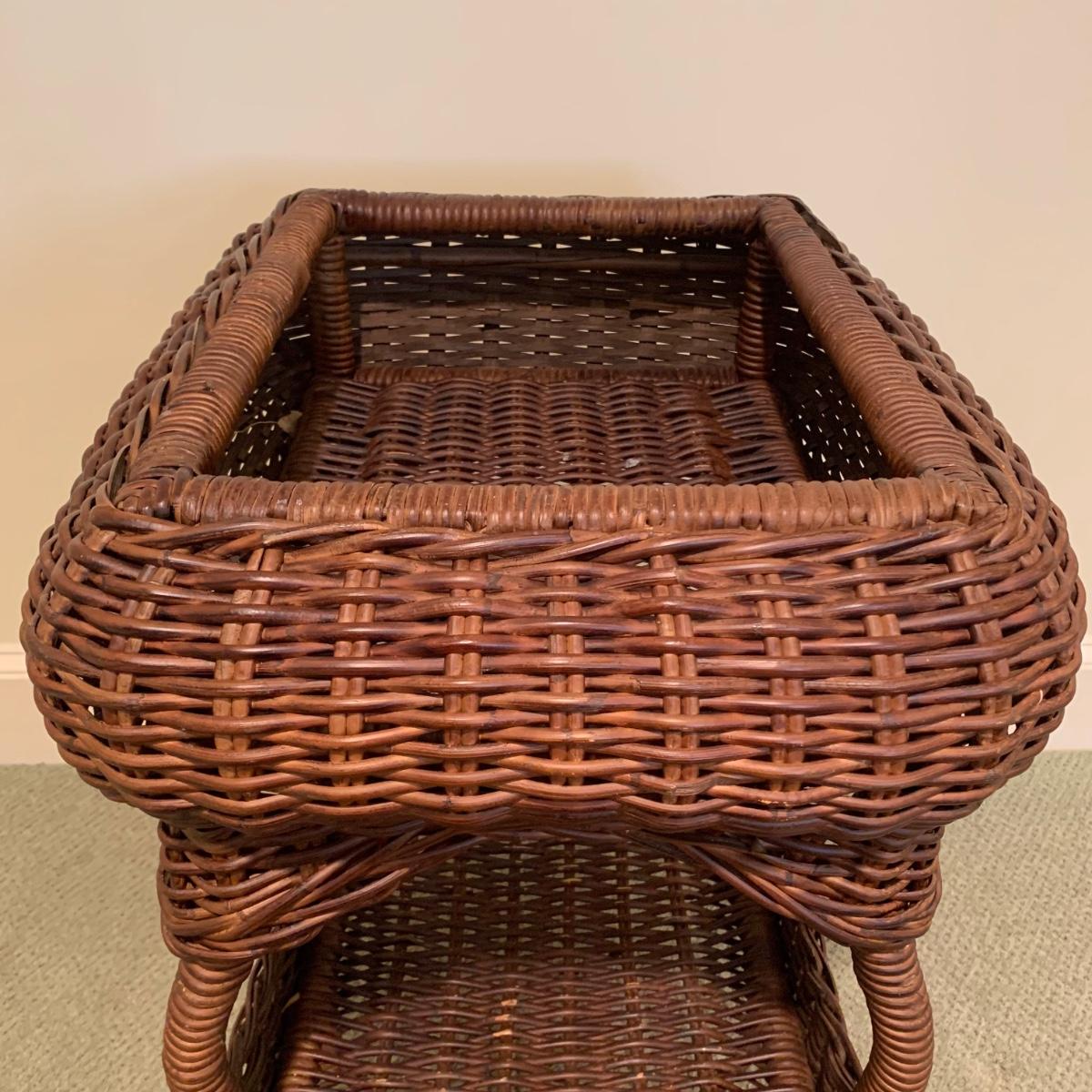Wicker style sewing table. Table is dark brown wicker and measures, 27” x 22” x 29.5”H. Please see photos for more details. Local pickup only.