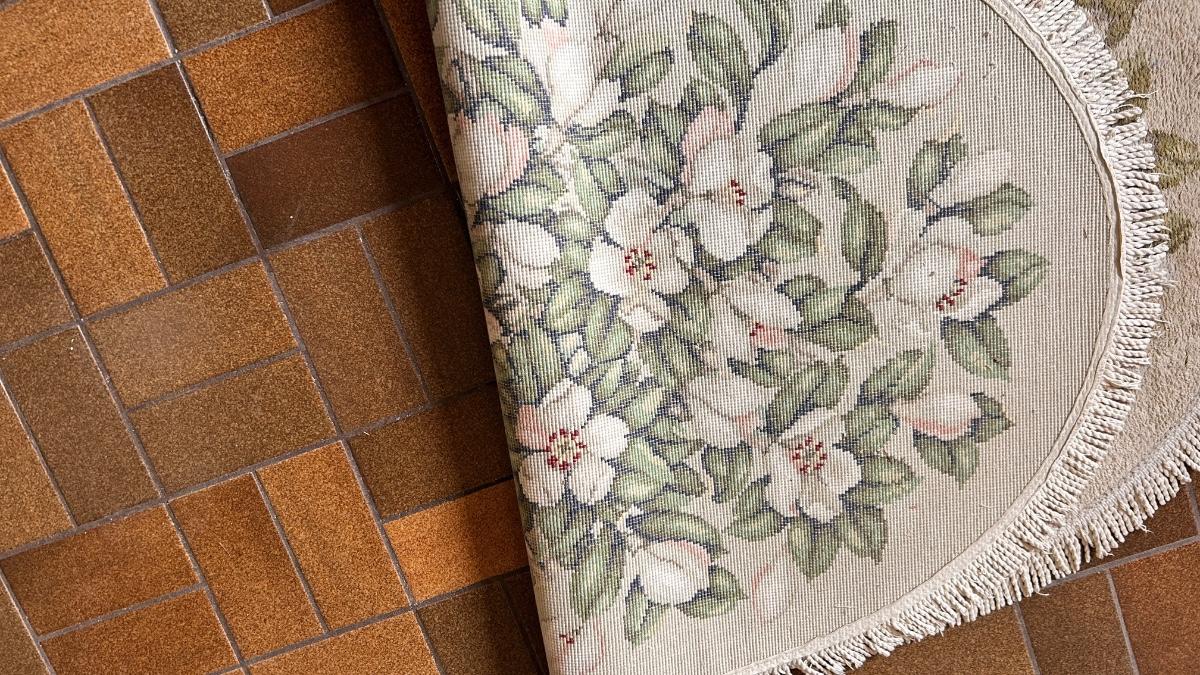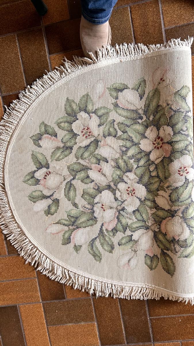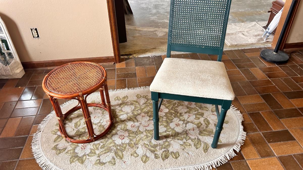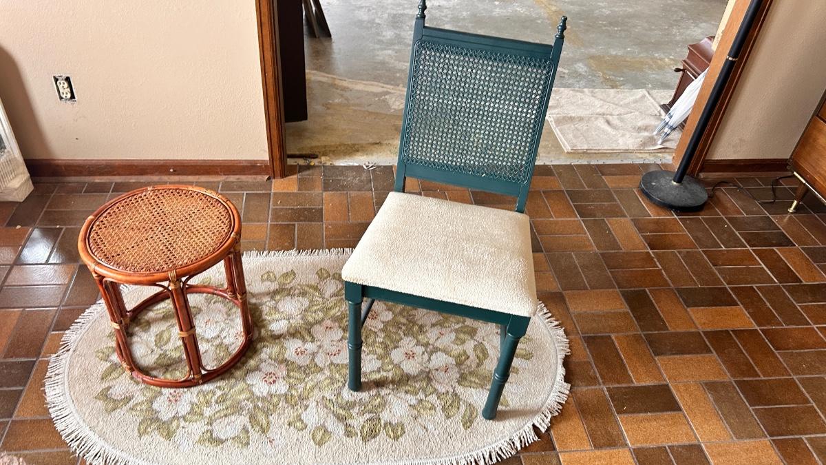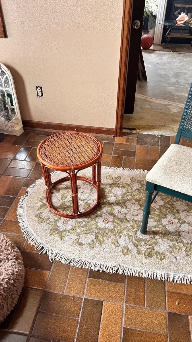 WICKER STOOL/TABLE, CHAIR, and RUG