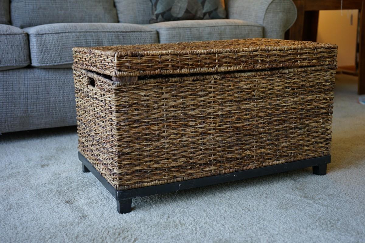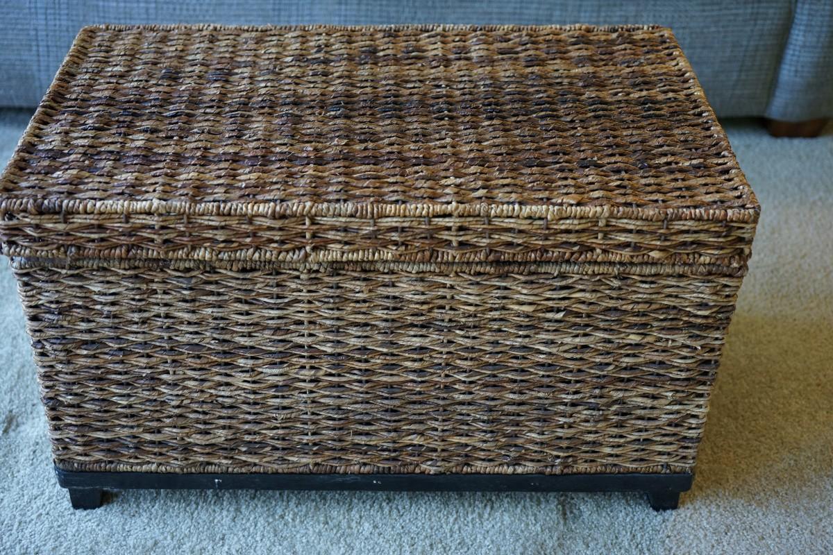 WICKER STORAGE TRUNK WITH WOOD BASE /LEGS