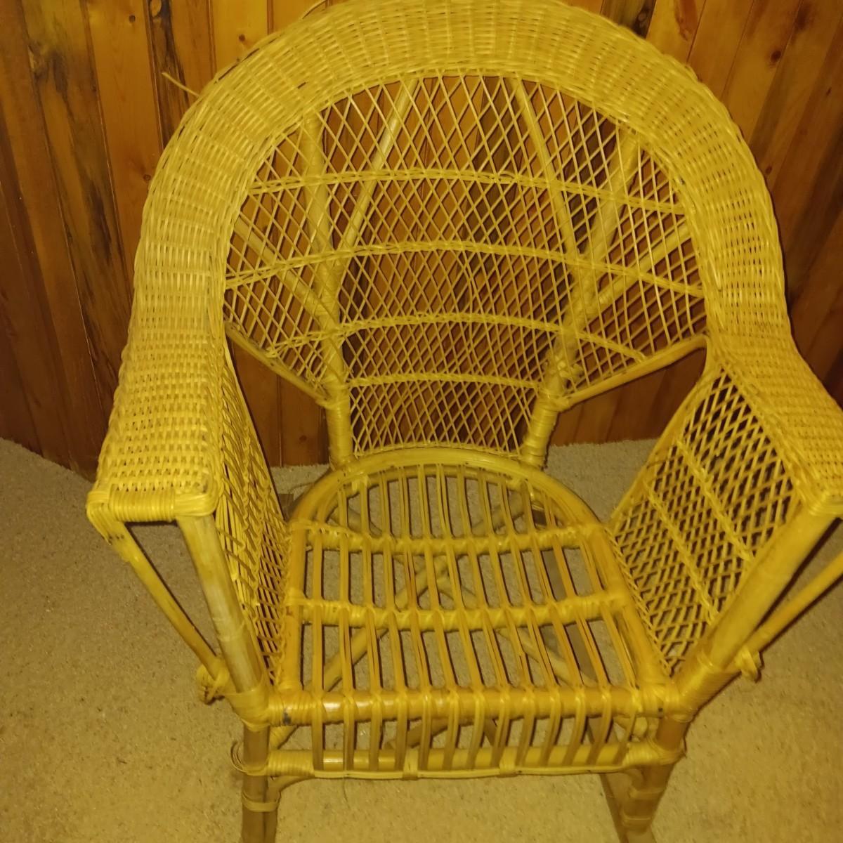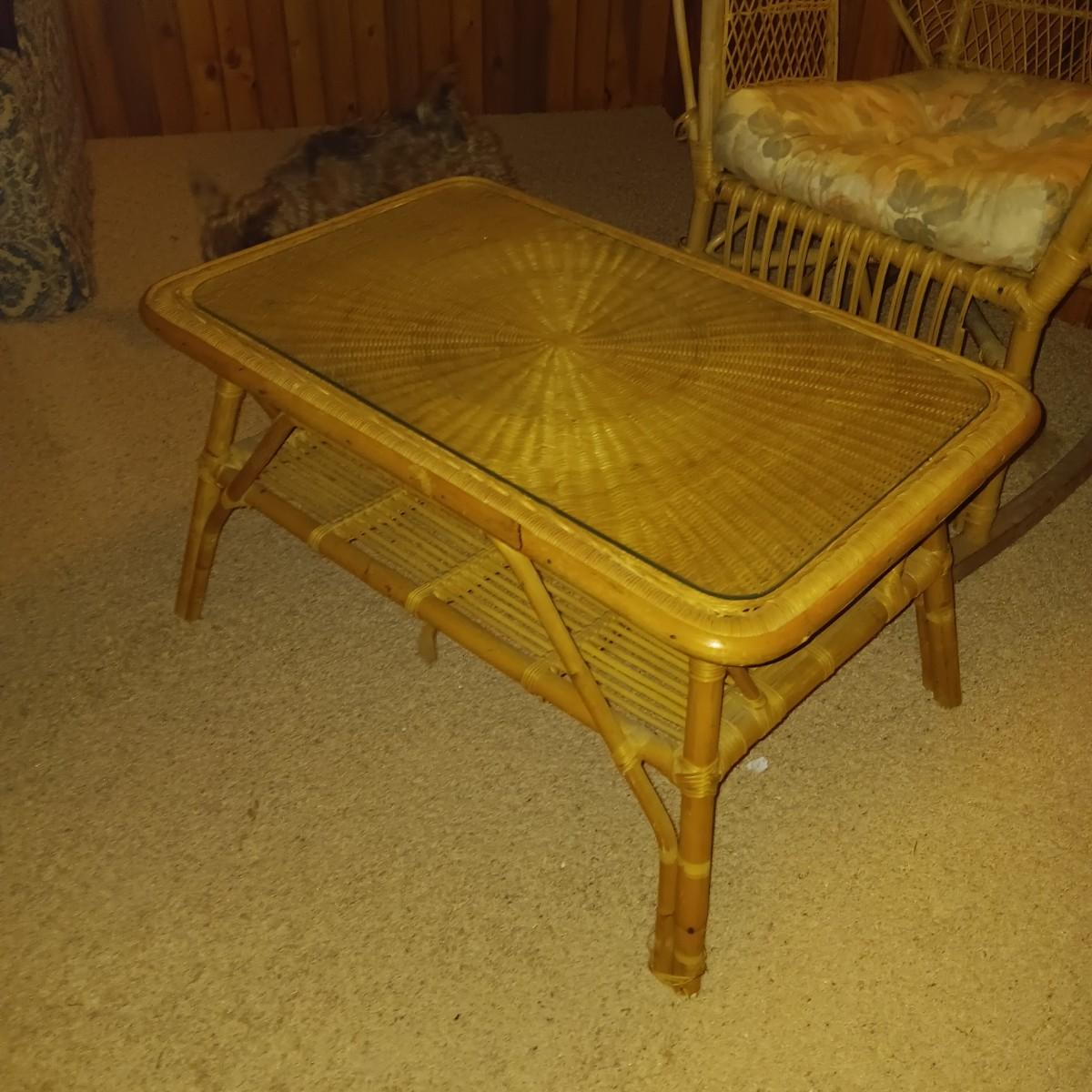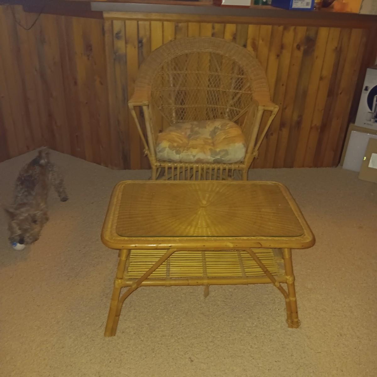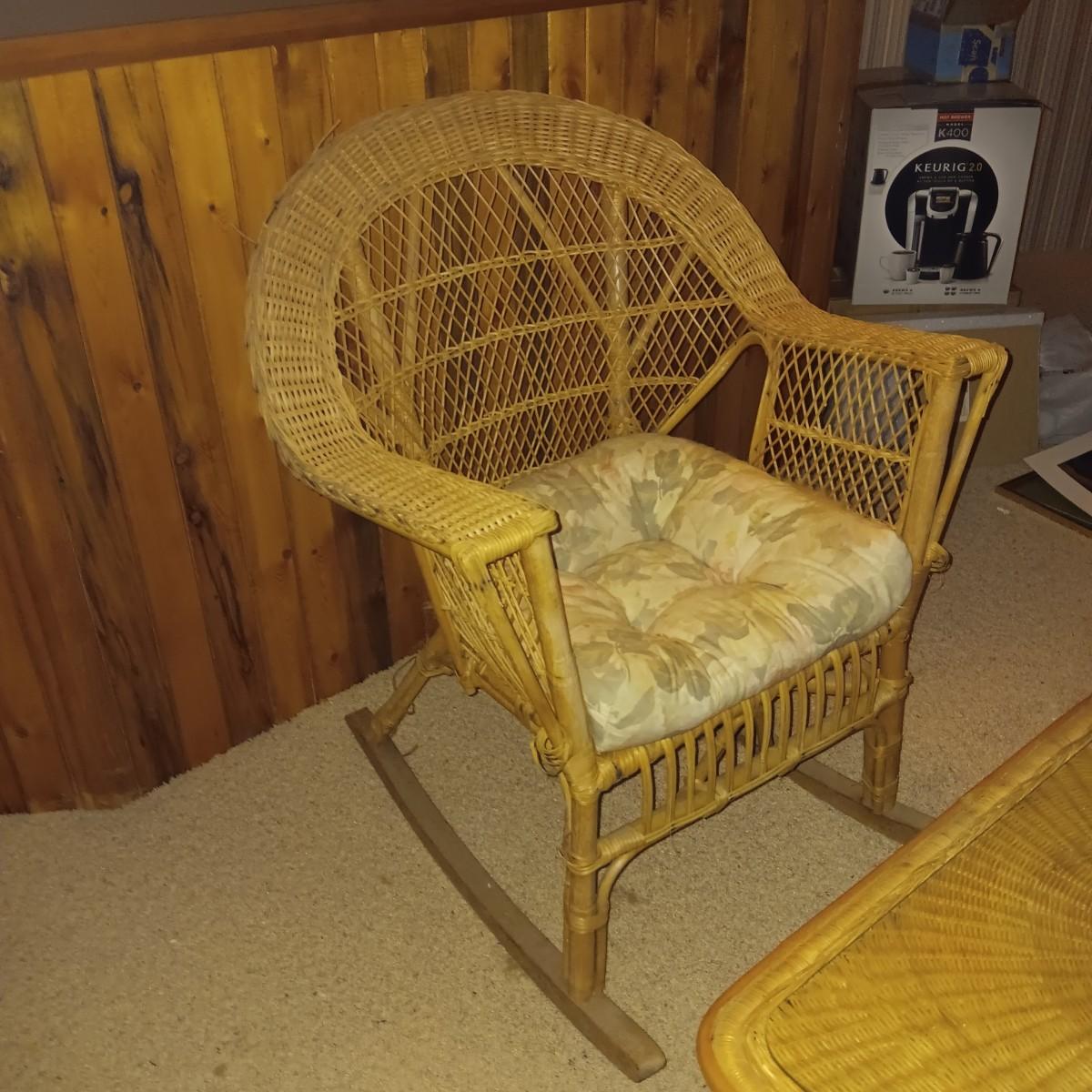 WICKER TABLE AND ROCKING CHAIR