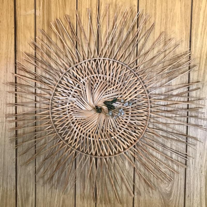 One wicker wall-mounted decorative sunburst. It is in excellent condition; see pictures.