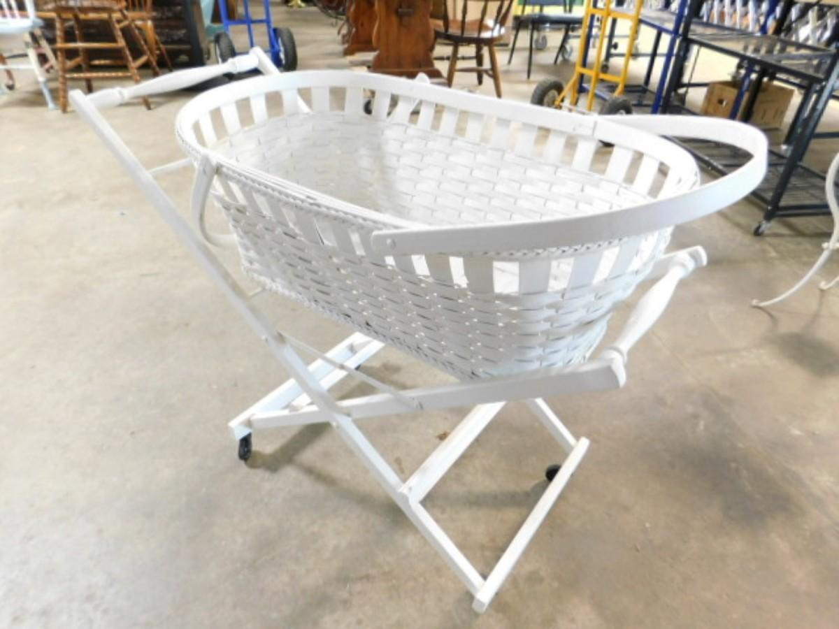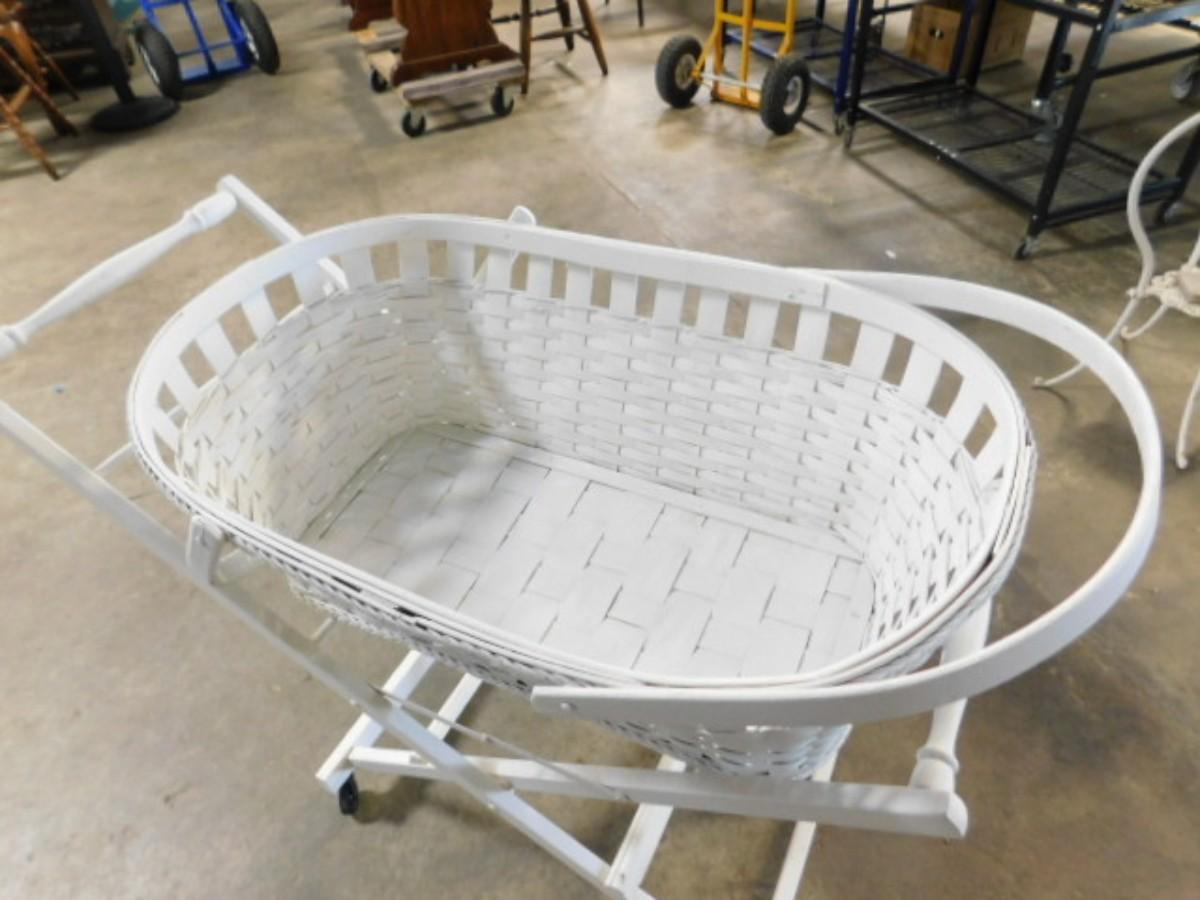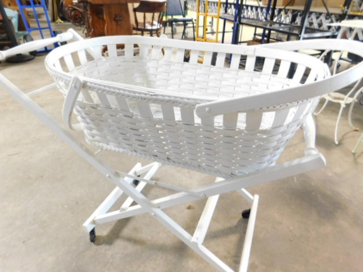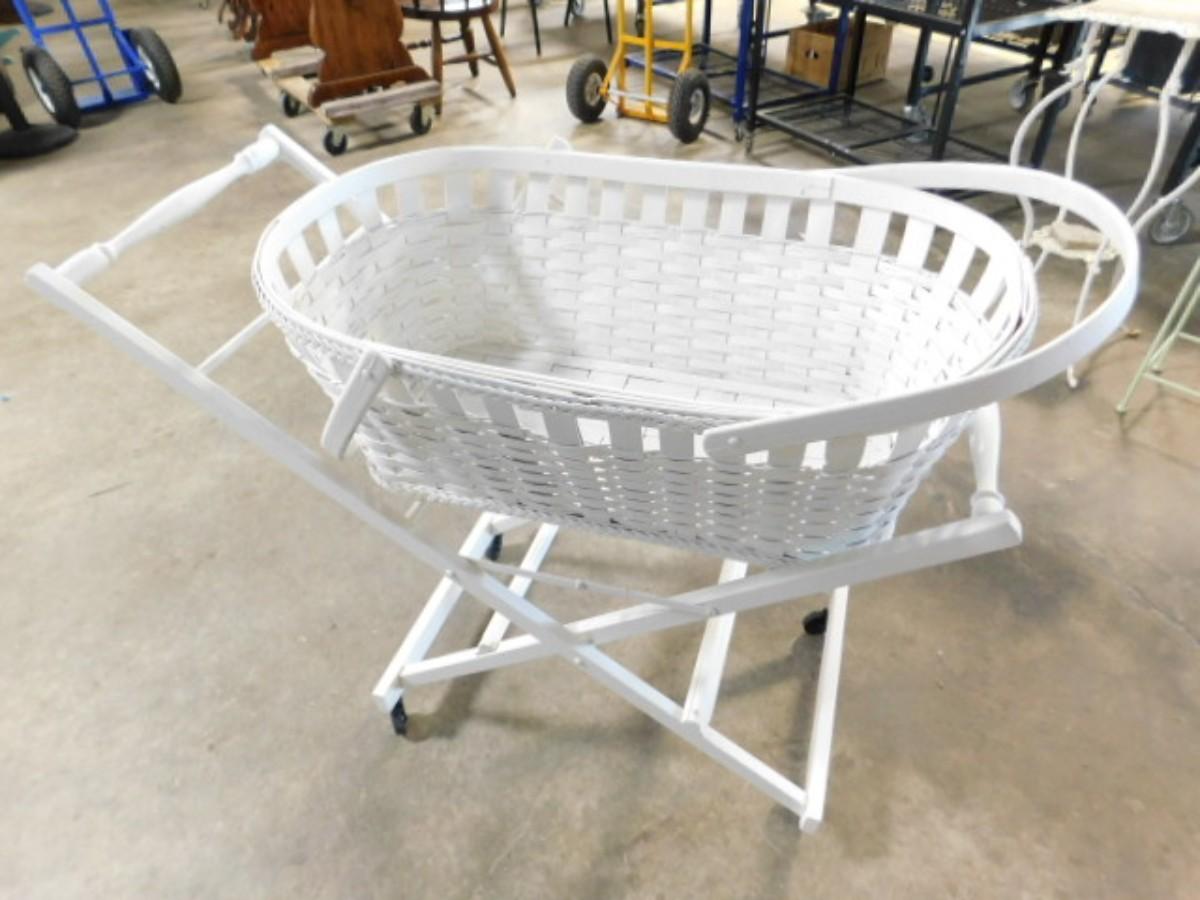 Wicker Weave Bassinet Basket on Wheeled Carraige