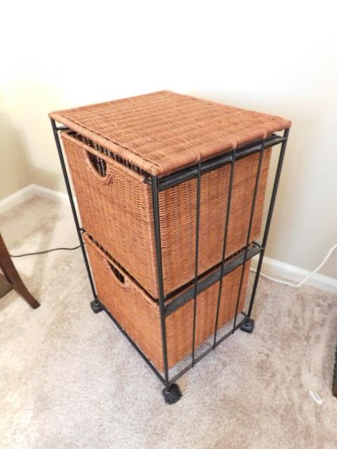 Wicker Weave Double Basket Rolling Organizer Choice Two 16"x27"