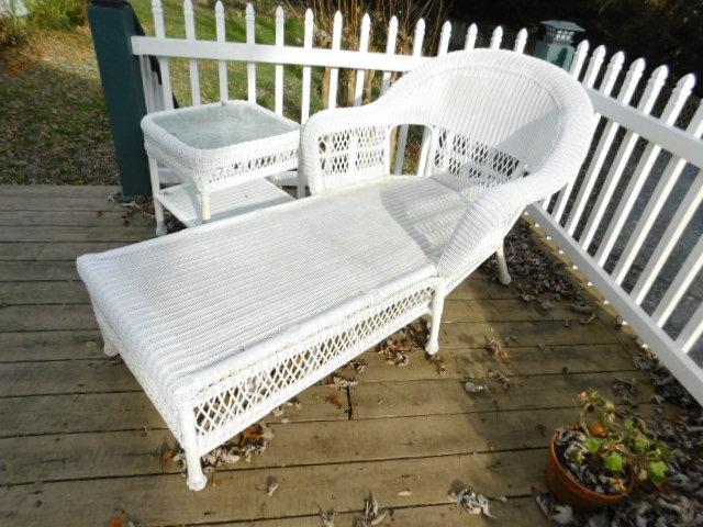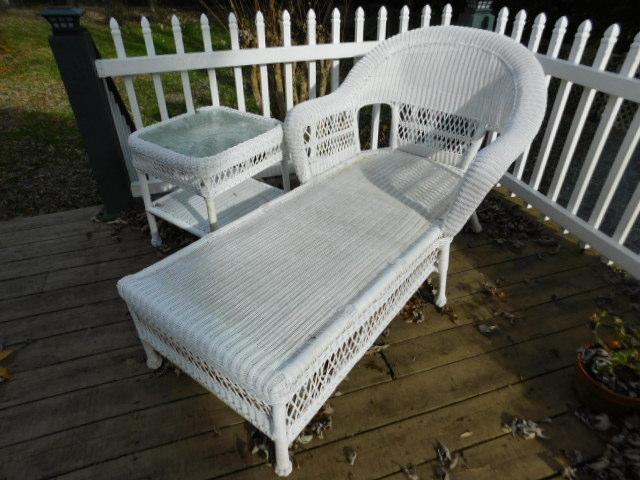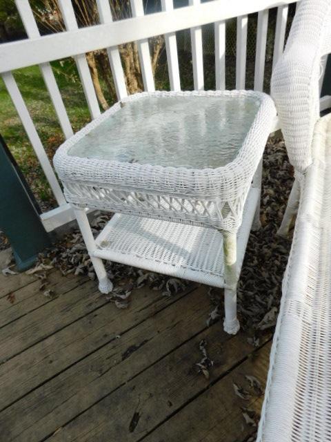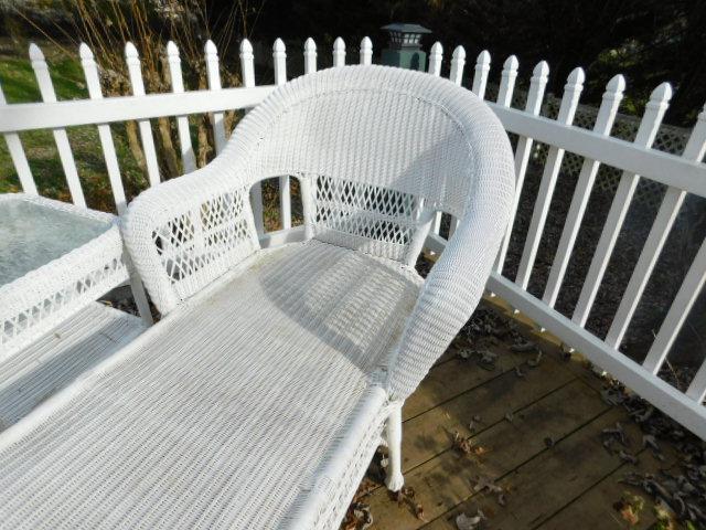 Wicker Weave Patio Lounger with Glass Top Side Table and Seat Cushion