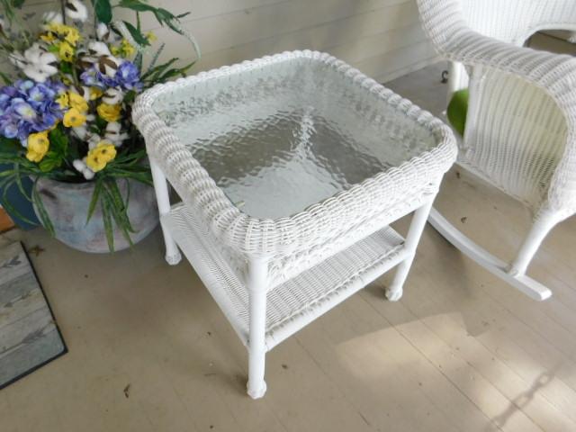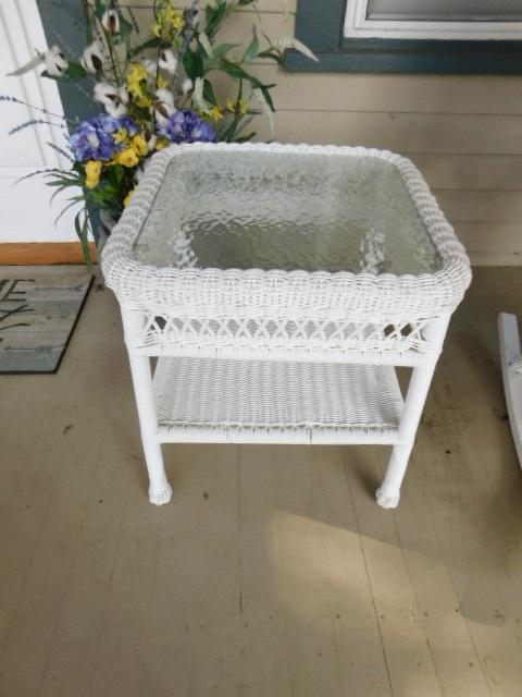 Wicker Weave Side Table with Glass Top