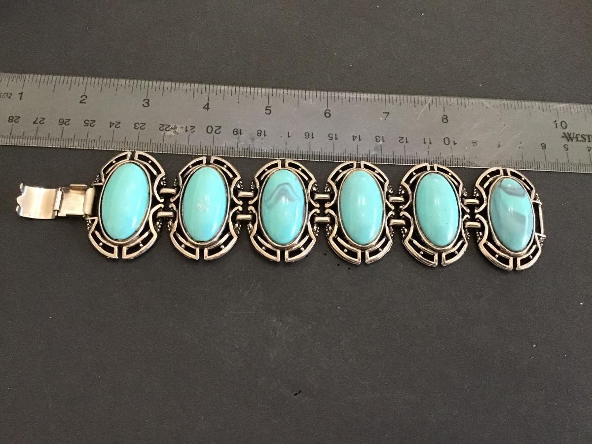 Wide Faux Stone Locking Bracelet. Mid