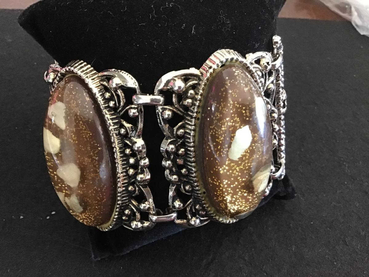 Wide Lucite Confetti Glitter Pebble Bracelet