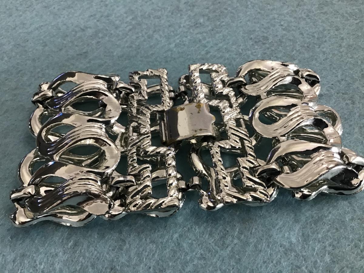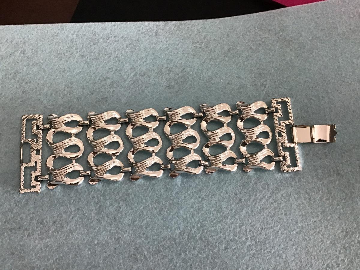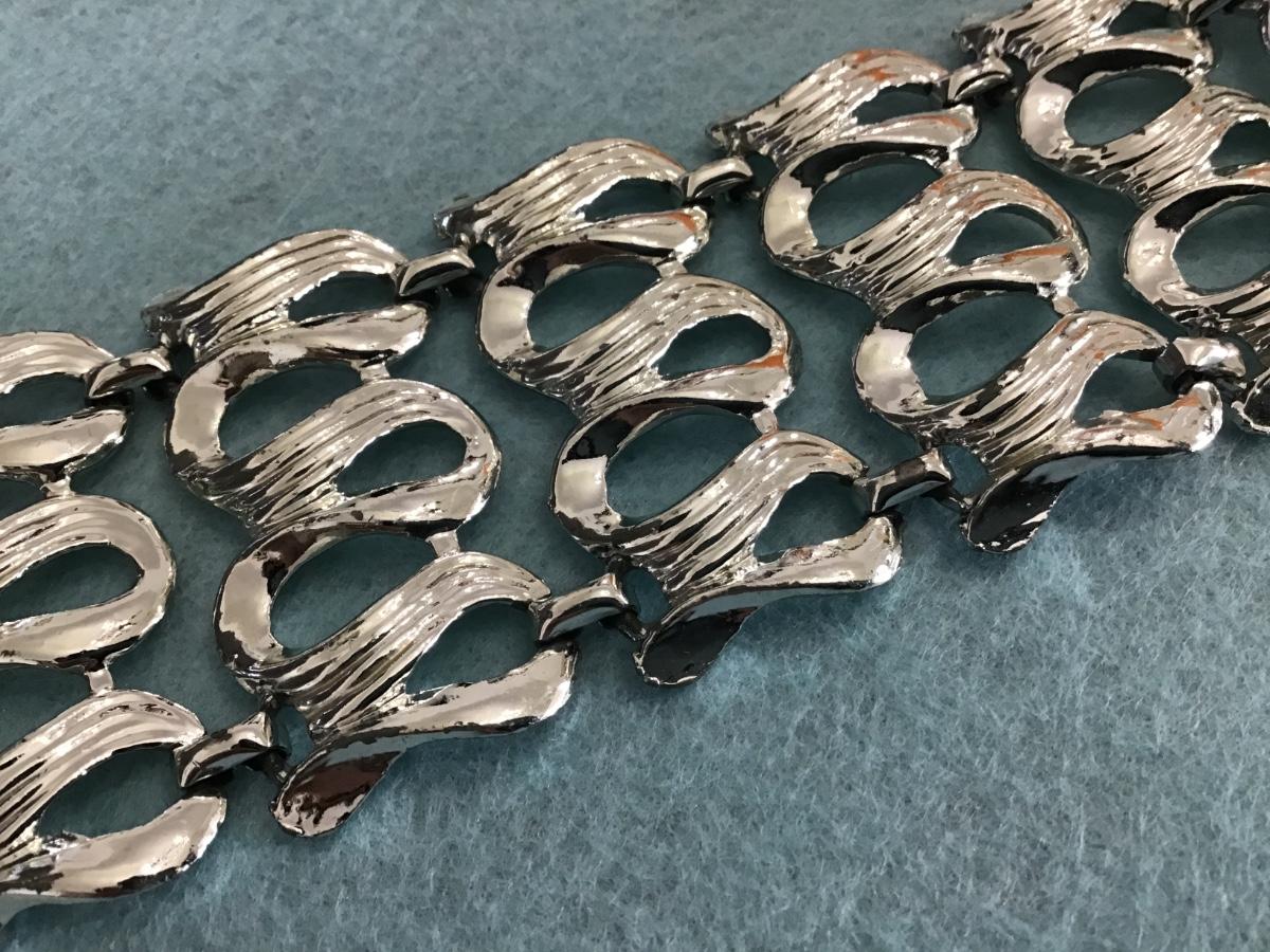 Wide Silvertone Linked Bracelet