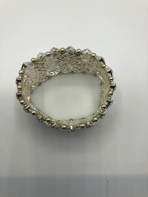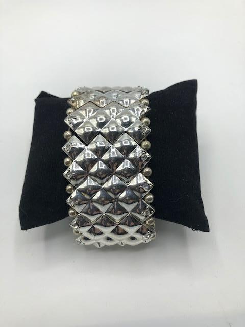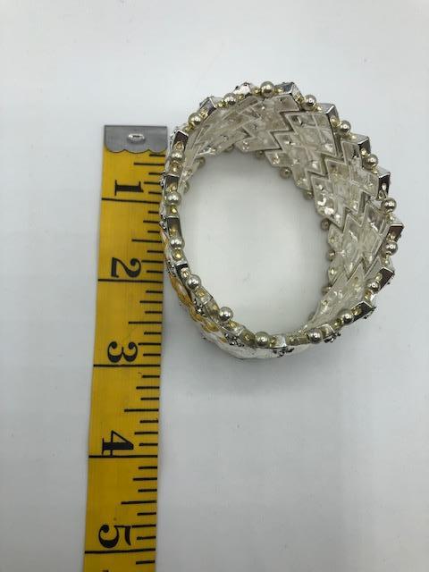 Silvertone Stretch Bracelet. Wide, 1.5". Has some discoloration spots from normal wear.