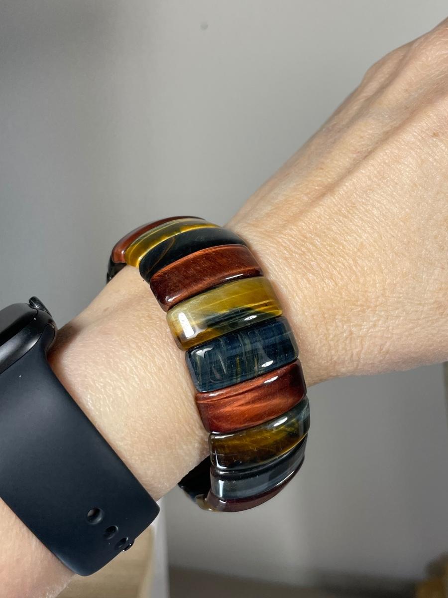 Wide Tiger Eye Gemstone stretch Bracelet