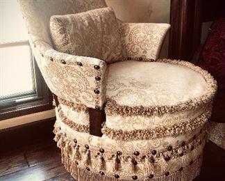 Wig Chair from The Whimsey Shoppe, Dallas. Turns on ball bearings and casters.