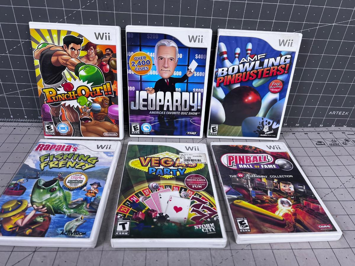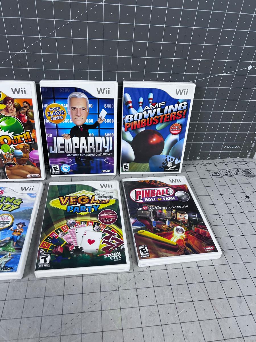 Wii Games; Jeopardy, Pin Ball, Fishing (6)