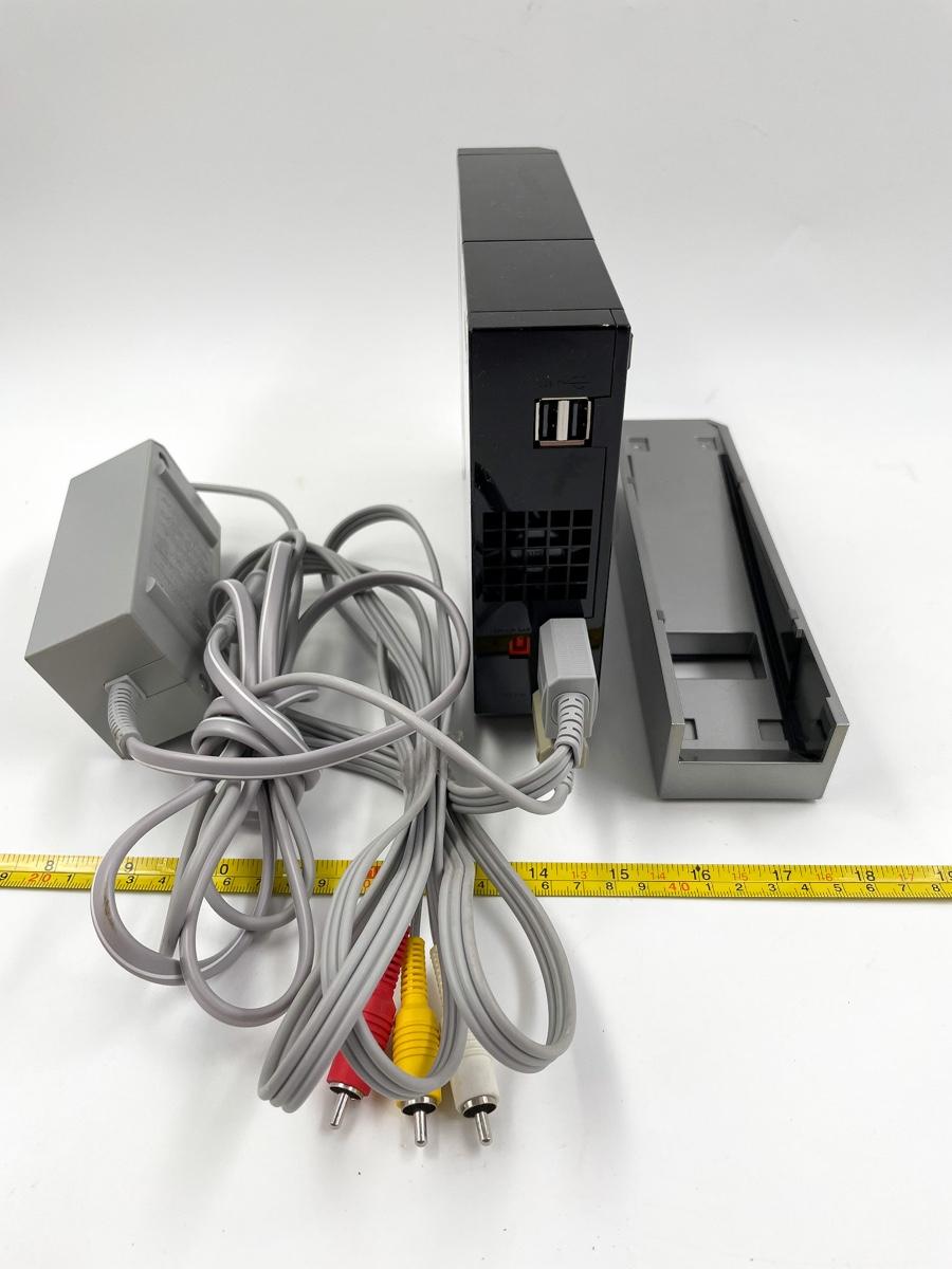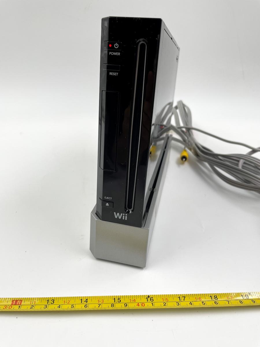 In good physical condition - turns on when plugged in but not otherwise tested. Comes with two controllers, rubber controller covers, and sensor bar.