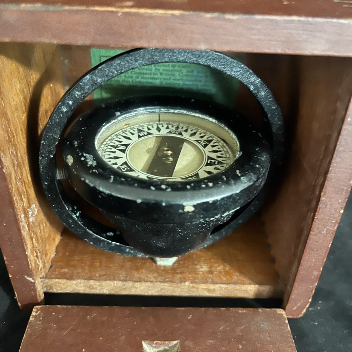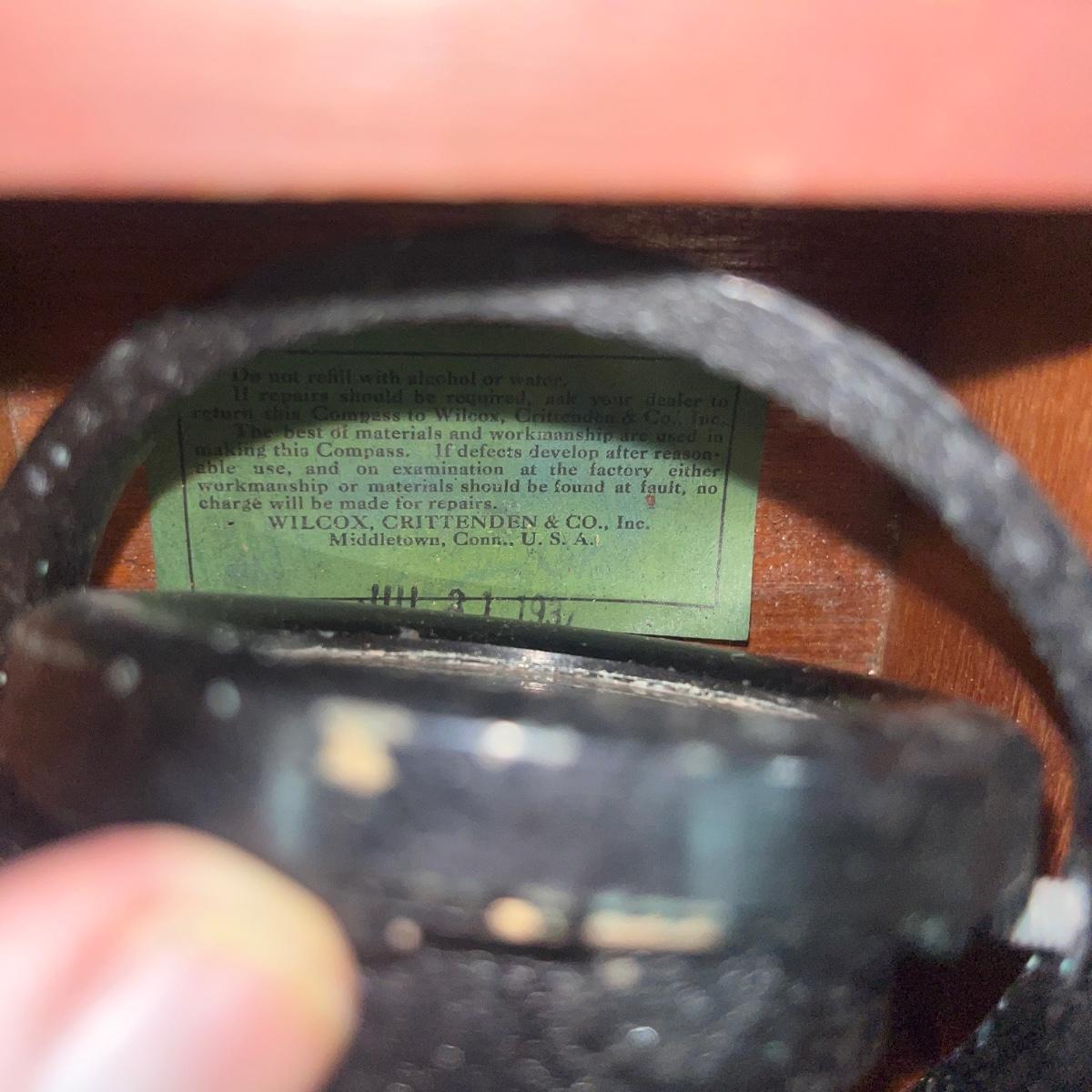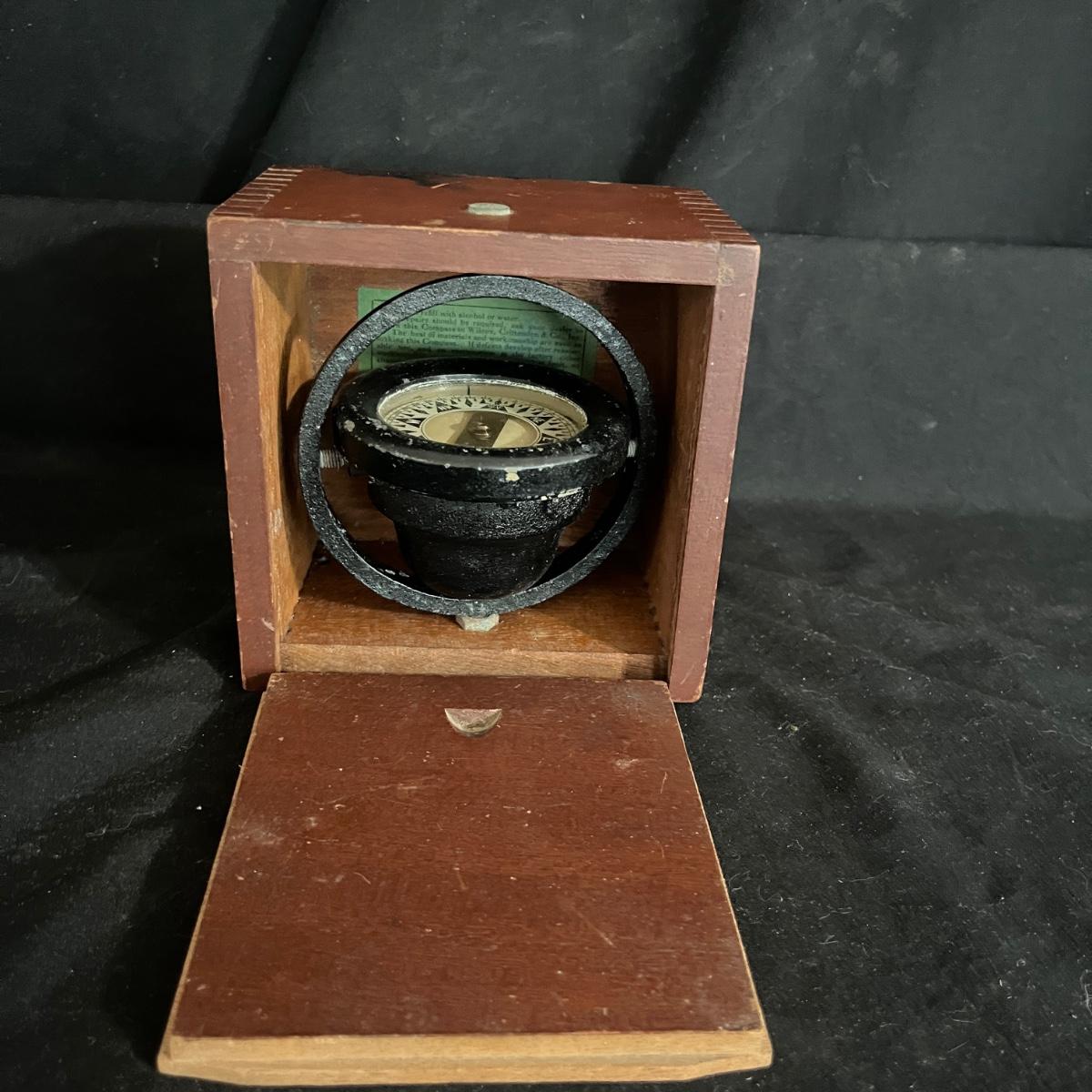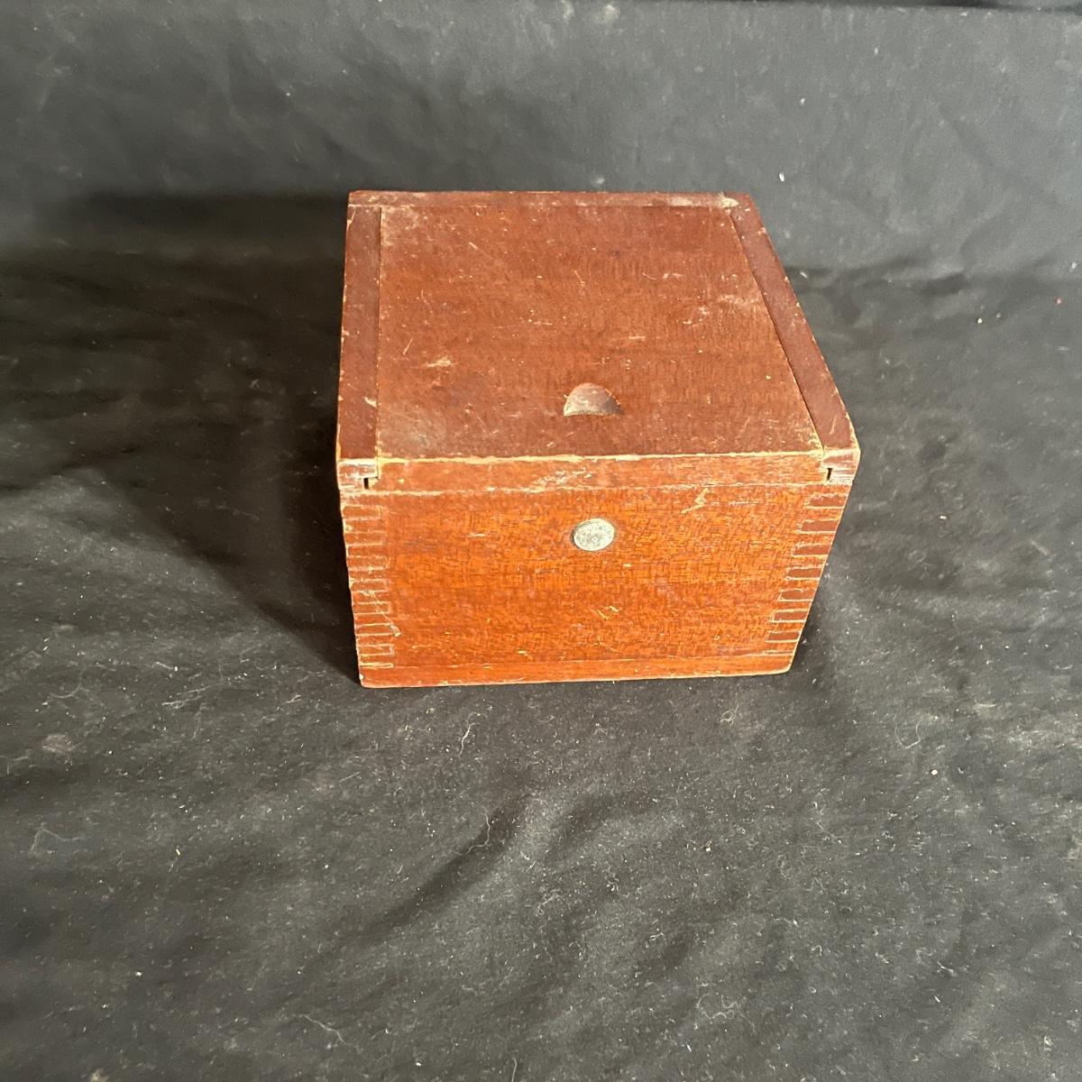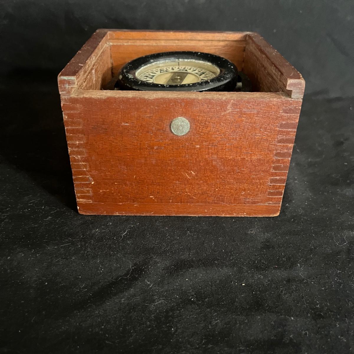 Lot includes a Wilcox, Crittenden & Co. compass in a dovetailed wooden box with sliding lid. Box measures 5” x 5” x 3.5”H.
