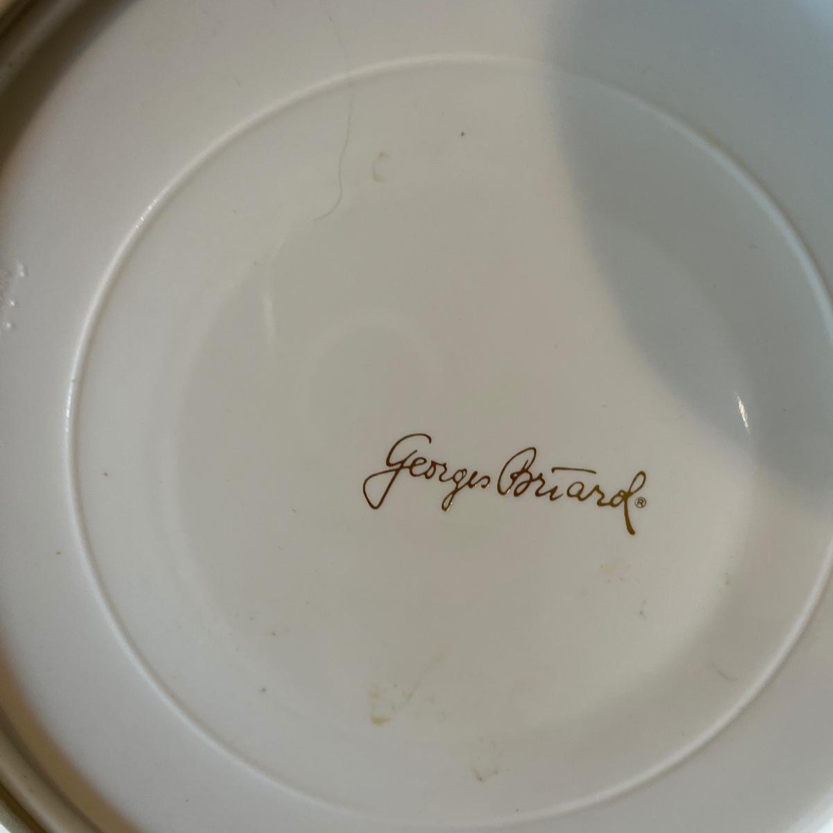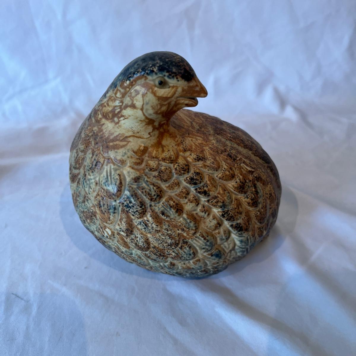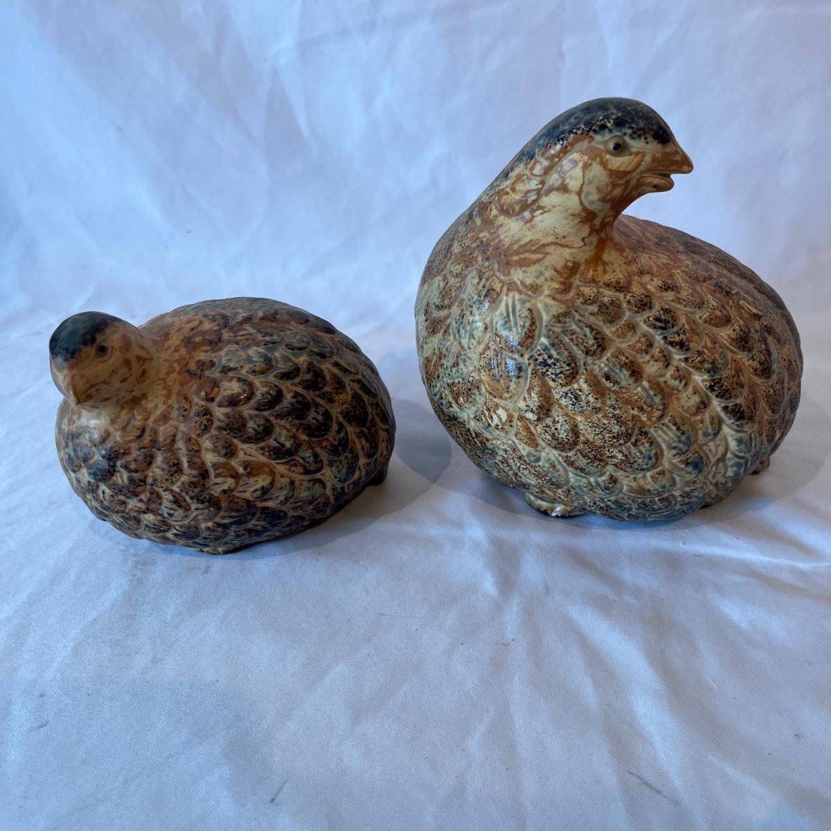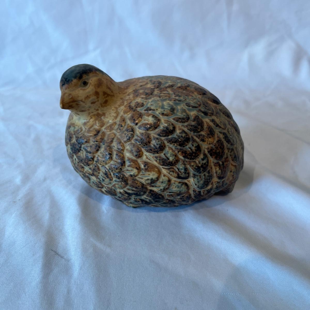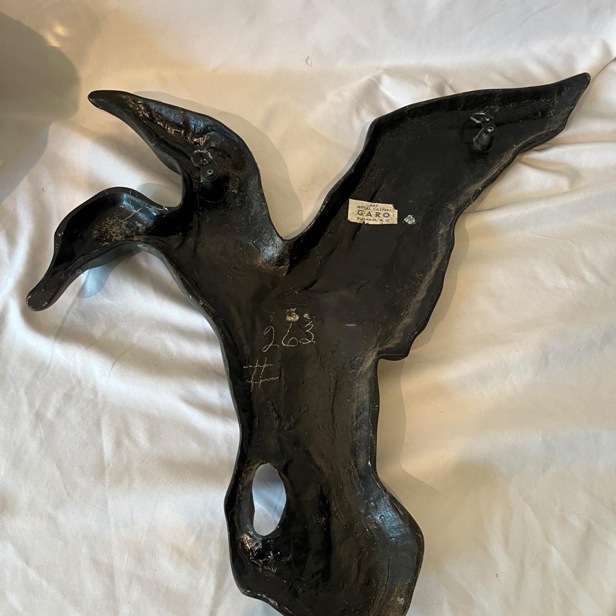Lot includes a heavy metal mallard wall hanging, two wooden framed pheasant art, two ceramic pheasants and a George’s Briard plastic ice bucket. Frames measure 13.5” x 11”H.