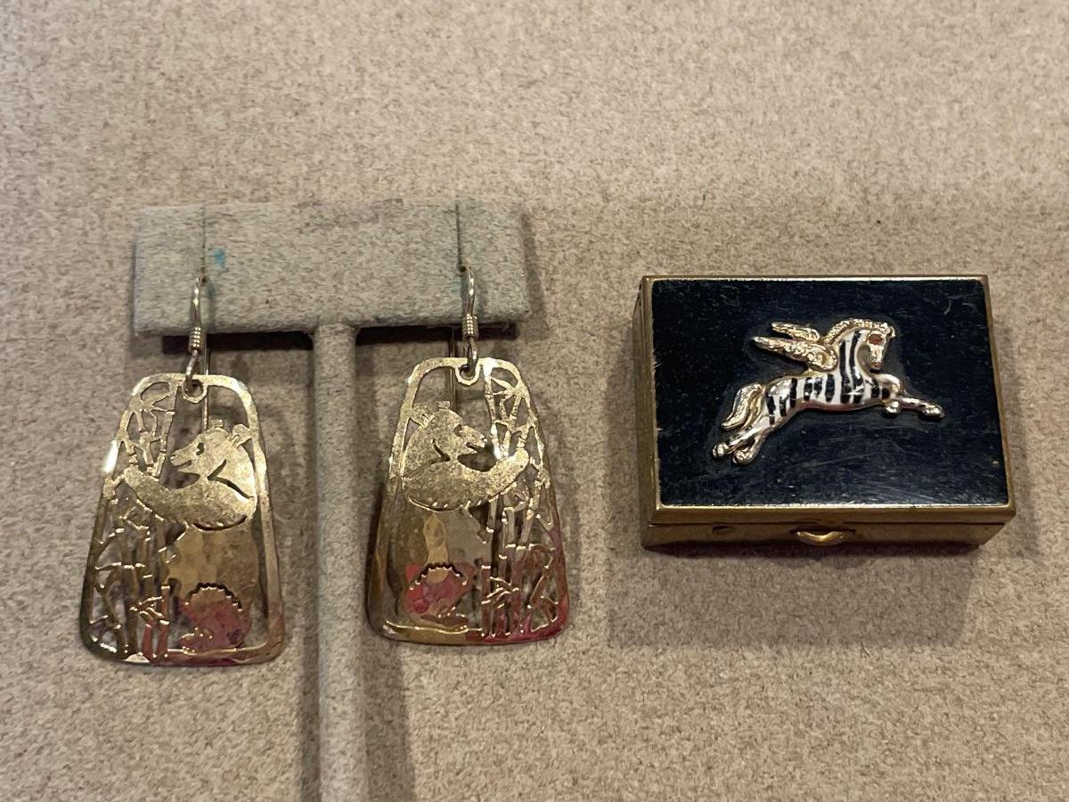 Earring & pill box with animals on them