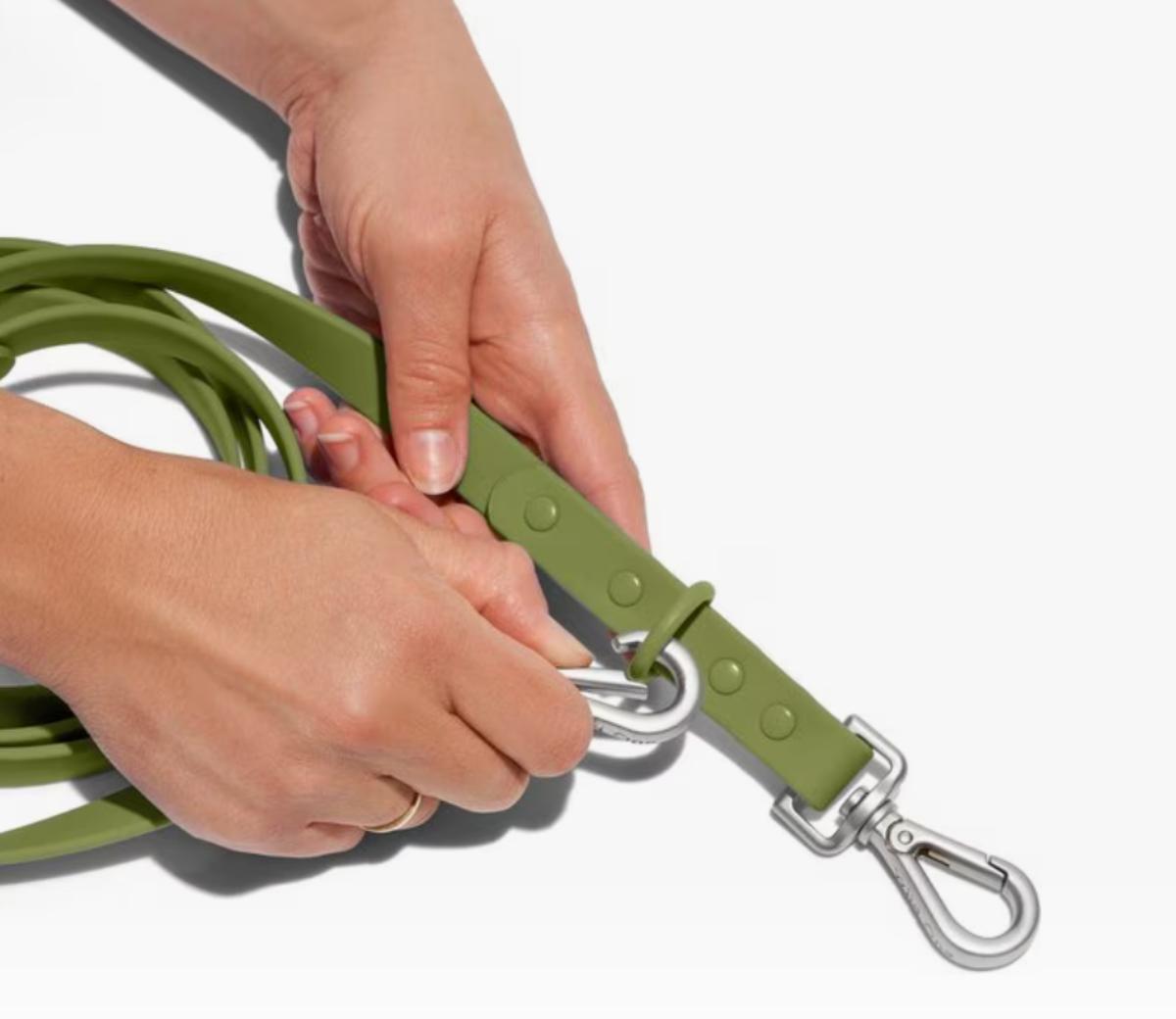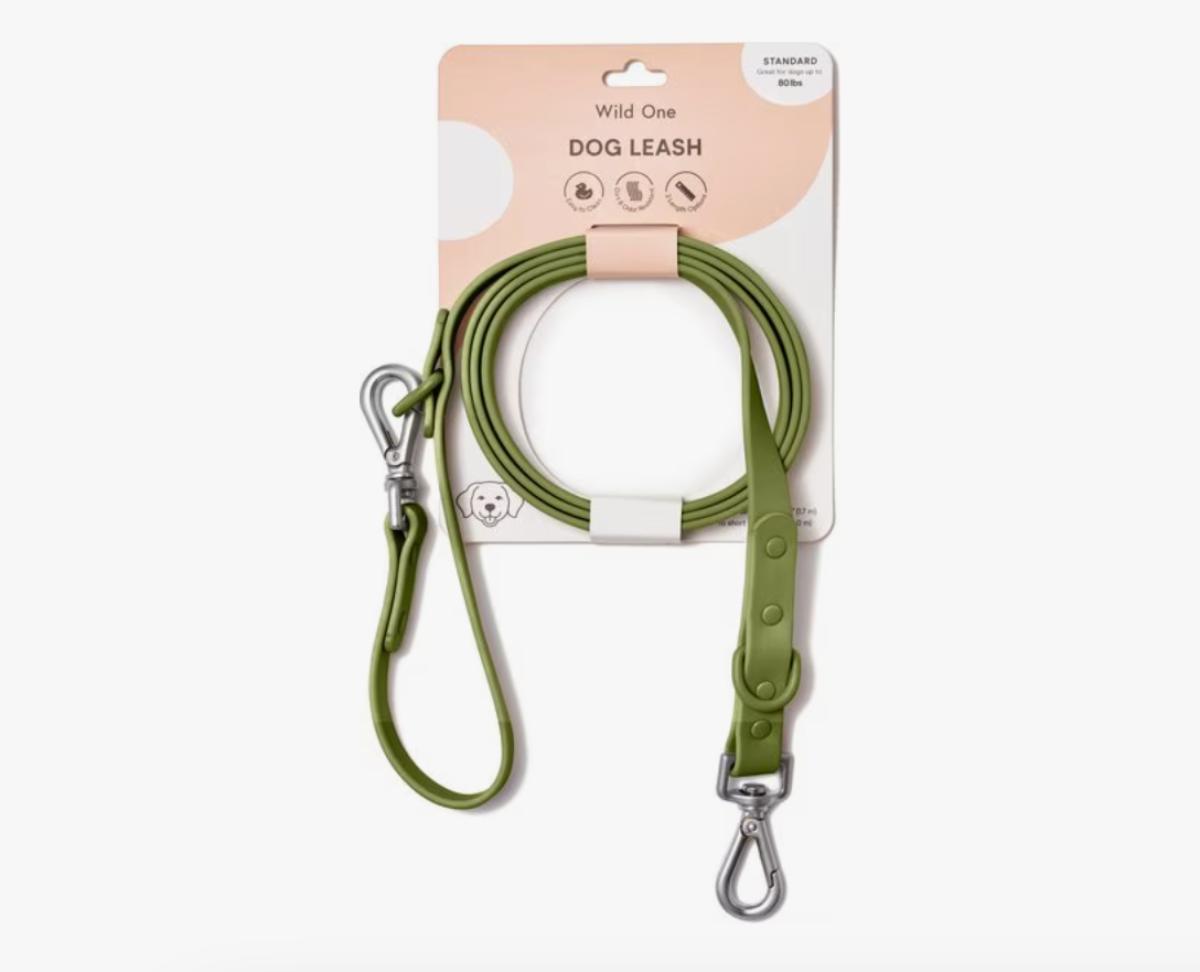 Wild One 5' Adjustable Waterproof Flex-Poly Coated Nylon Dog Leash Moss Green Dirt & Odor Resistant All Weather