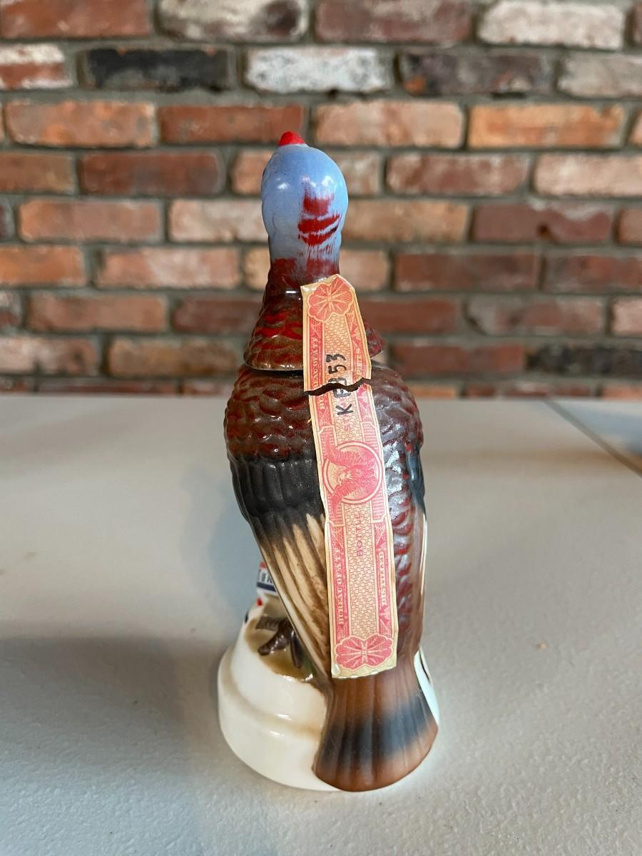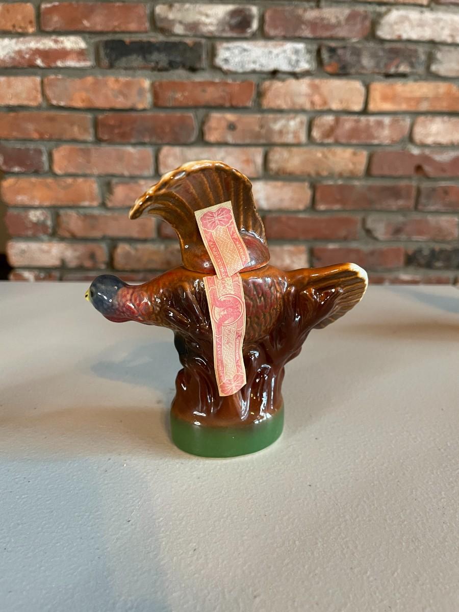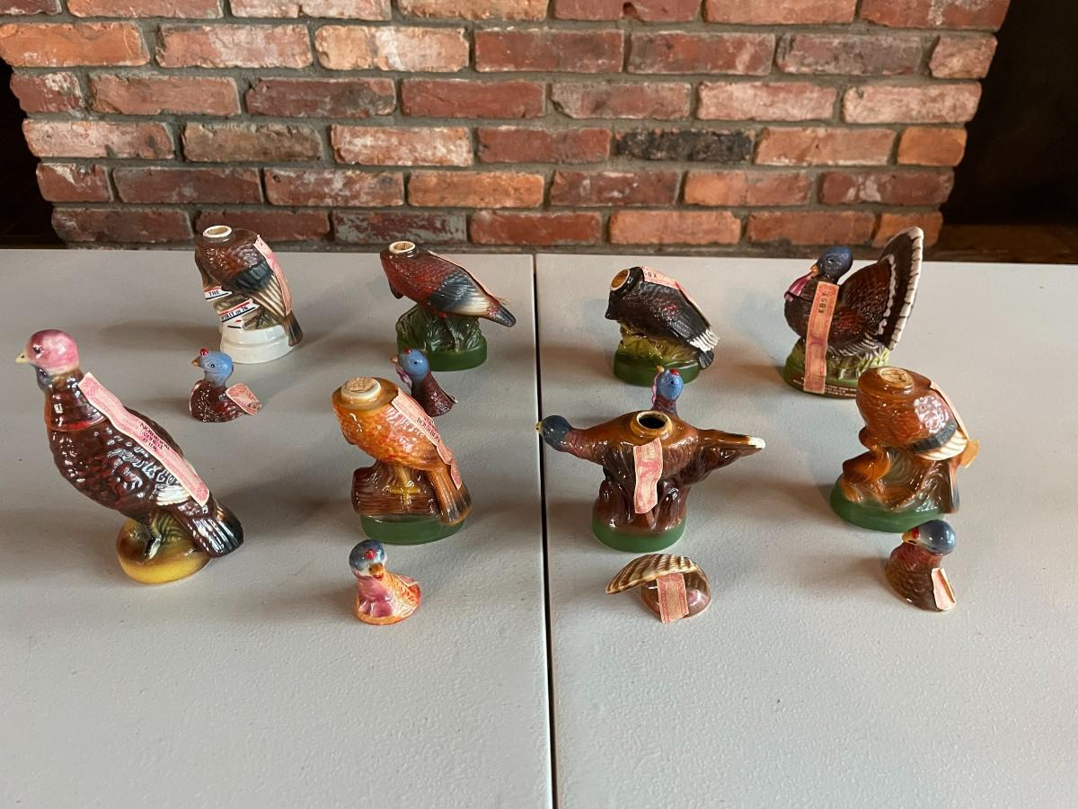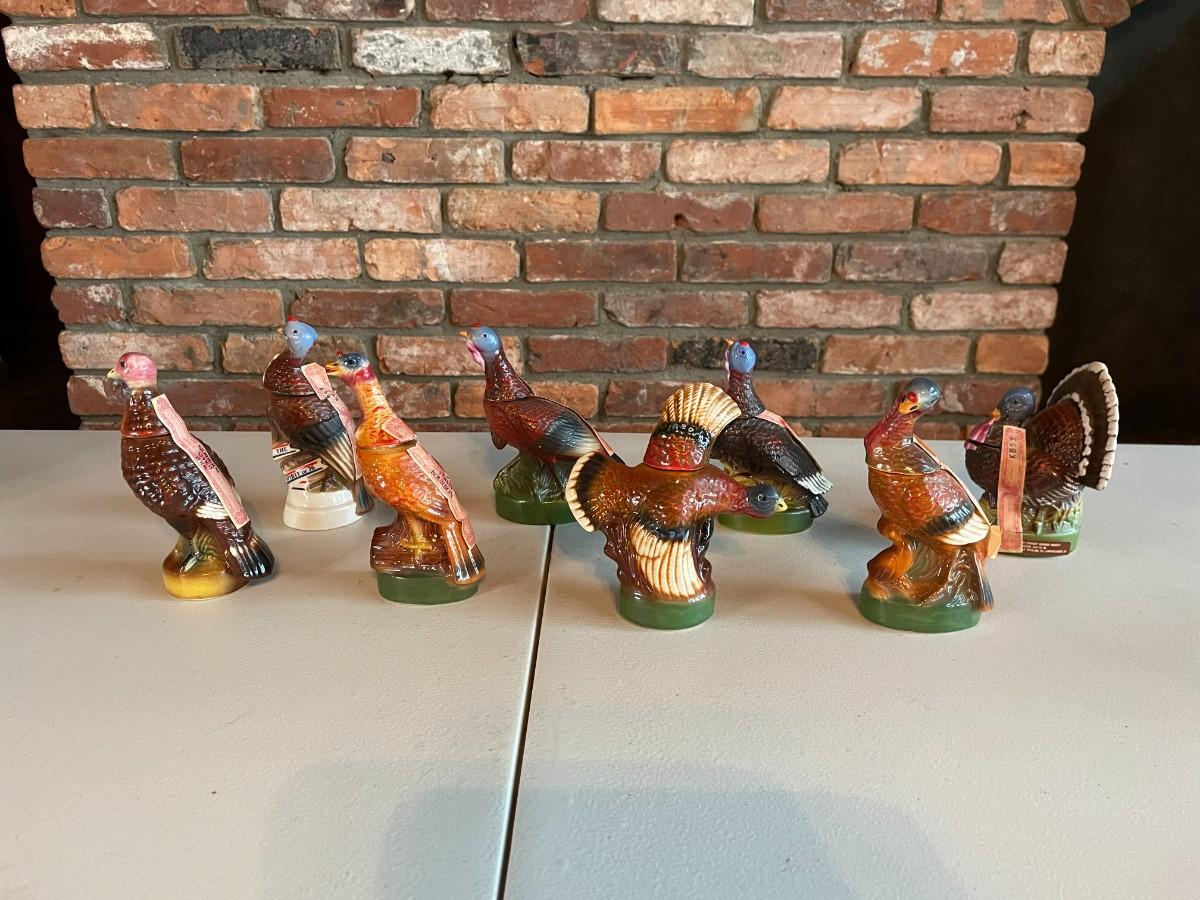 Complete Series 8 of 8. Ceramic one-of-a-kind wild turkey mini decanters. NO ALCOHOLIC CONTENT. Each one measures approximately 3w x 5h.