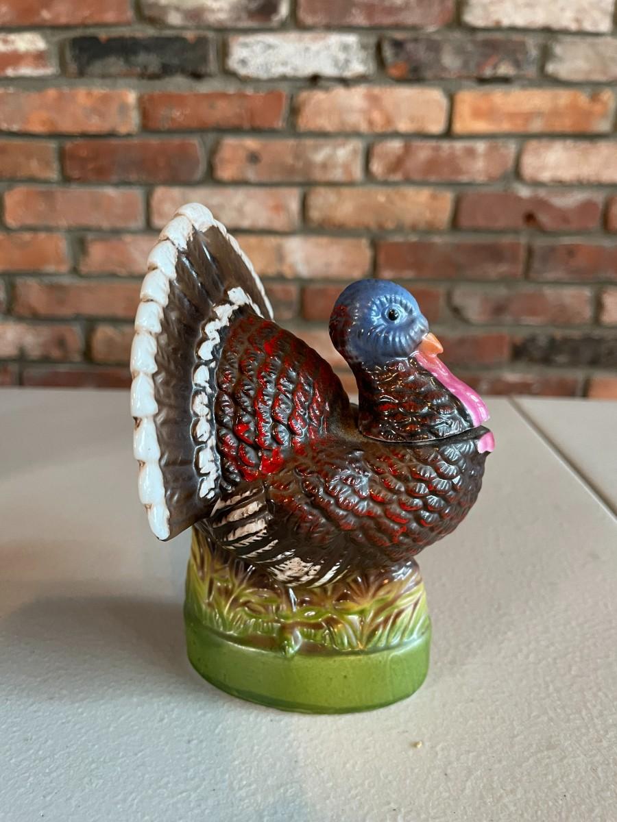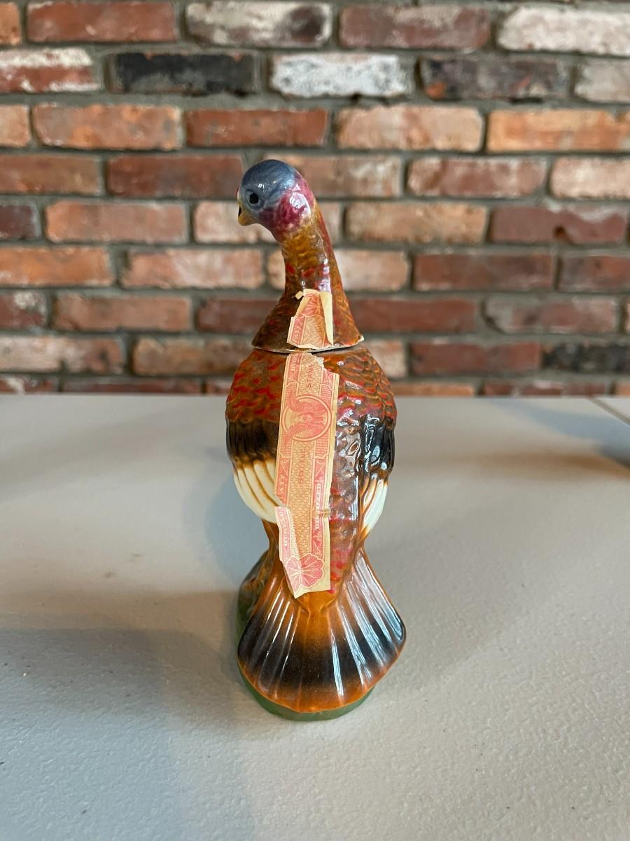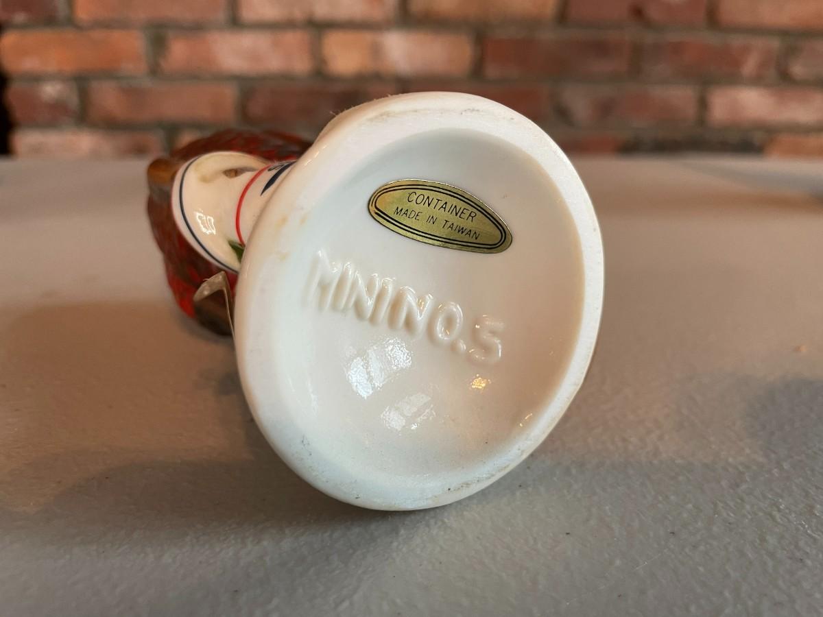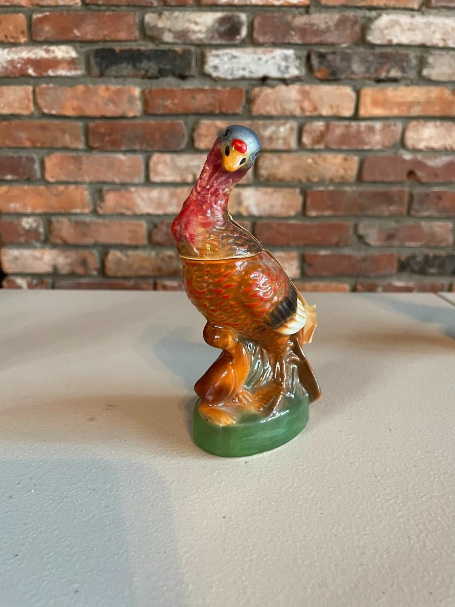 Complete Series 8 of 8. Ceramic one-of-a-kind wild turkey mini decanters. NO ALCOHOLIC CONTENT. Each one measures approximately 3w x 5h.