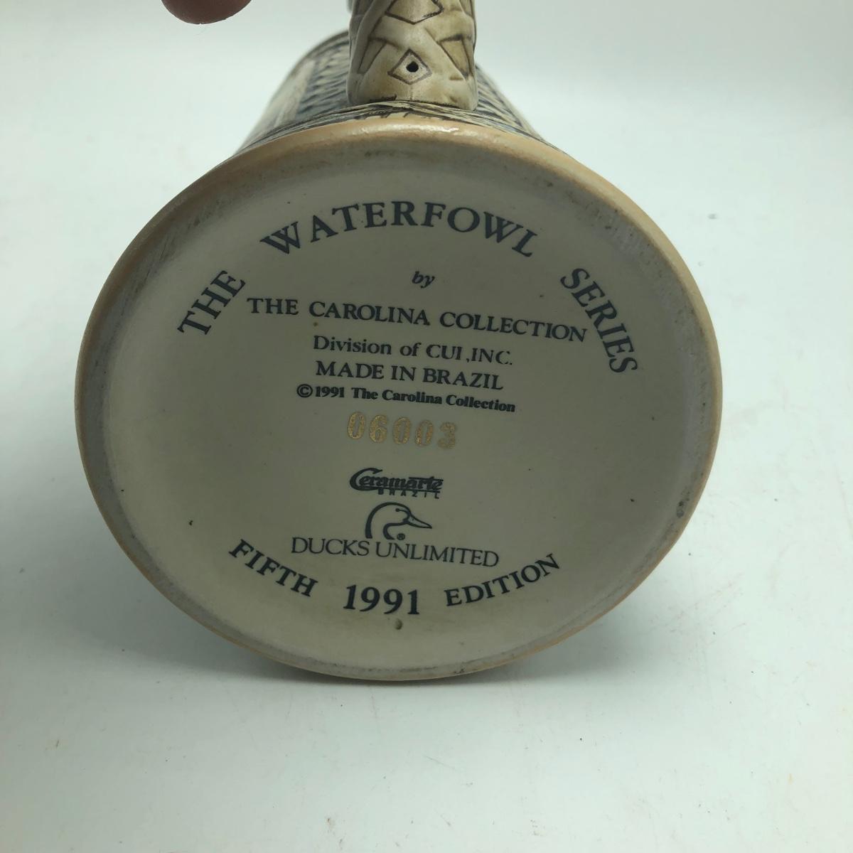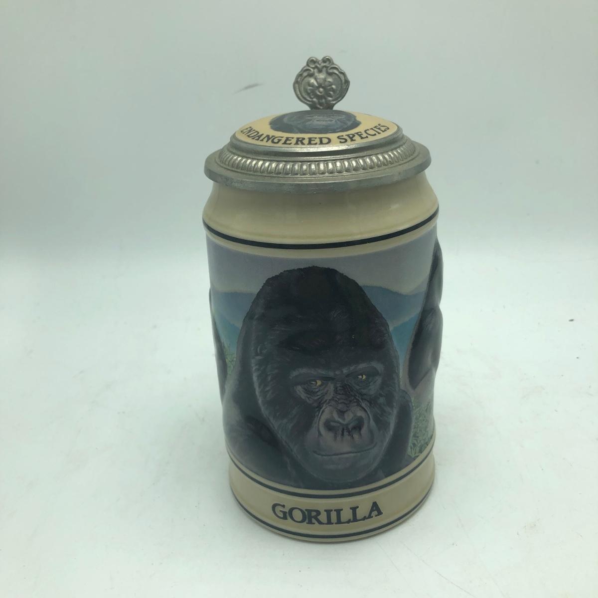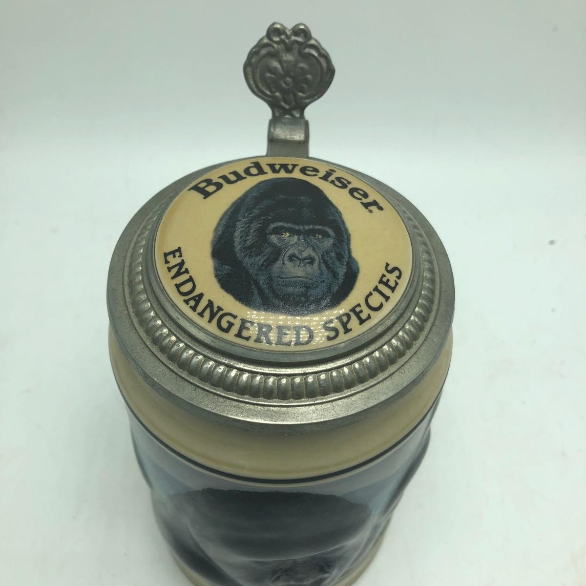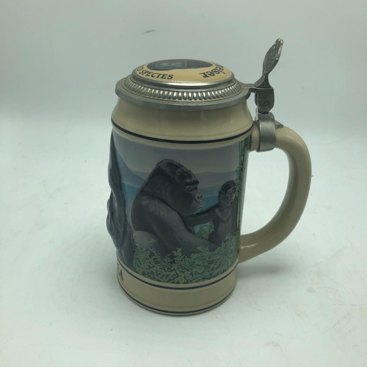 Lot contains three beer steins including Budweiser Endangered Species stein, Budweiser Ducks Unlimited stein and a Ducks Unlimited stein. Largest stein measures 4.5” x 5.5” x 9.5”.