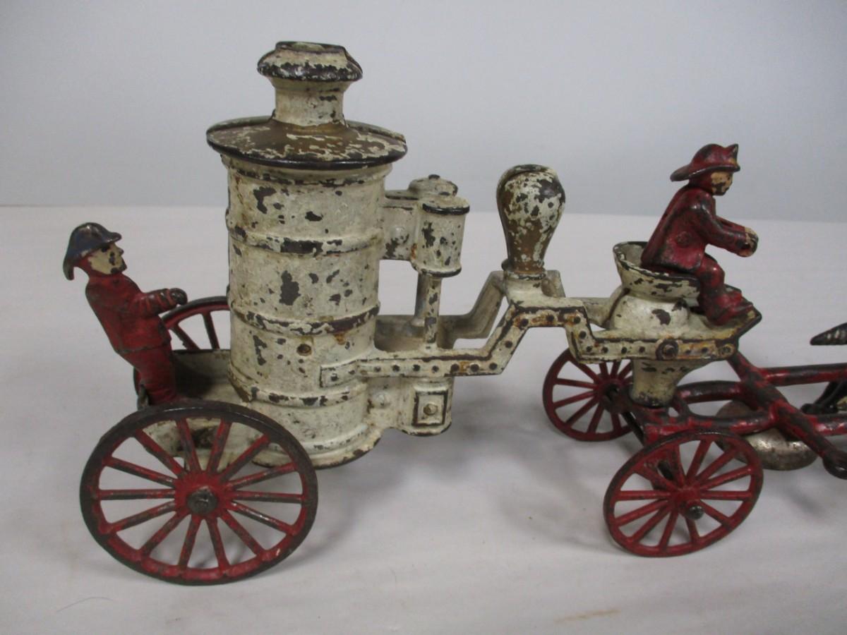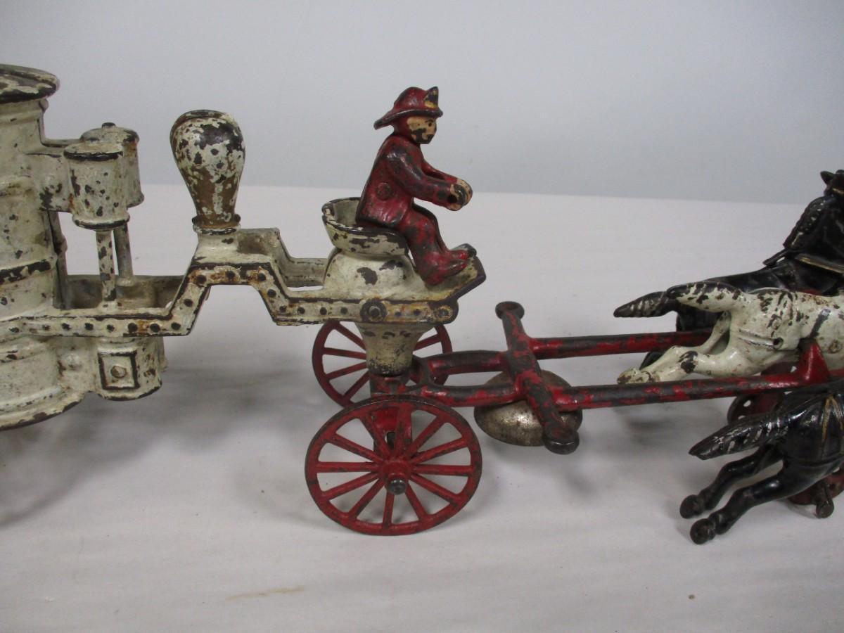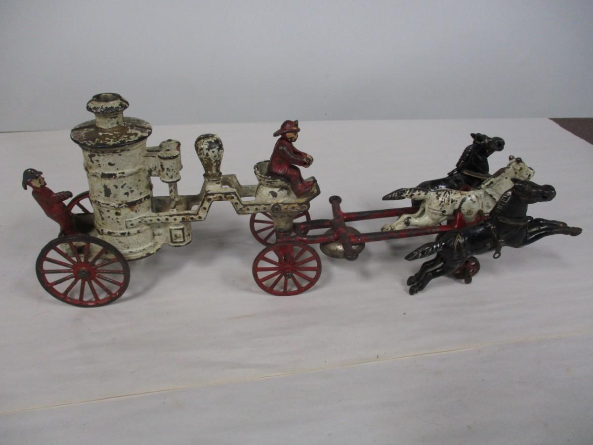 Wilkens Cast Iron Fire Pumper Wagon with Driver, Rider, and Triple Horse Team