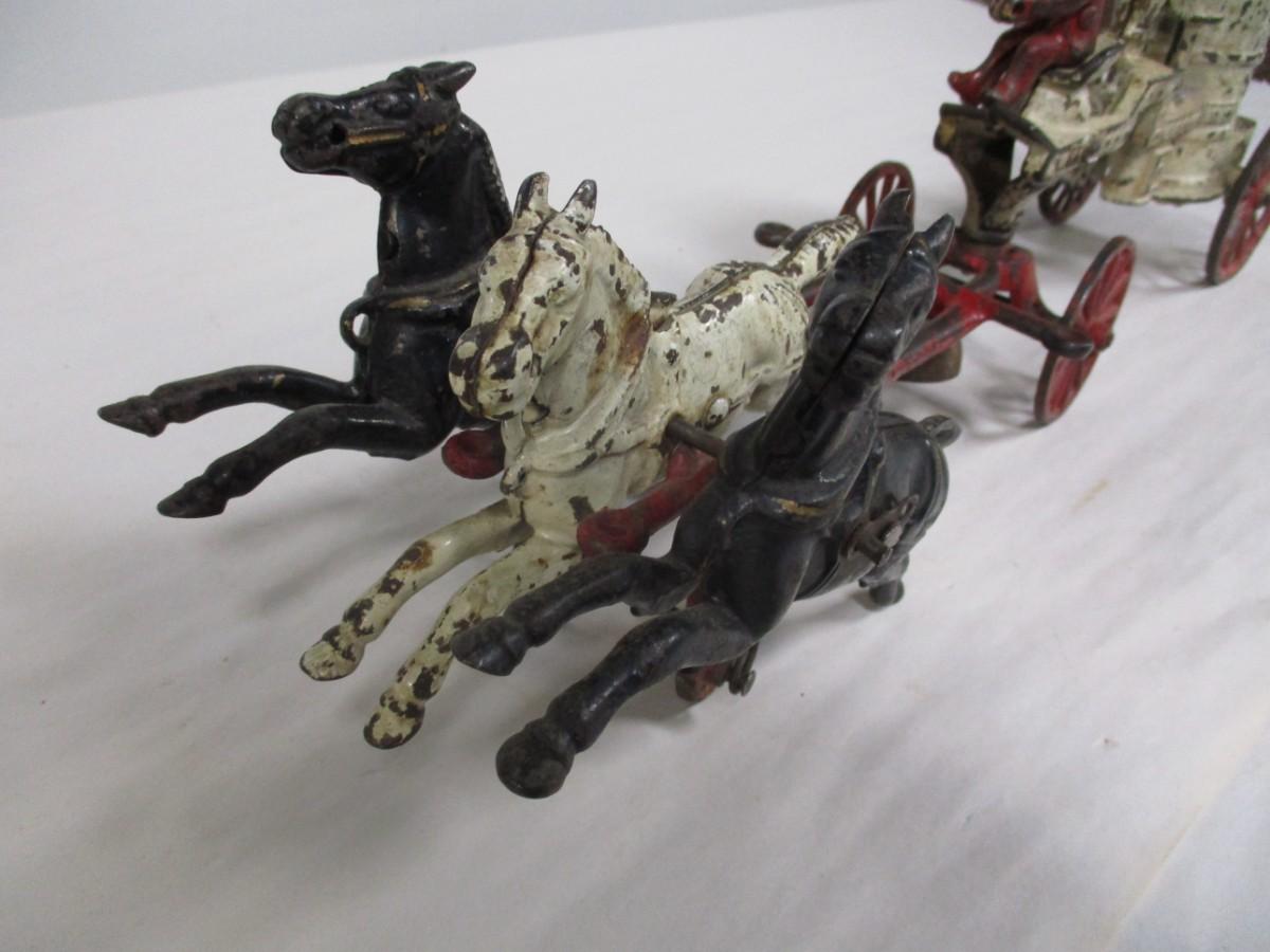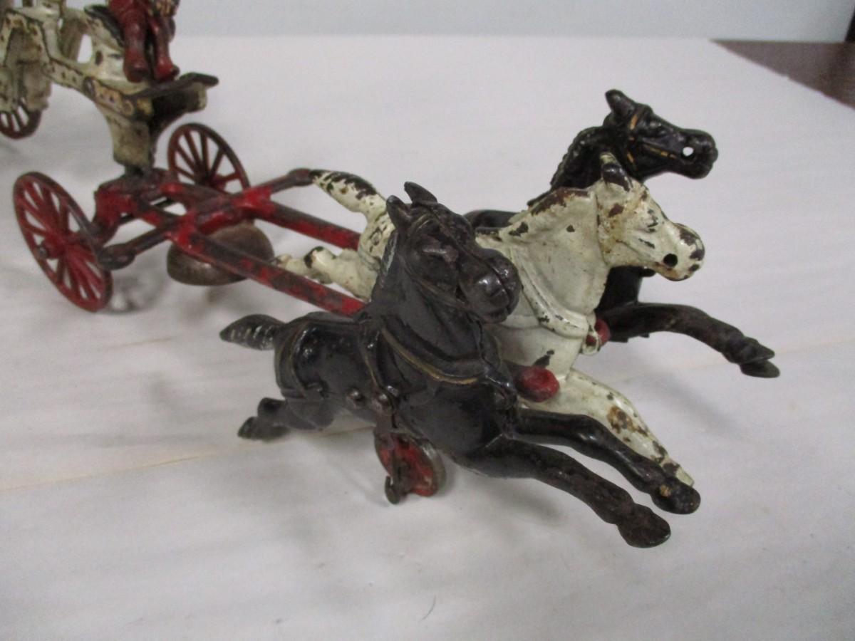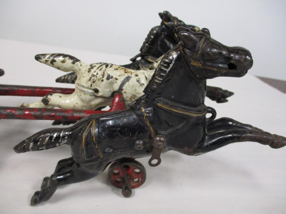 Wilkens Cast Iron Fire Pumper Wagon with Driver, Rider, and Triple Horse Team