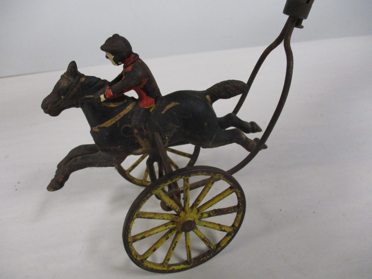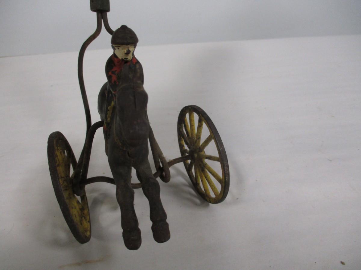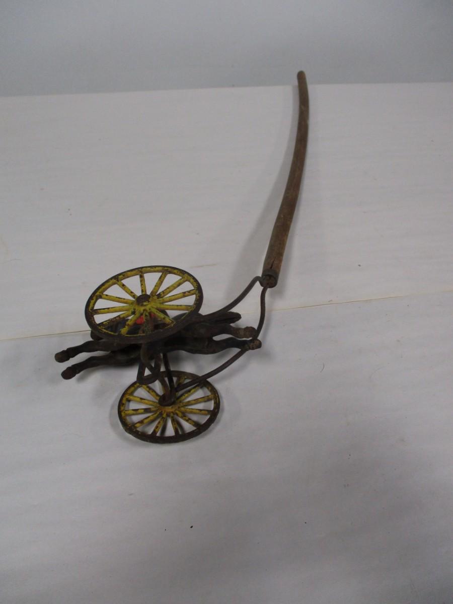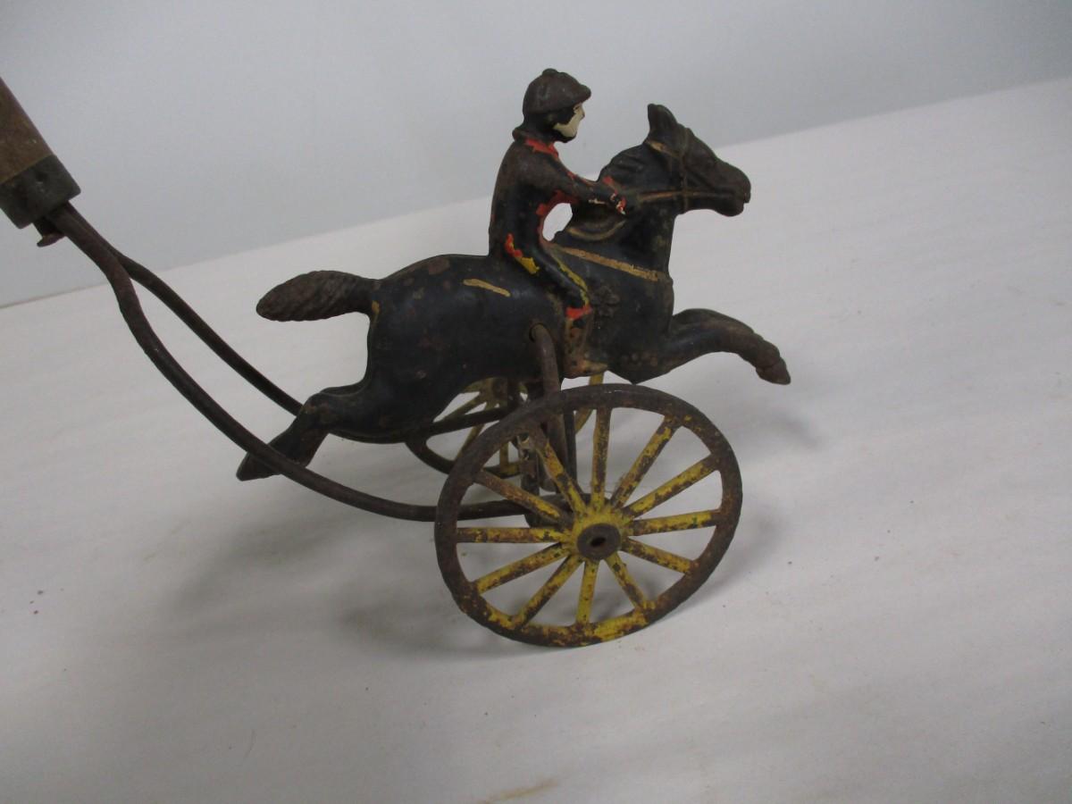 Antique Wilkens Cast Iron Racehorse Push Toy includes Hand Rod