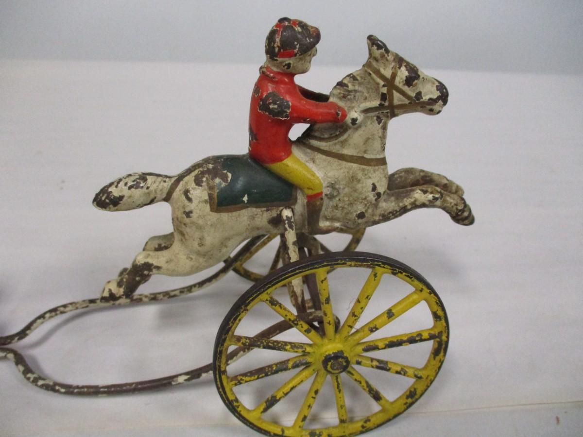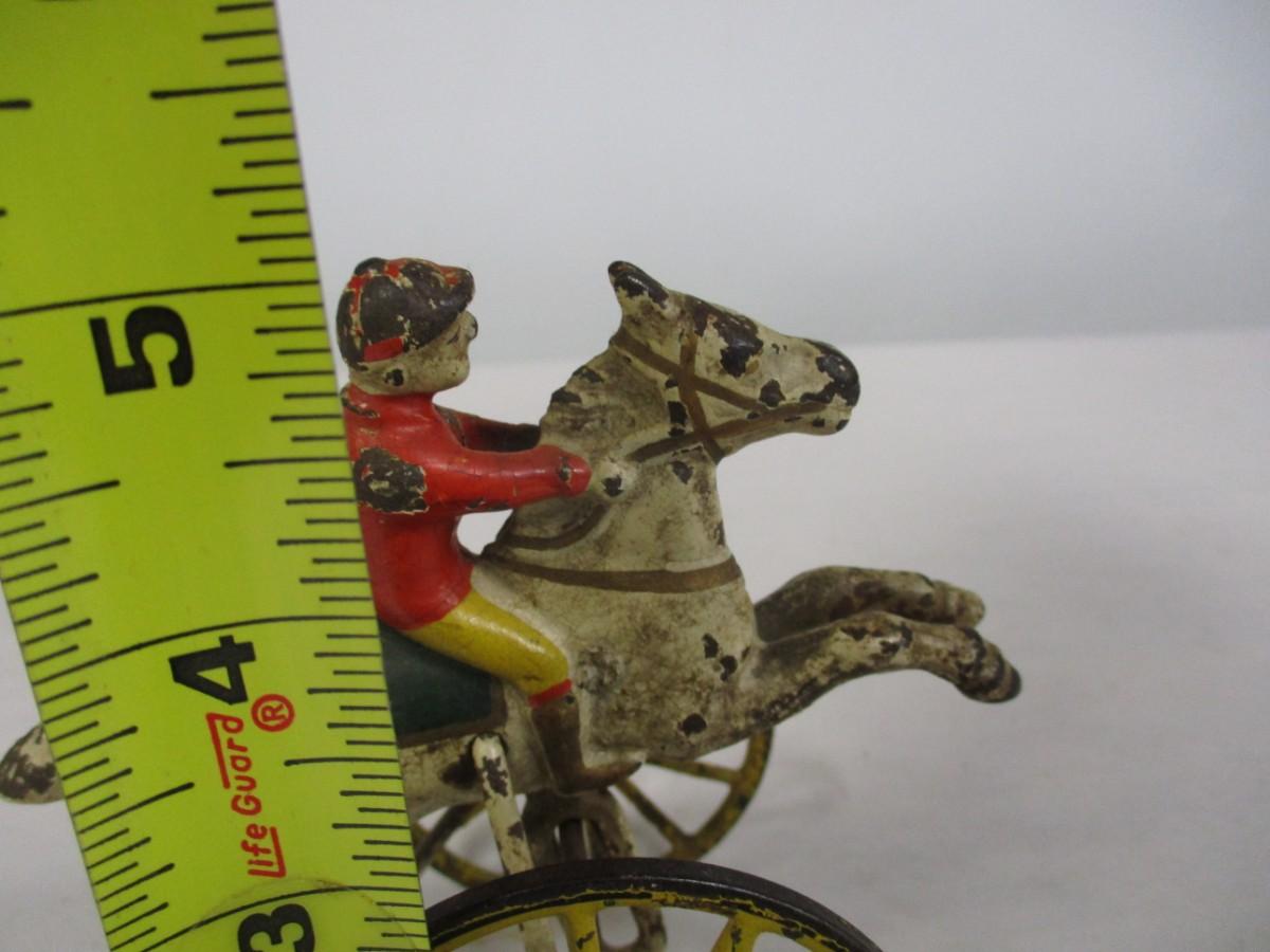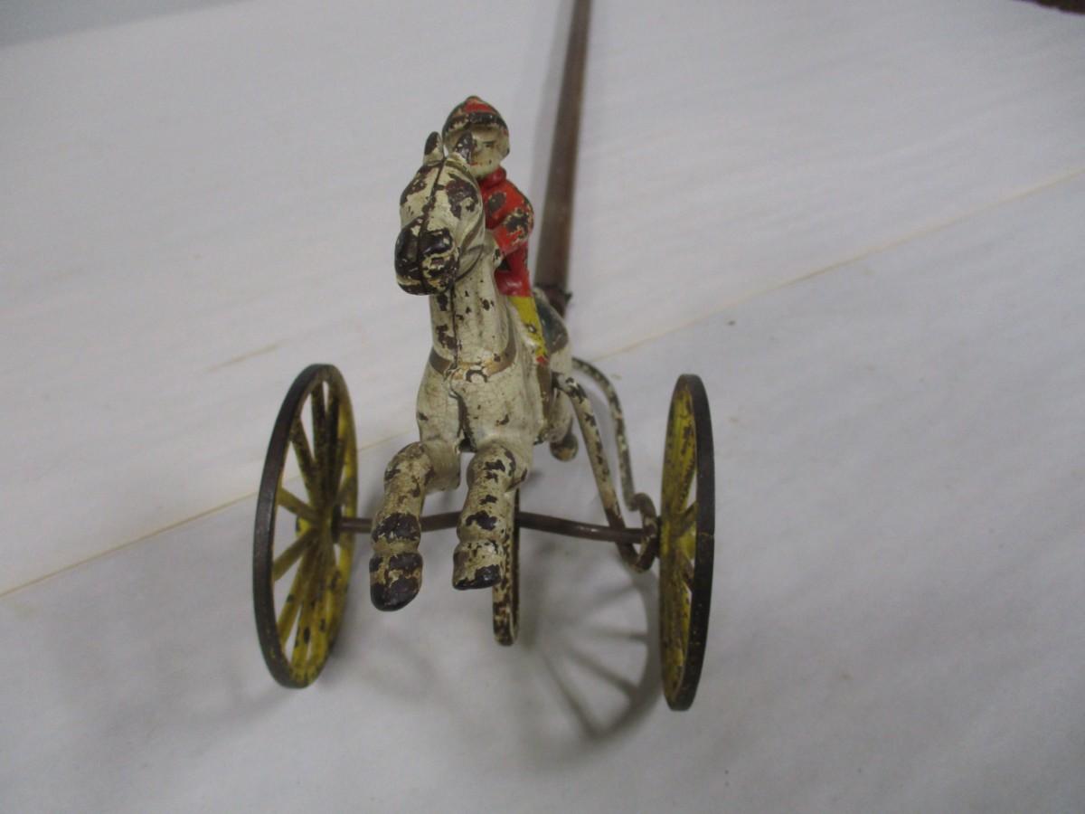Antique Wilkens Cast Iron Racehorse Push Toy includes Hand Rod