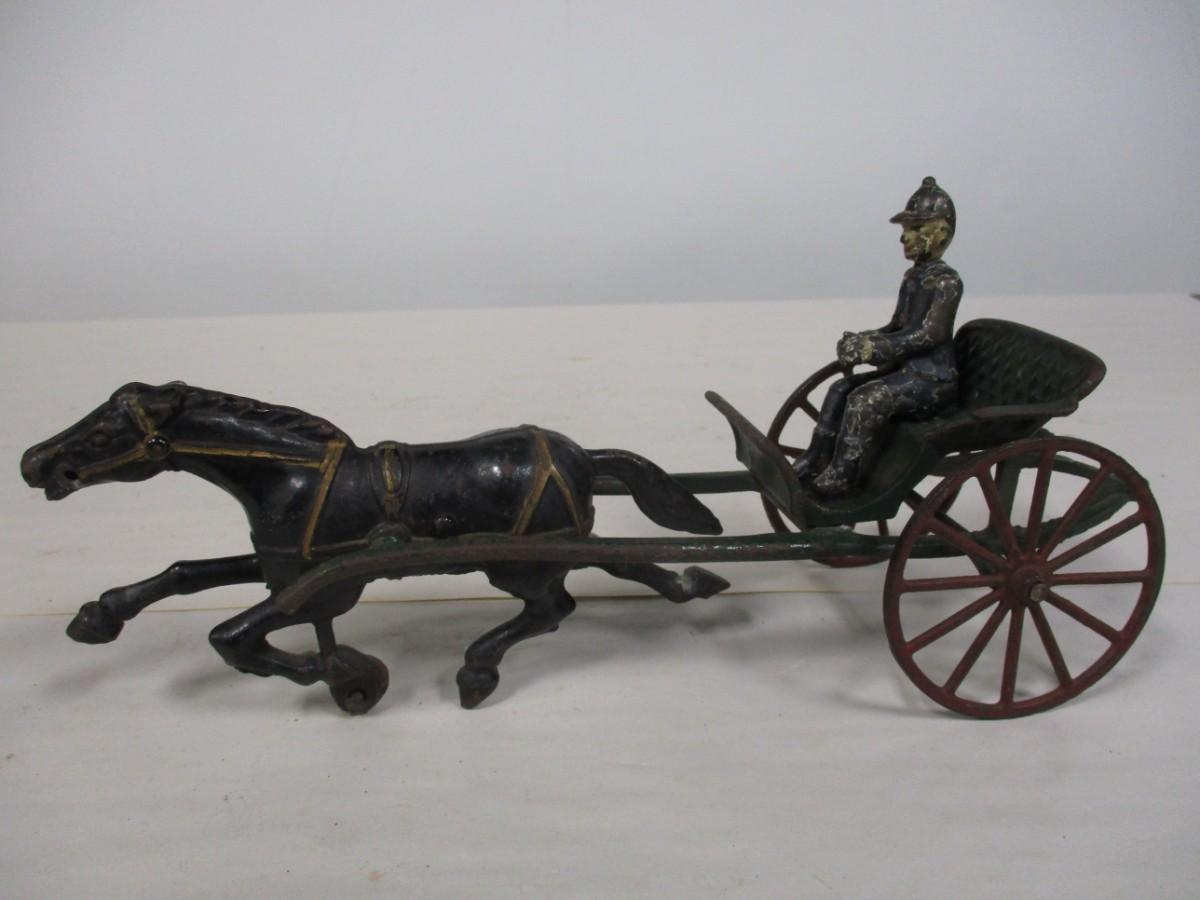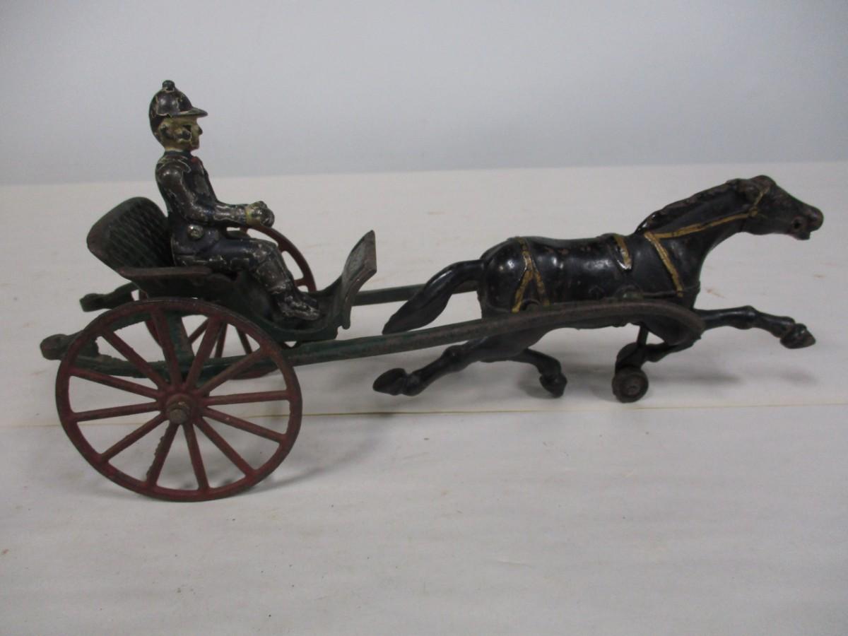Vintage Wilkins Cast Iron Horse Drawn Dray Cart