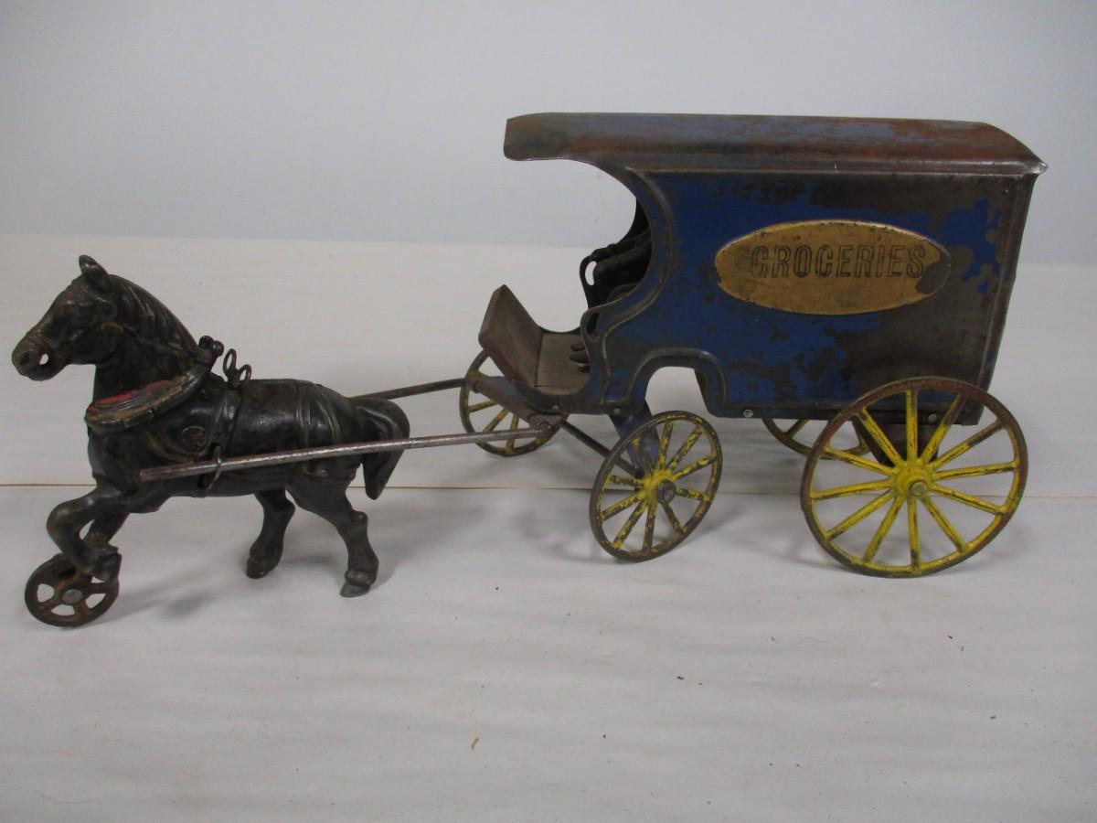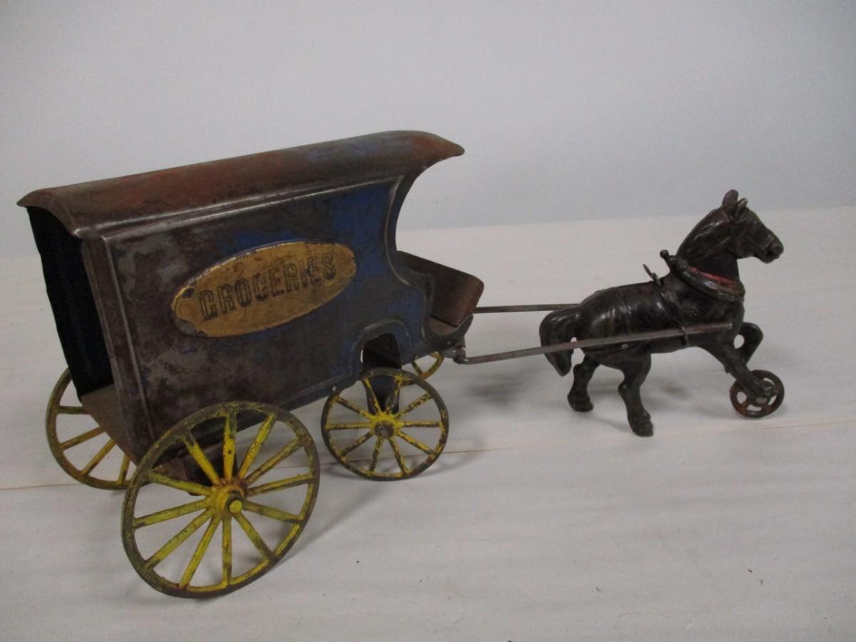 Rare! 1890's Original Antique Wilkins Cast Iron Horse Grocery Cart