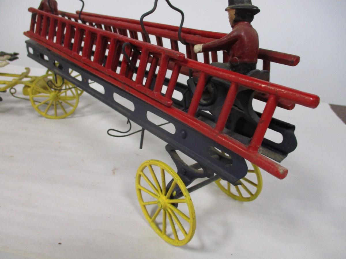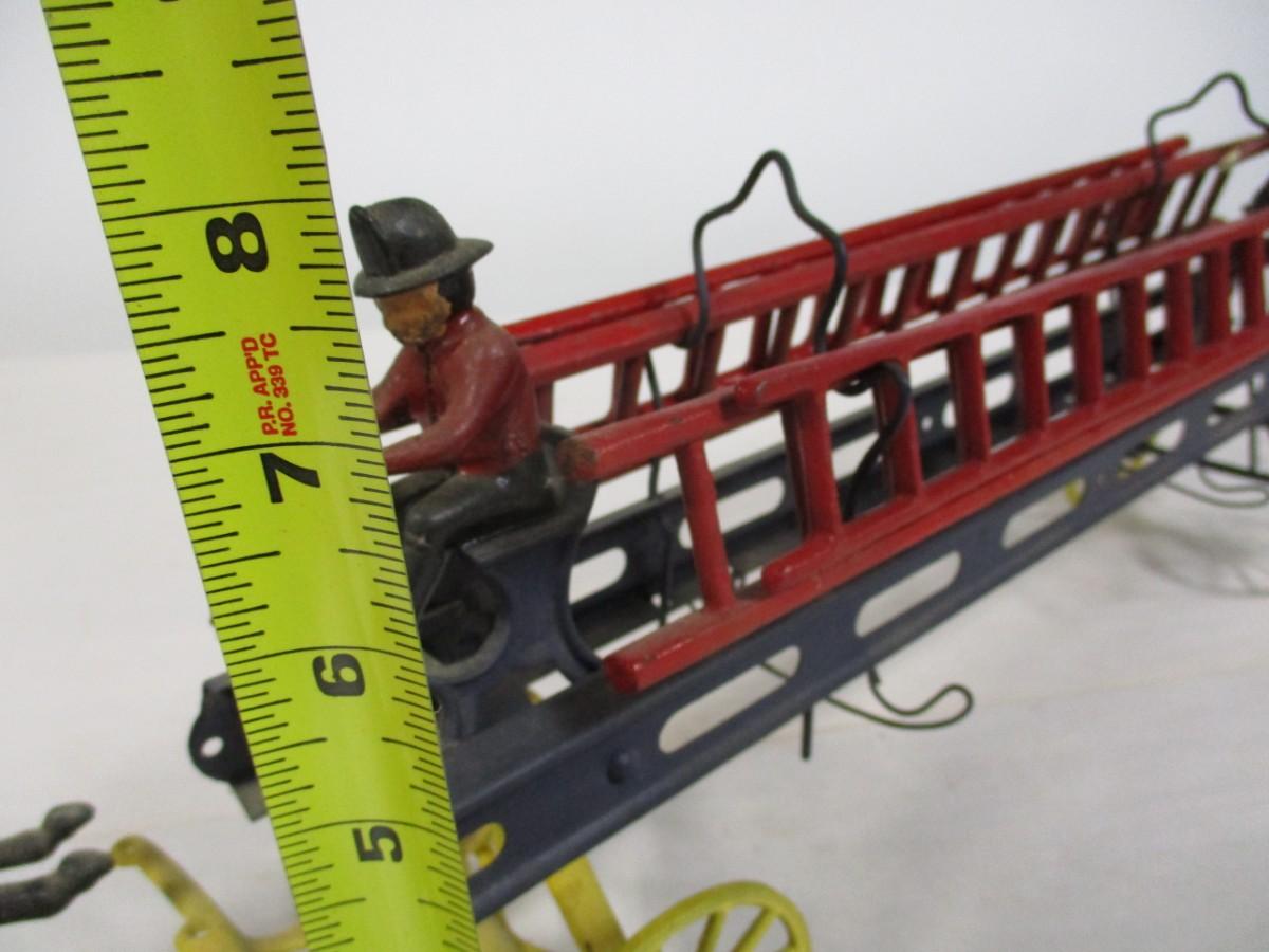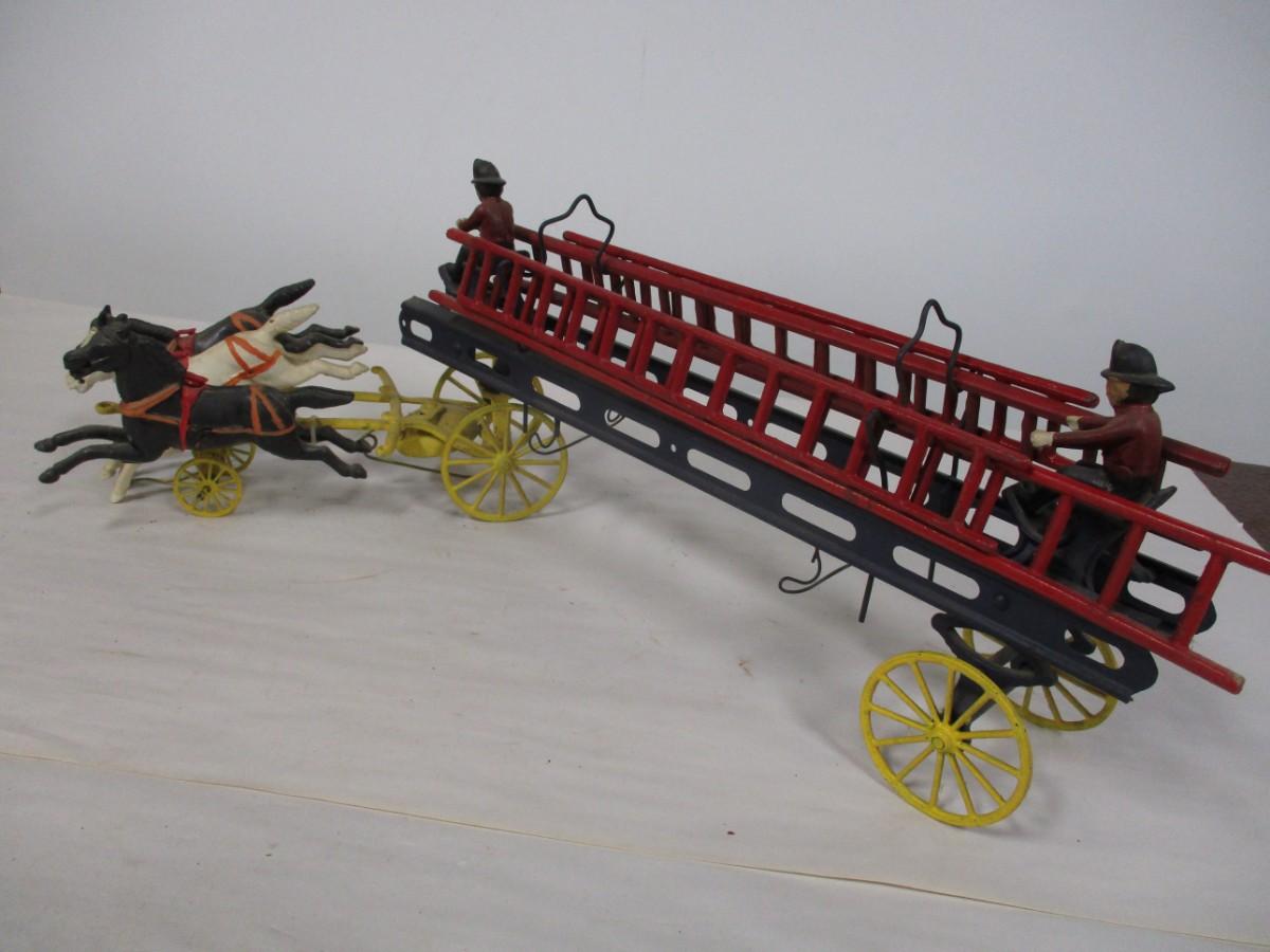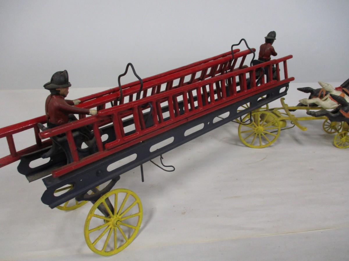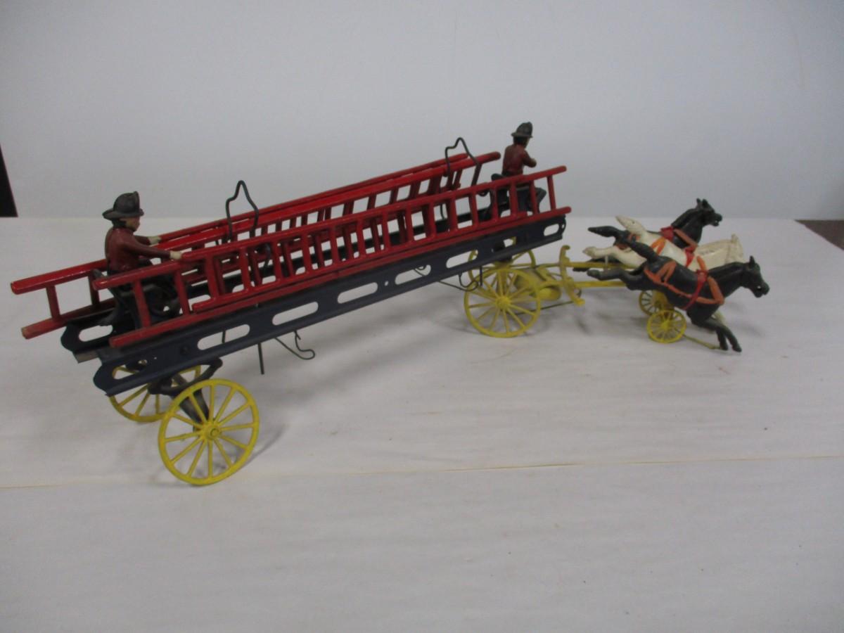 Vintage Wilkins Cast Iron Triple Horse Team Ladder Wagon with Ladders & Riders 25"
