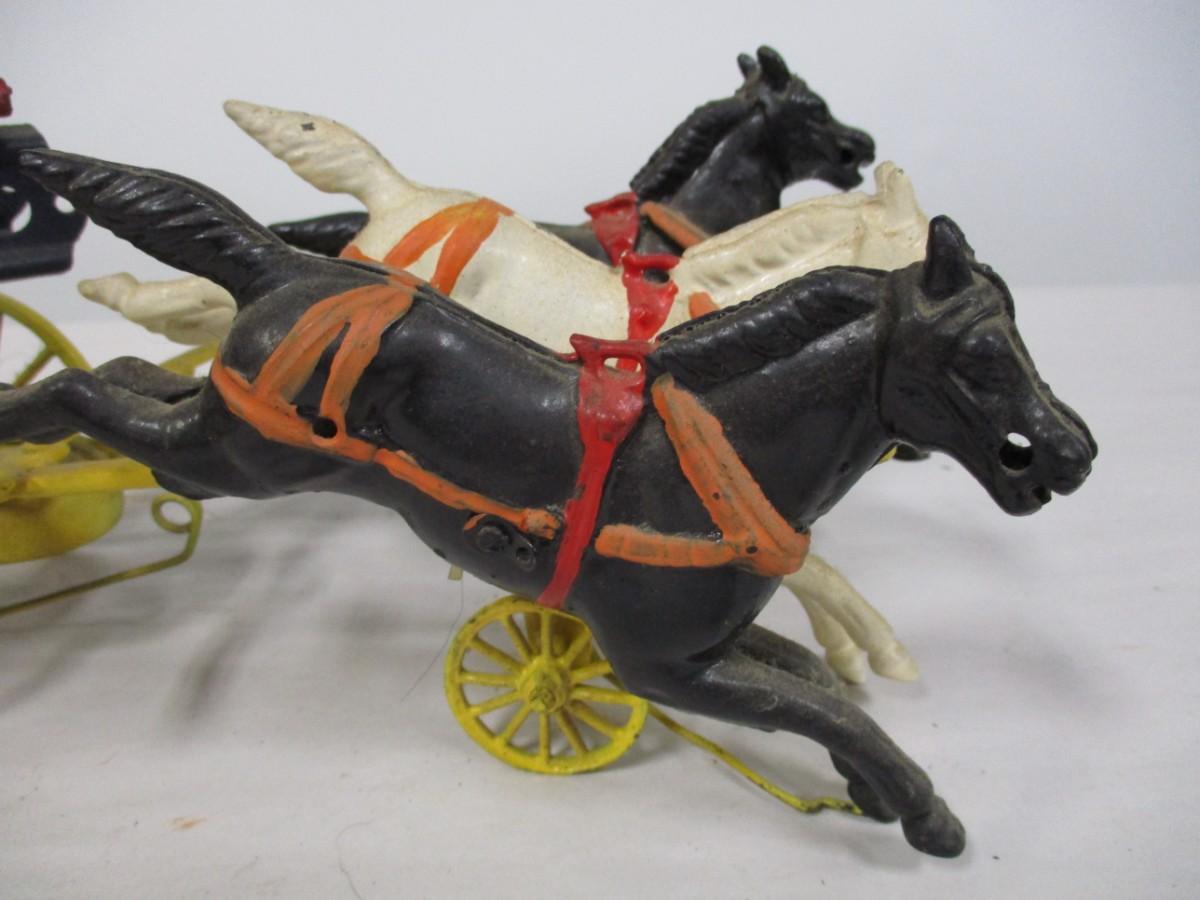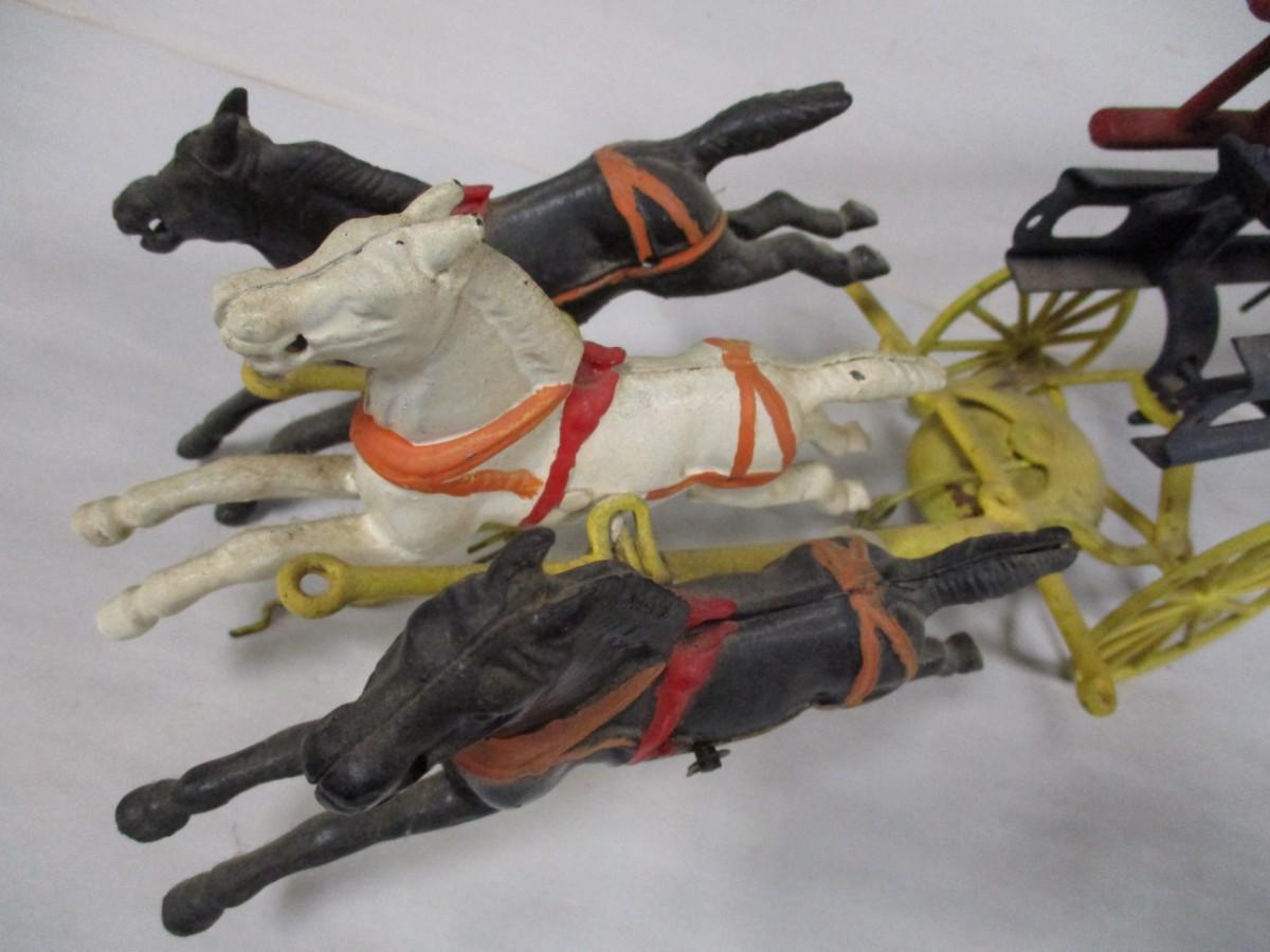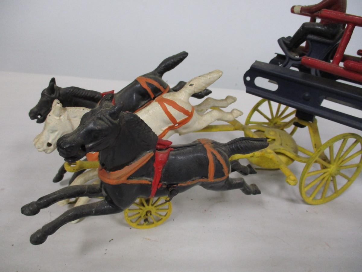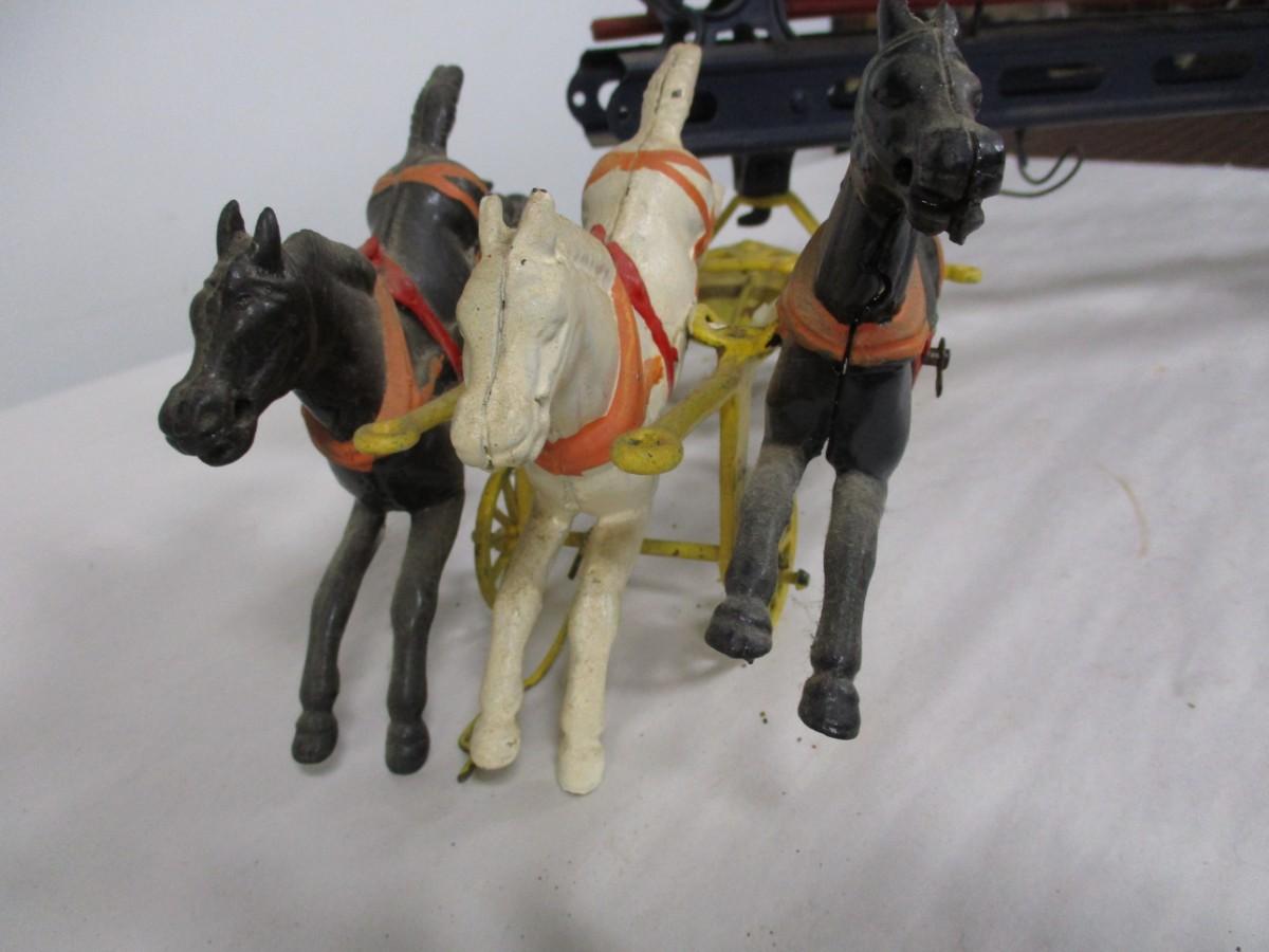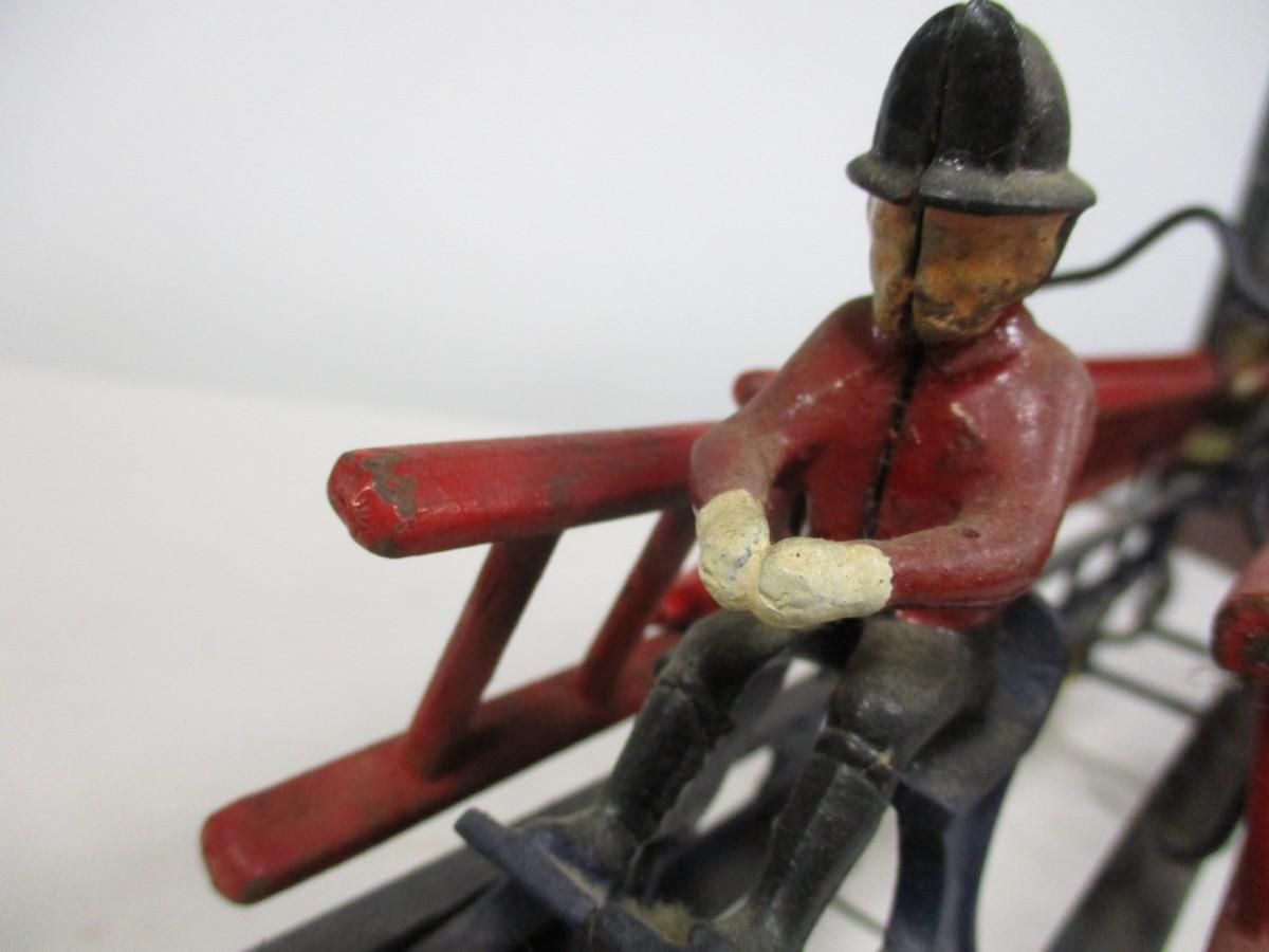 Vintage Wilkins Cast Iron Triple Horse Team Ladder Wagon with Ladders & Riders 25"