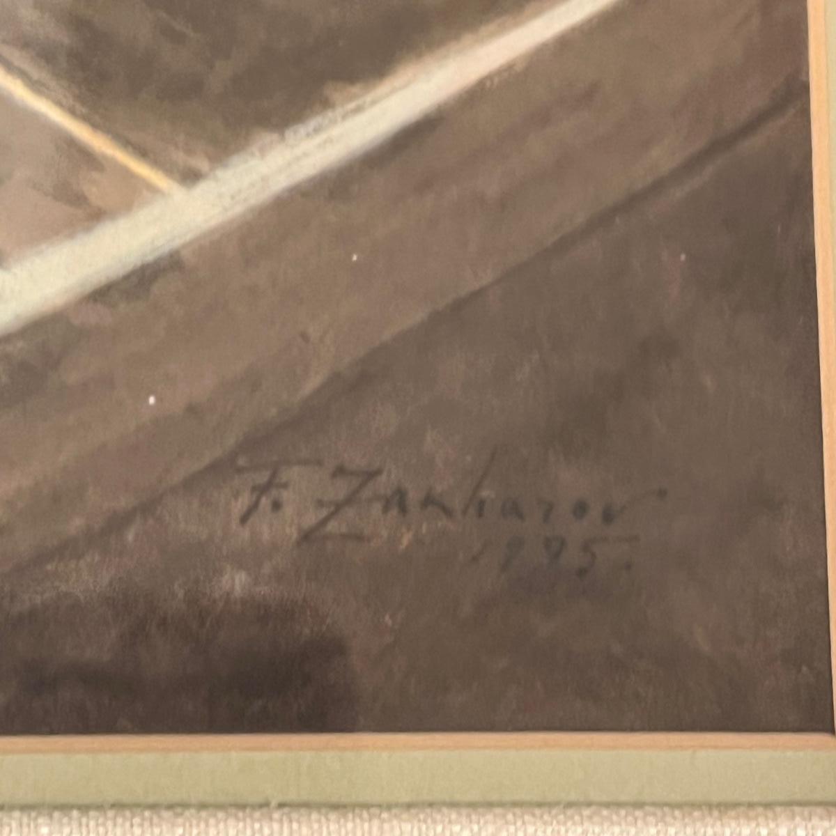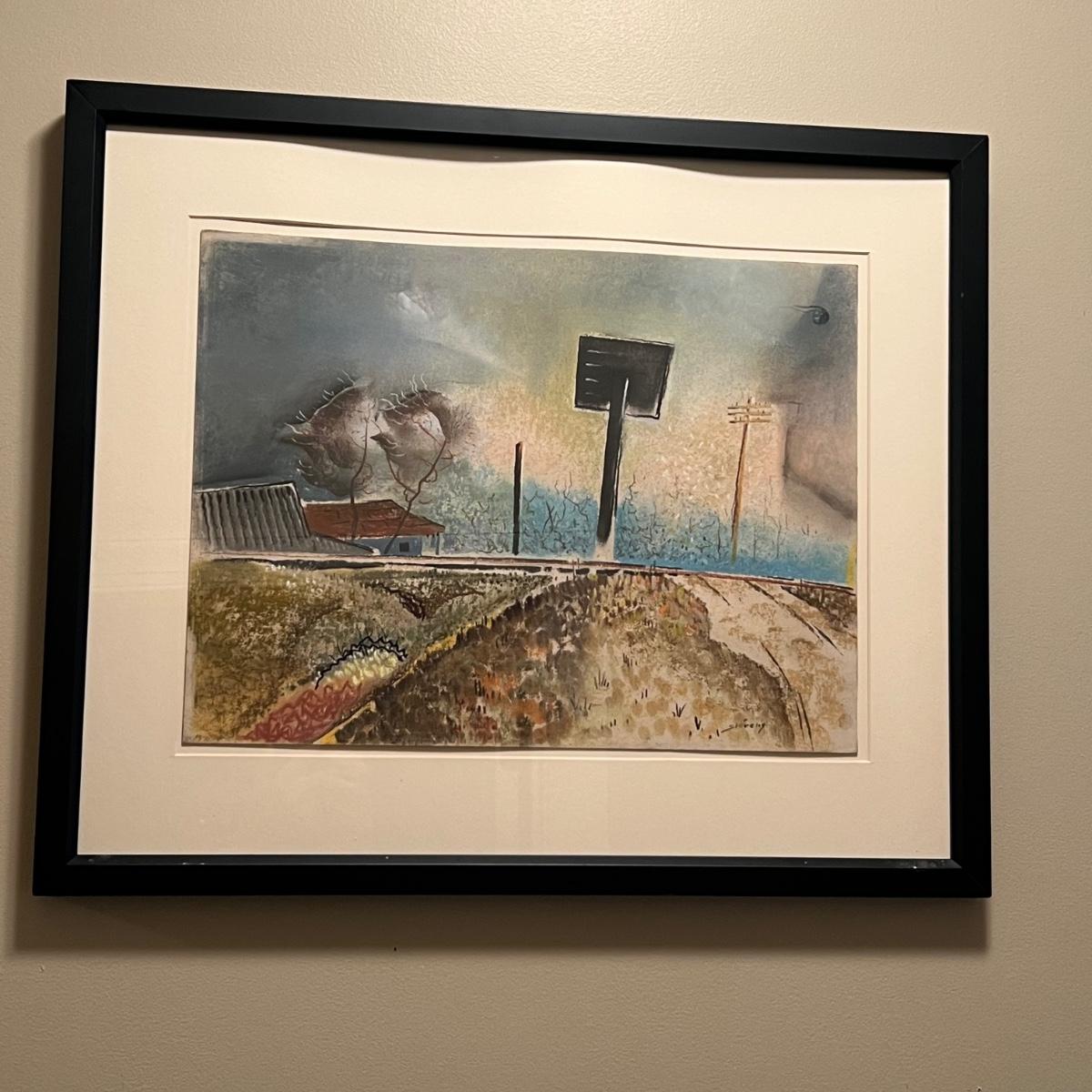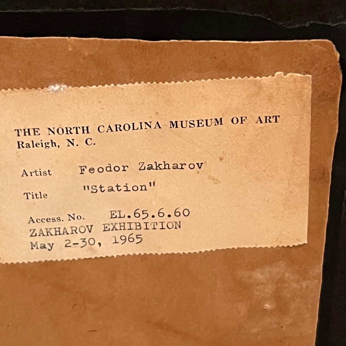 Two framed paintings. The Will Henry Steven’s ‘Rural Rail Line’ is a pastel on poster board. Please note there is a slight ripple in this art including the mat. The other painting is by Feoder Zakharov and is titled ‘Station’. It appears to be a watercolor dated 1935. Both are signed plus more information on the backs, see photos. Both are under glass with one mounted in a modern black resin frame, the other has a vintage wooden frame.