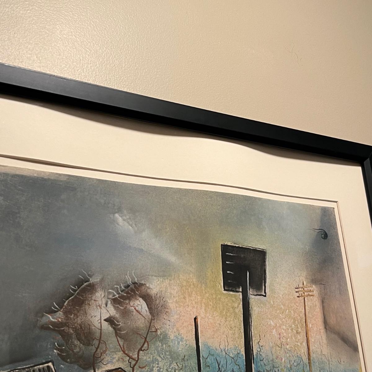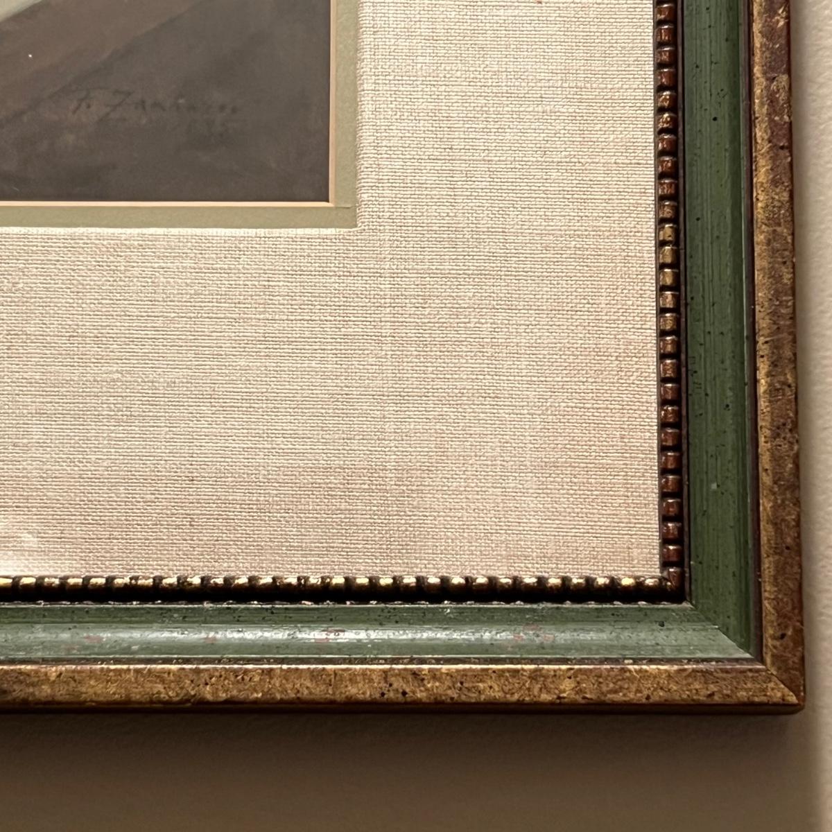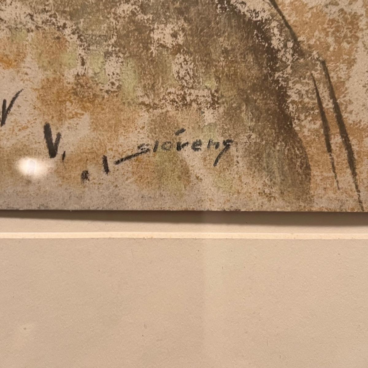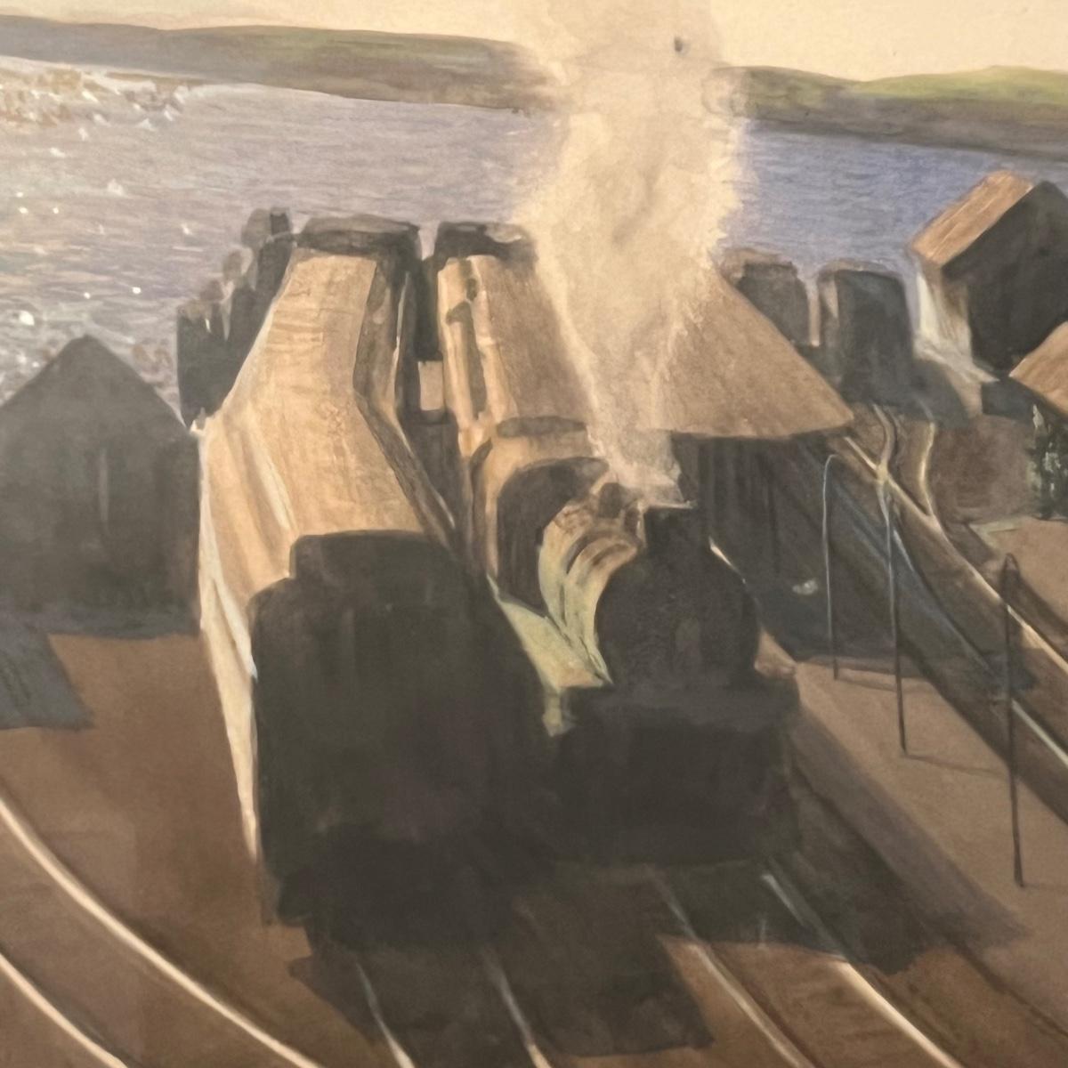 Two framed paintings. The Will Henry Steven’s ‘Rural Rail Line’ is a pastel on poster board. Please note there is a slight ripple in this art including the mat. The other painting is by Feoder Zakharov and is titled ‘Station’. It appears to be a watercolor dated 1935. Both are signed plus more information on the backs, see photos. Both are under glass with one mounted in a modern black resin frame, the other has a vintage wooden frame.