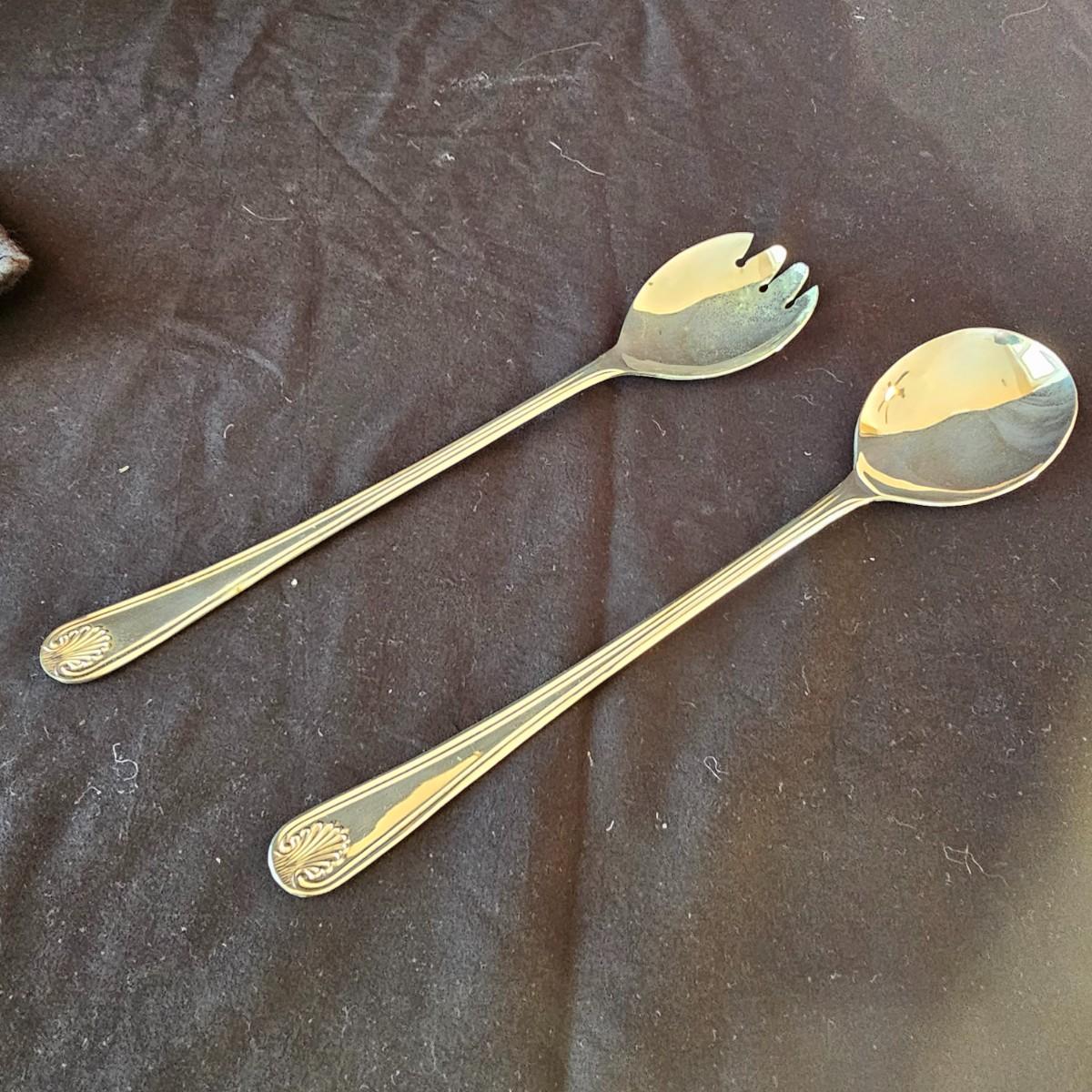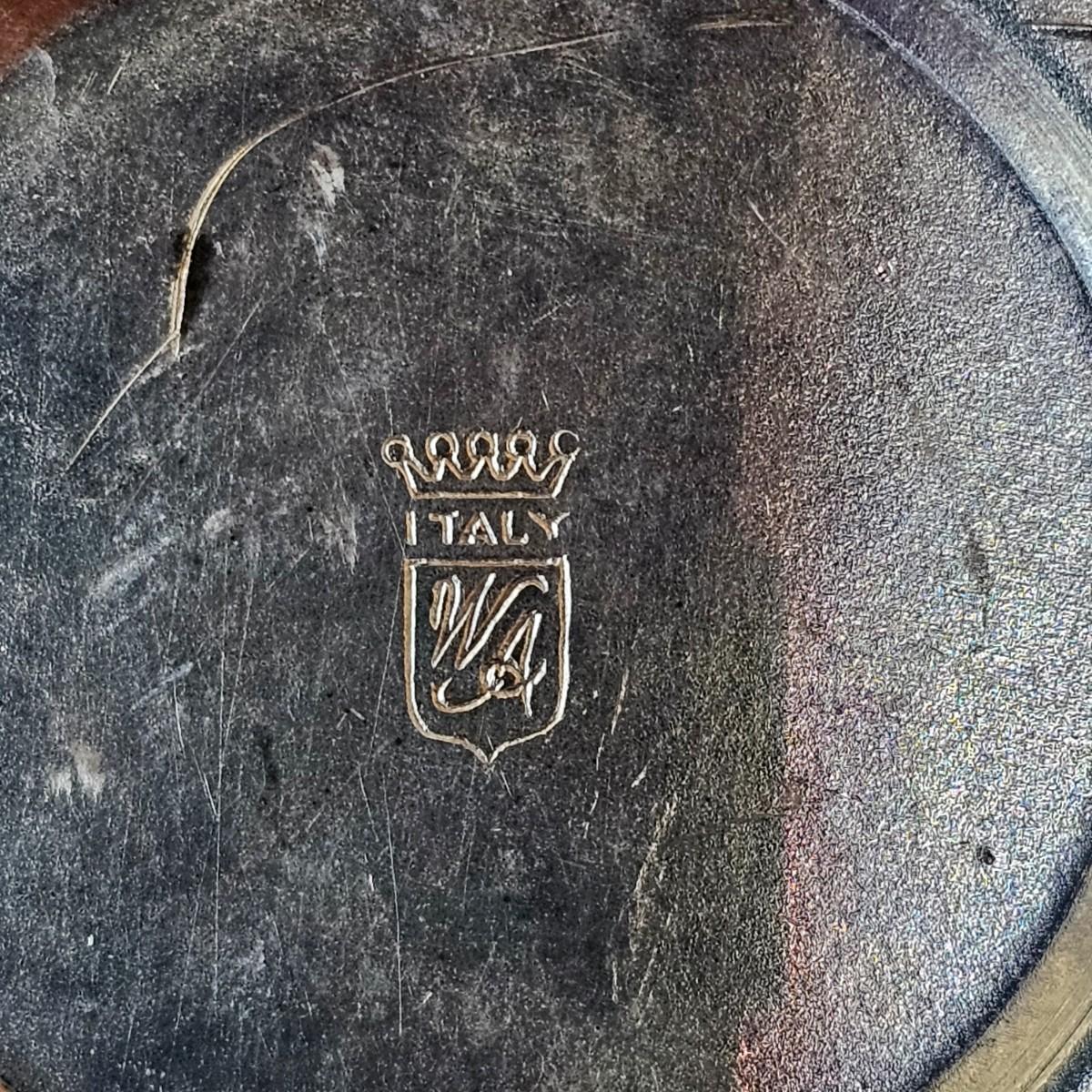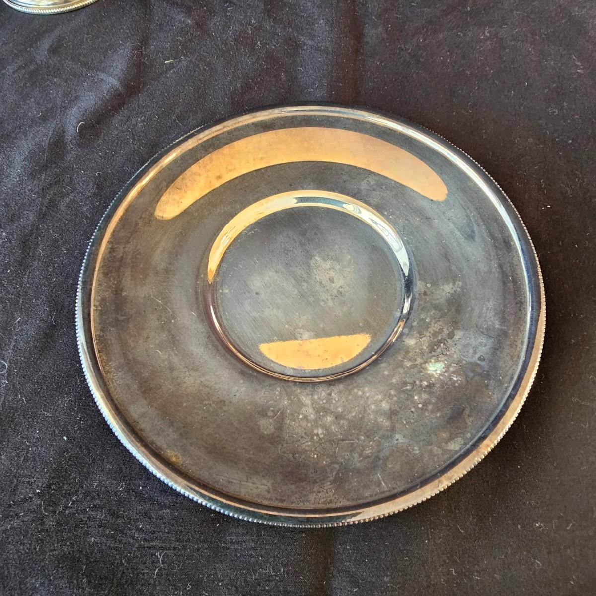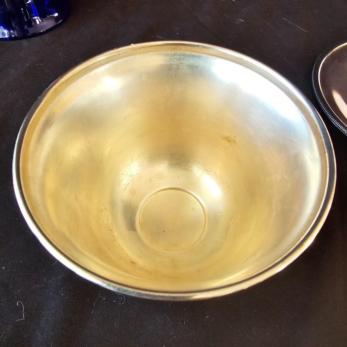 Four pieces of silver plate serving ware by William Adams.. Unique butter curler that produces extruded shapes for elegant dining. Item comes with complete instructions on box, measures 4.5"D x 2"H. Silverplate cup/saucer and cobalt blue glass insert measures 5 5" D x 3"H. Two salad spoons in monogram pouch both 9.5" long. All items bear WA marks and logos. Some tarnish and discoloration. See photos for details. Shipping available.
